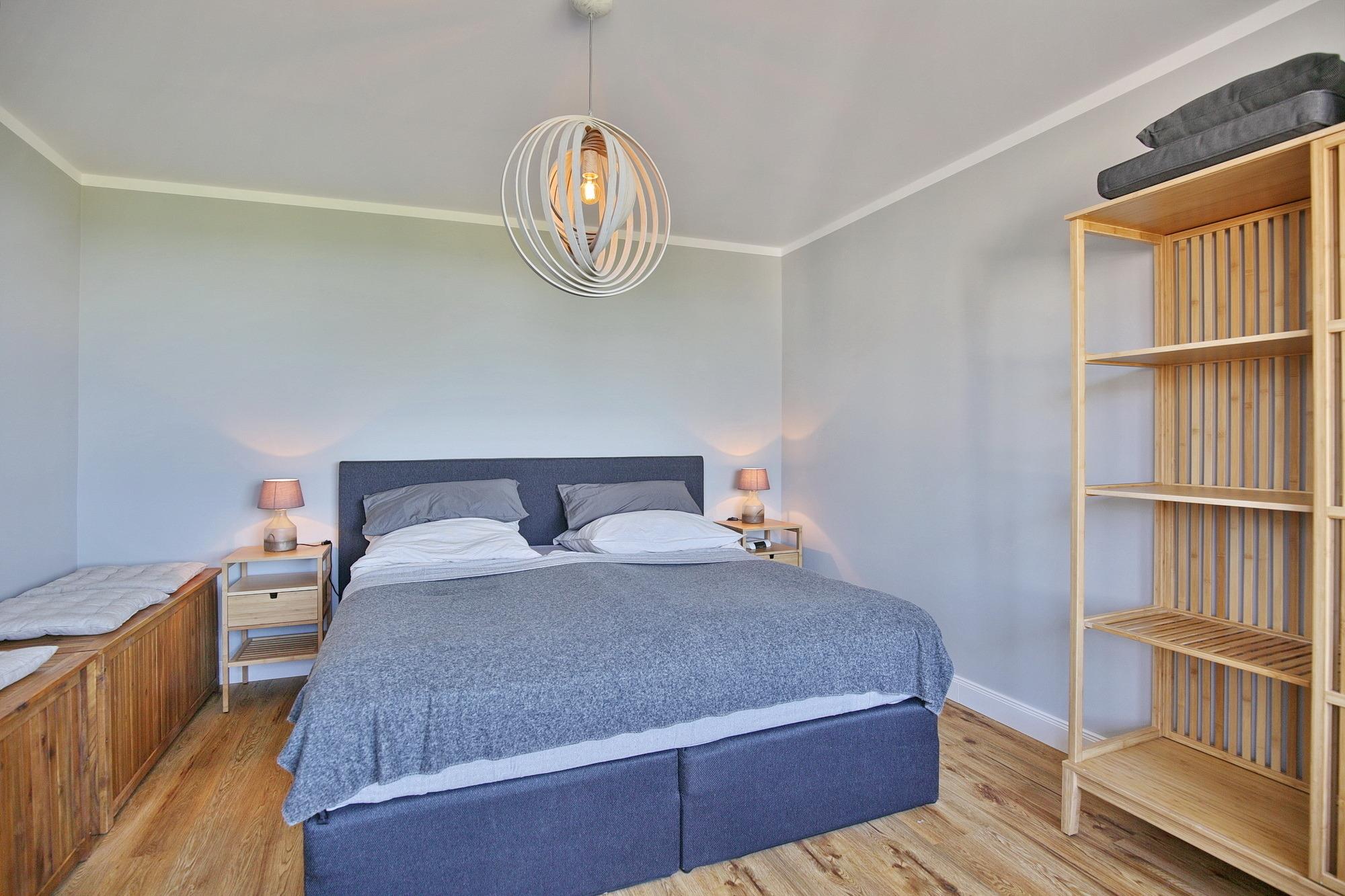 Ein separates Schlafzimmer mit komfortablem und großzügigem Boxspringbett (200x200 cm) sorgt für einen erholsamen Schlaf. Schiffchen anstatt Schäfchen zählen - schon vom Boxspringbett aus genießen Sie den atemraubenden Blick auf den Schifffahrtsweg. Derweil sorgen Verdunklungsvorhänge dafür, dass Sie nicht von der Morgensonne geweckt werden.