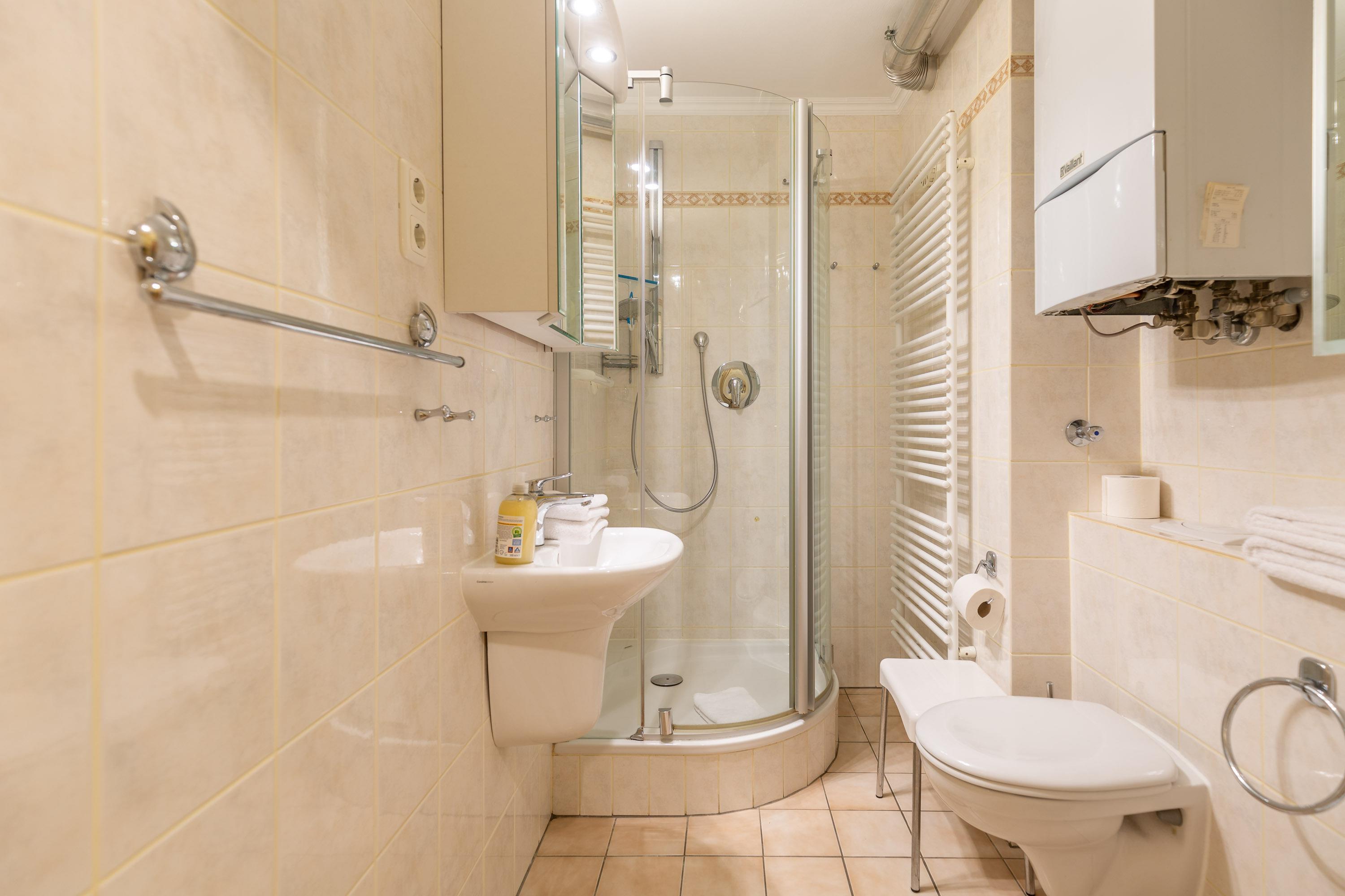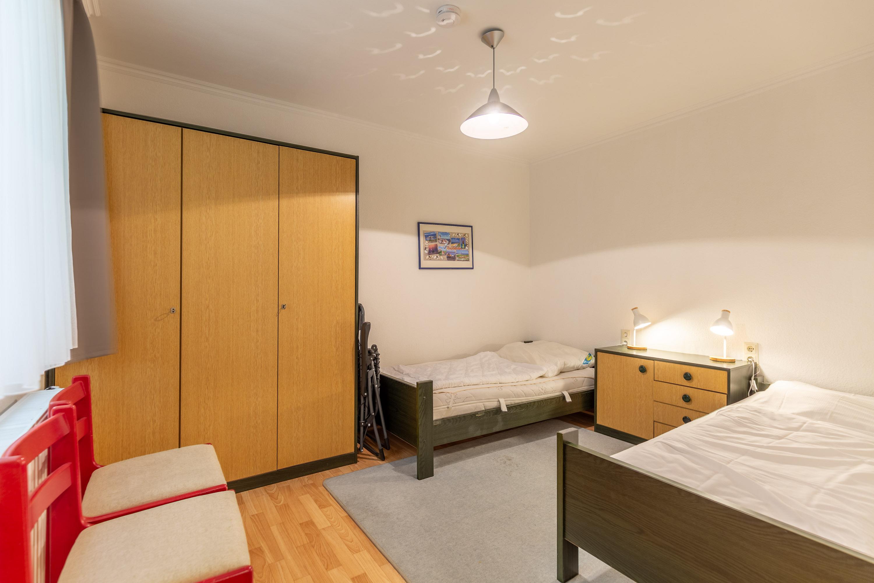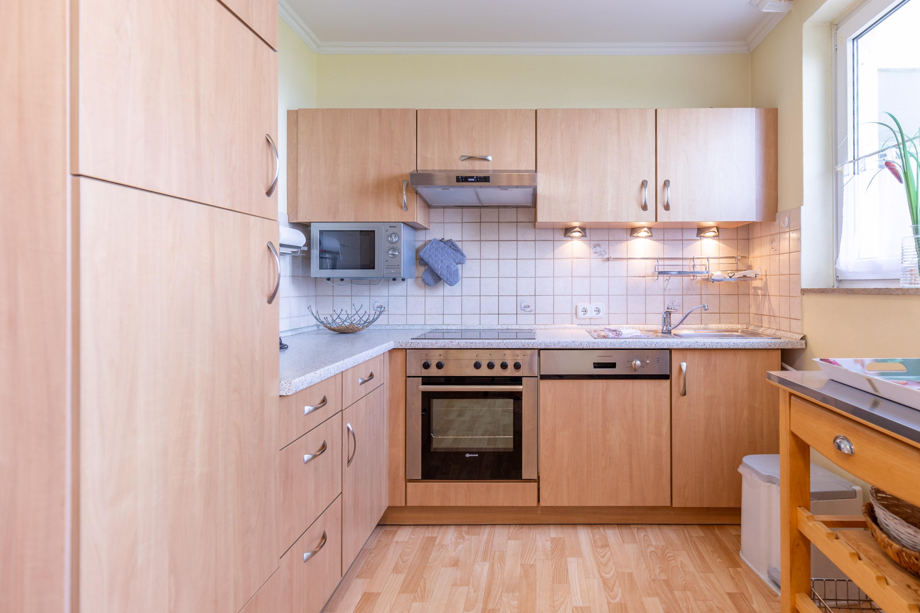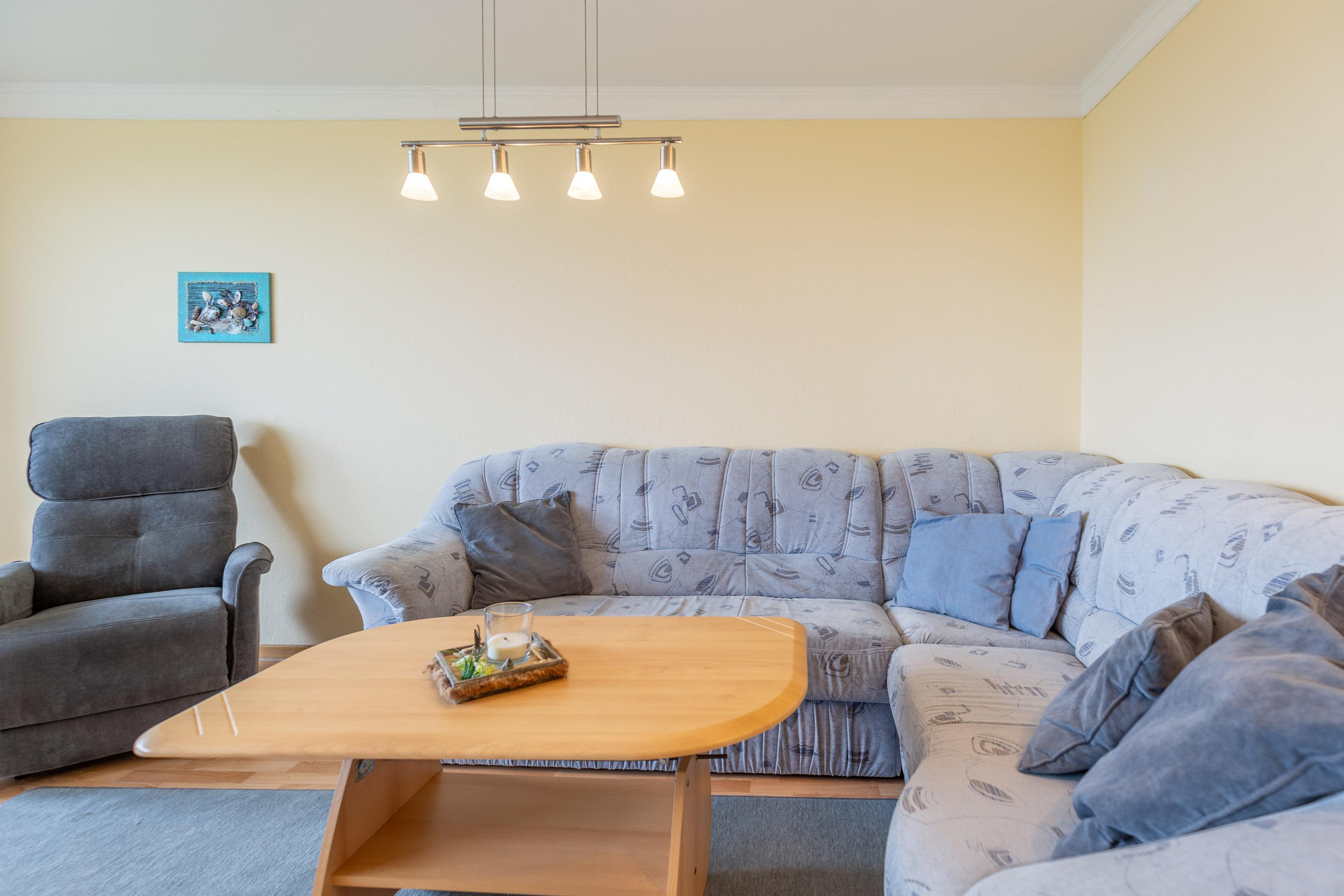 In den beiden Schlafzimmern garantieren ein Doppelbett (2x90x200) sowie zwei Einzelbetten (90x200) erholsame Nächte. Besonders angenehm für Familien mit Kindern oder auch befreundete Paare. Vorhänge sorgen für einen ungestörten Schlaf. Ein gemütliches Ecksofa sowie ein Relaxsessel mit elektrisch verstellbarer Rückenlehne und Fußablage laden zum entspannten Verweilen ein. Die separate Küche mit Fenster bietet alles, was Selbstversorger benötigen: Backofen, 4-Platten-Herd, Geschirrspüler, Kühlschrank mit Gefriermöglichkeit, Kaffeemaschine, Wasserkocher, Toaster und vieles mehr. Das Badezimmer ist mit Dusche und WC ausgestattet. Der Wohnung ist ein eigener KFZ-Stellplatz zugeordnet.