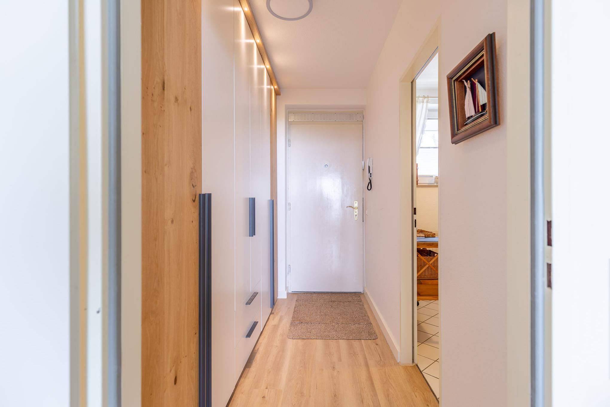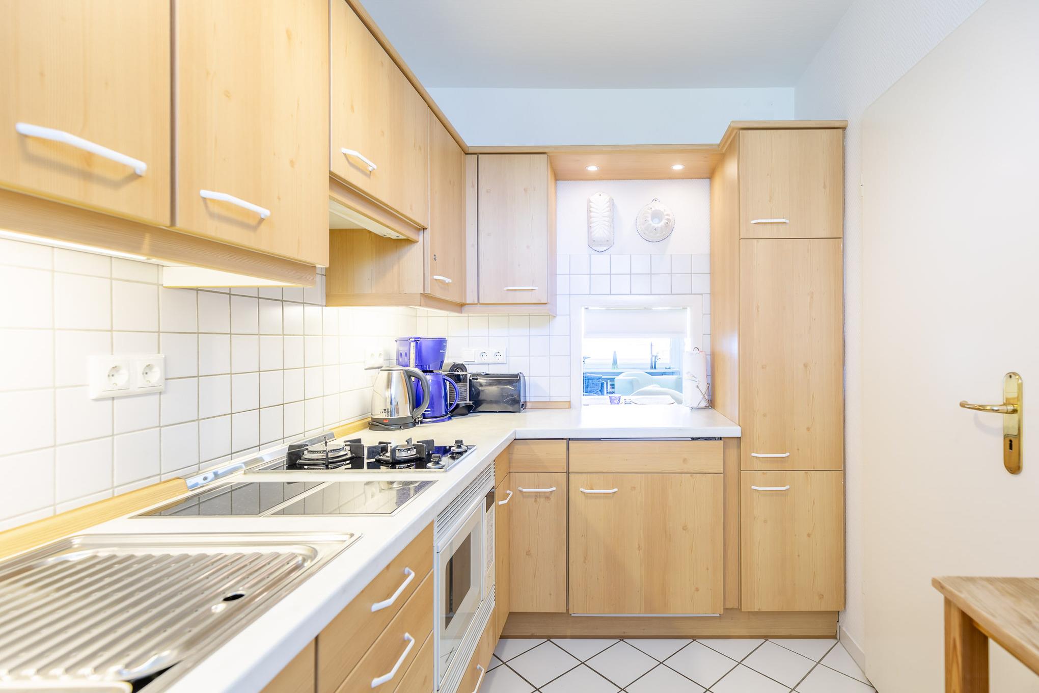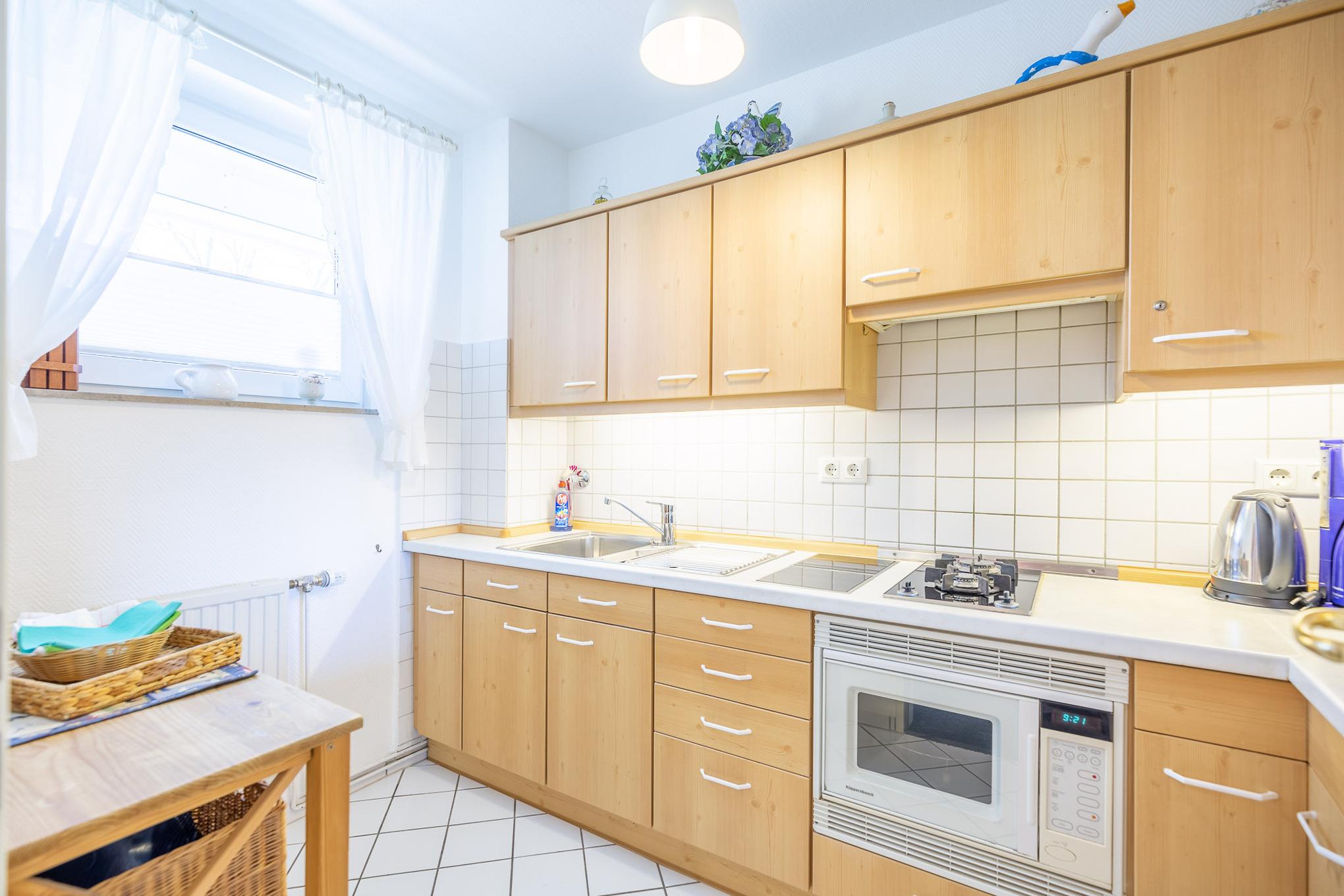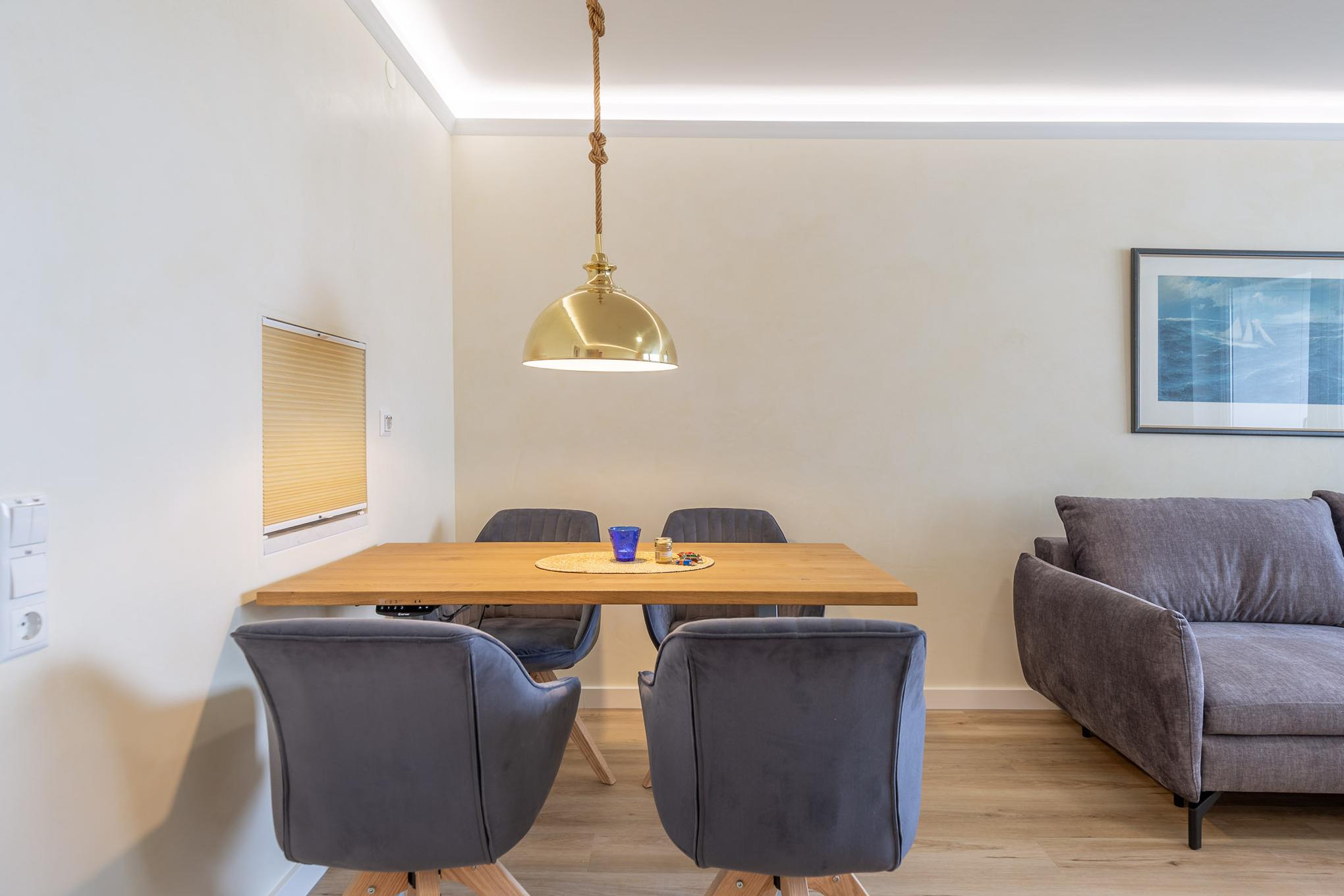 Die 55 m² Ferienwohnung bietet ausreichend Platz für 2 Personen. Vom kombinierten Wohn- und Essbereich genießen Sie den traumhaften Blick auf den Weltschifffahrtsweg. Die separate Küche ist mit Backofen, Gasherd, Mikrowelle und Kühlschrank ausgestattet und bietet Gästen die Möglichkeit kleine Speisen zuzubereiten. Die praktische Durchreiche zum Esstisch gewährleistet kurze Wege. Vom Esstisch genießen Sie schon beim allmorgendlichen Frühstück traumhafte Sonnenaufgänge und den Blick auf die vorbeifahrenden Ozeanriesen.