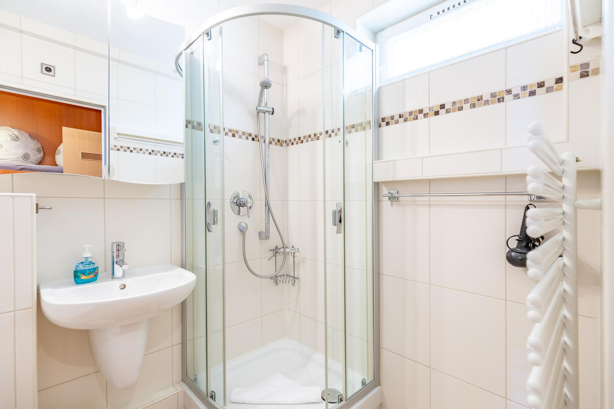 Im kombinierten Wohn- und Essbereich ist eine funktionale Küchenzeile mit Kühlschrank, 2 Plattenherd und Mikrowelle integriert. Dank Flachbildfernseher müssen Sie auch im Urlaub nicht auf einen entspannten Fernsehabend verzichten. Darüber hinaus gehört kostenloses W-Lan zum Standard dieser Wohnung. Der Balkon ist eine wahre Freiluft-Nordseeloge und erstreckt sich über die gesamte Fläche des Wohn- und Schlafzimmers. Selbstverständlich genießen Sie auch vom Balkon den traumhaften Meerblick.