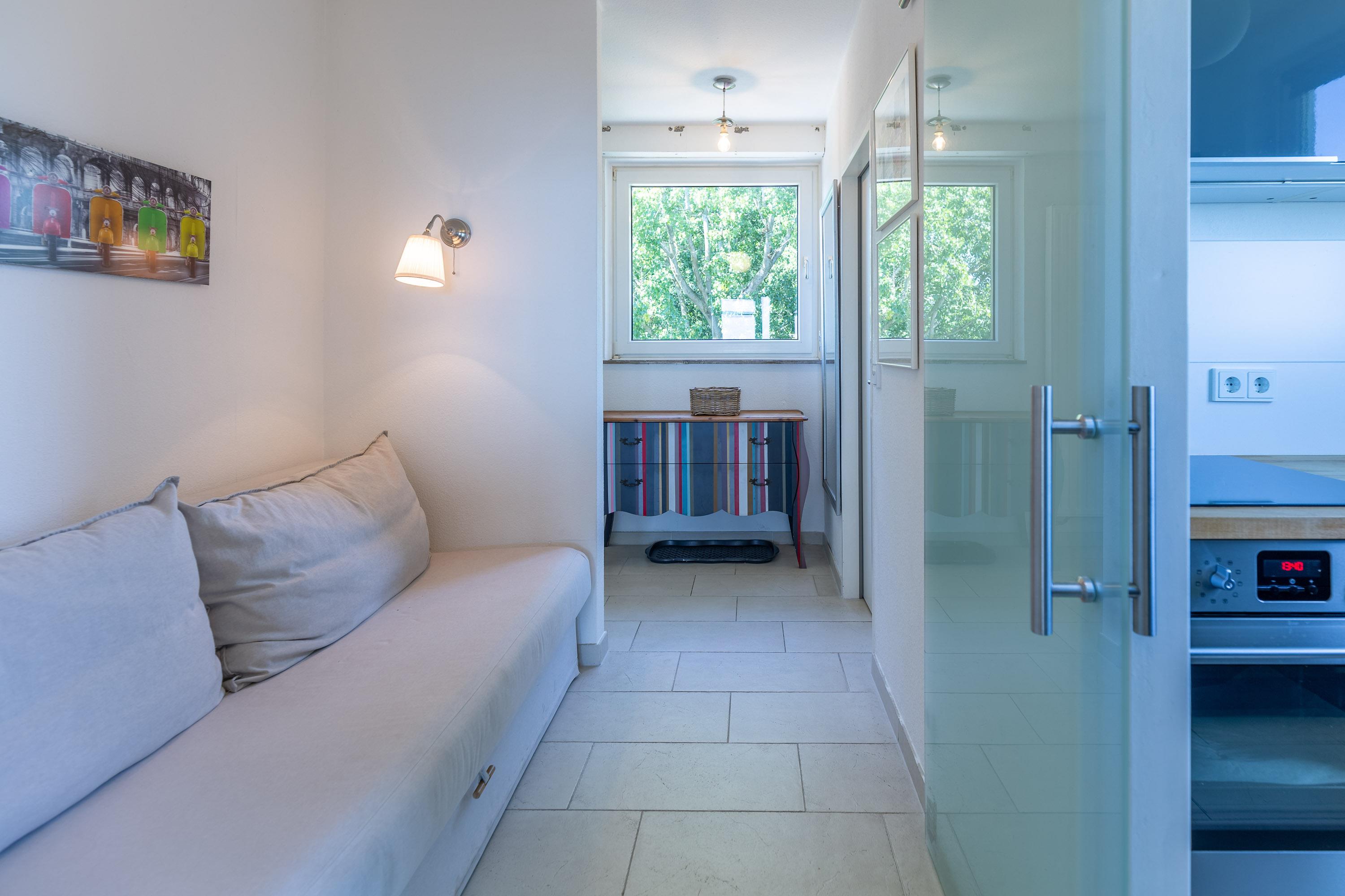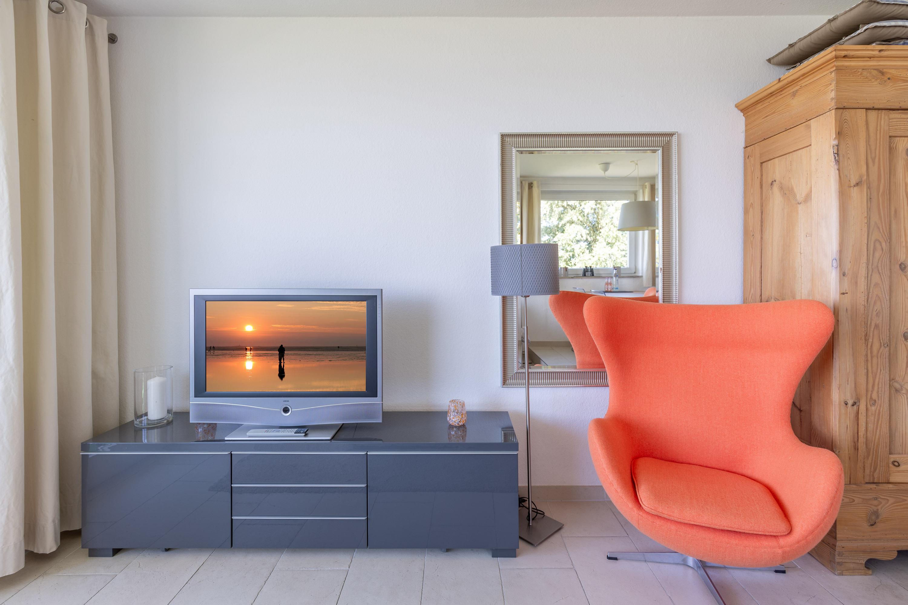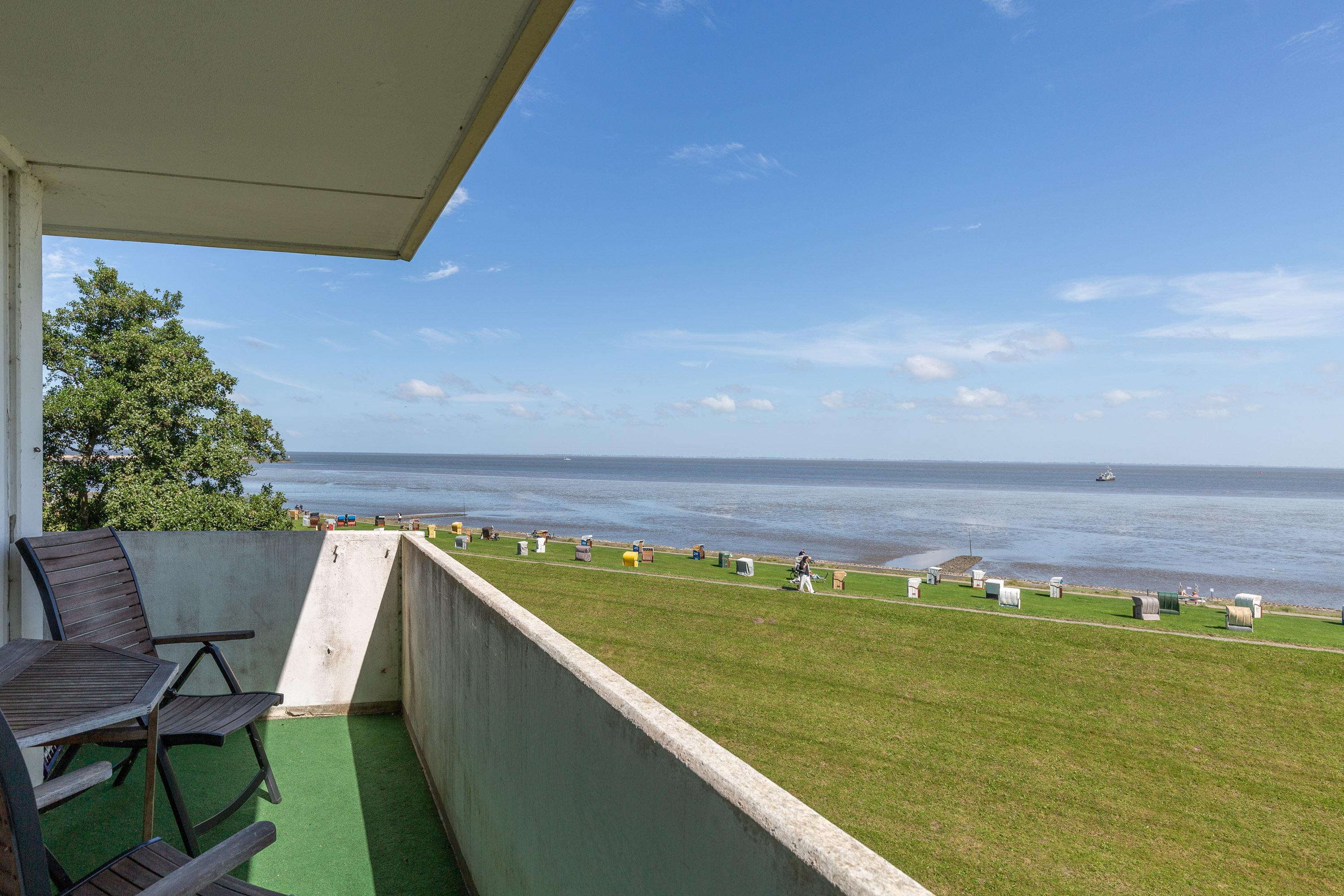 Nach einem erlebnisreichen Tag können Sie am Esstisch auf der Empore relaxen - durch den erhöhten Sitzbereich lassen sich die vorbeifahrenden Ozeanriesen besonders gut beobachten. Der kombinierte Wohn- und Schlafbereich bietet ein ausziehbares Schlafsofa. In der Diele befindet sich ein weiteres Schlafsofa, welches getrenntes Schlafen ermöglicht. Kostenloses WLAN und ein Flachbildfernseher sorgen für beste Unterhaltung. Die separate Küche mit Fenster lässt für Selbstversorger keine Wünsche offen und ist mit einem 4 Plattenherd, einem Backofen und einem Geschirrspüler ausgestattet. Das modern sanierte Bad mit Dusche und WC verfügt über ein Fenster zum Belüften. Auch der Balkon bietet einen spektakulären Meerblick.