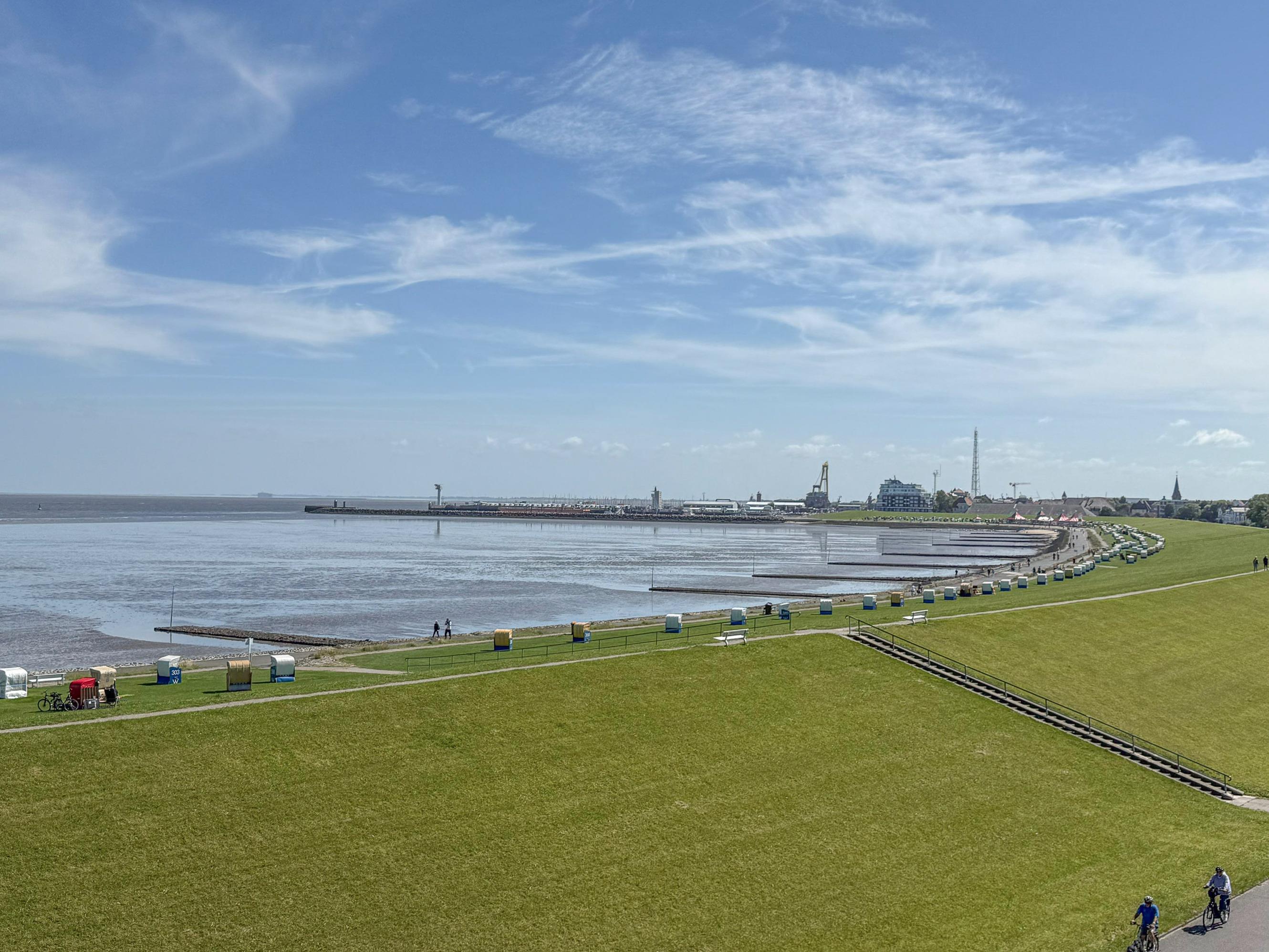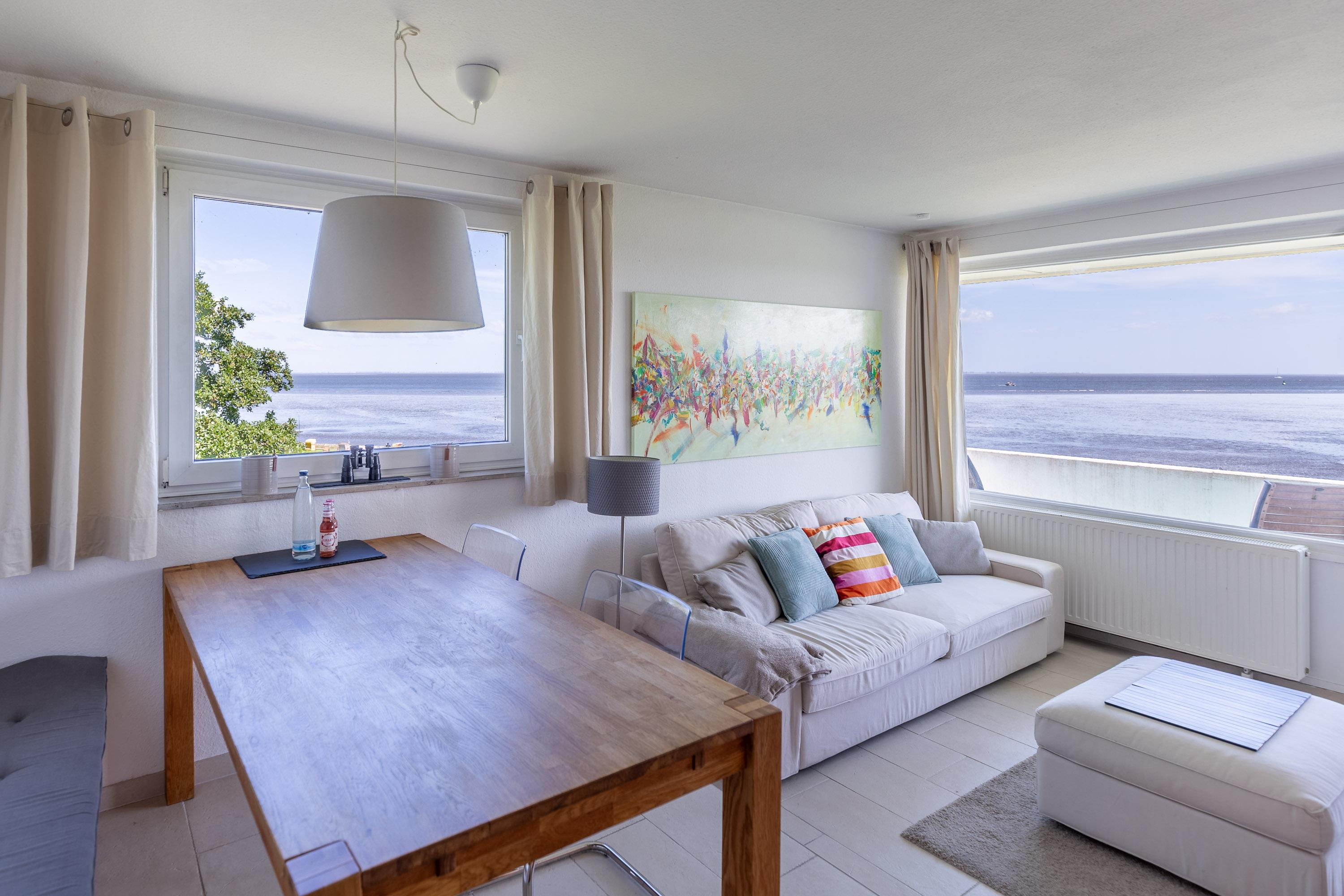 Moderne Ferienwohnung in Döse mit spektakulärem Elbblick und kostenlosem Wellnessbereich.