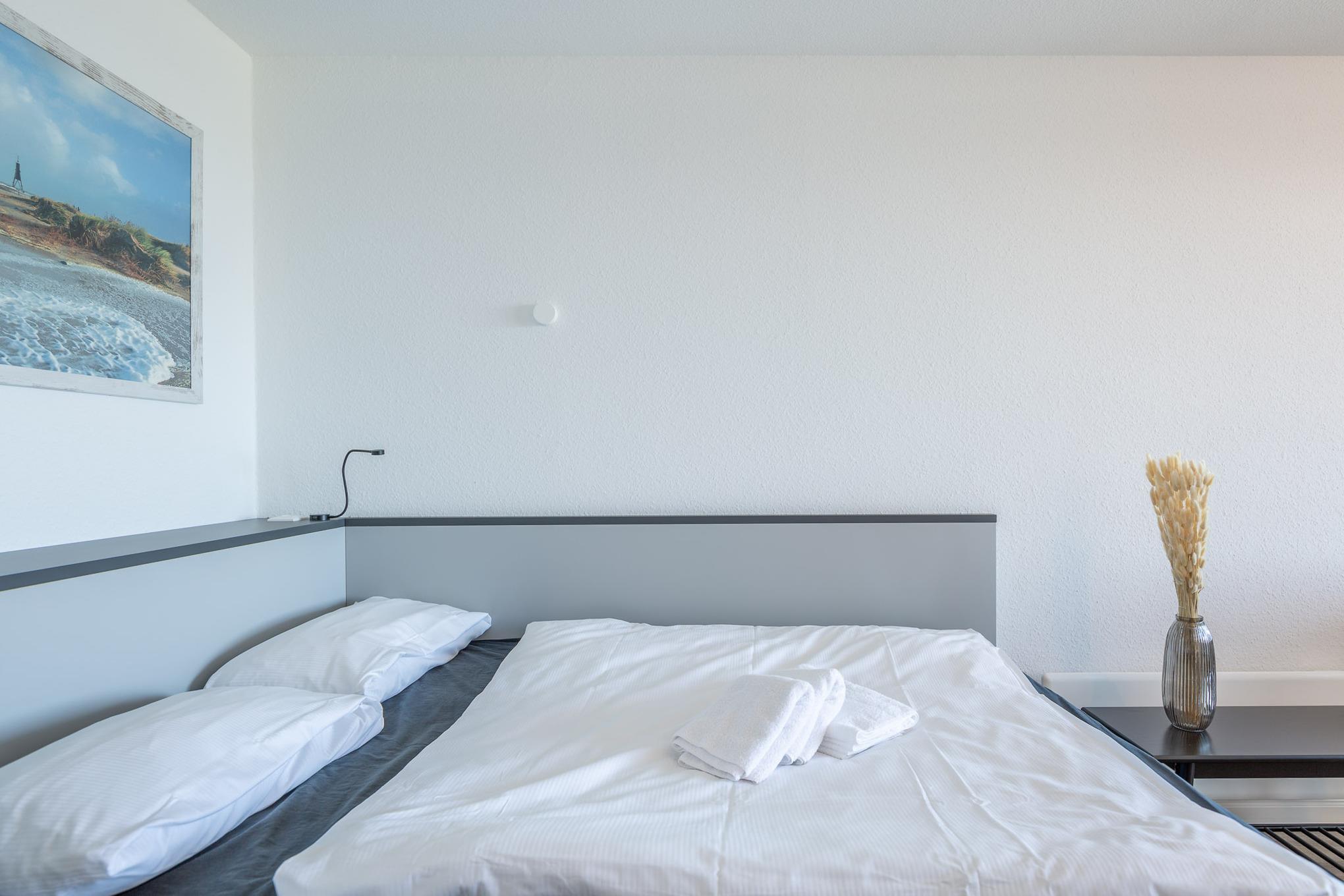 Aus der 35 m² Ferienwohnung haben Sie das maritime Geschehen auf der Elbe immer fest im Blick. Das komfortable Doppelbett im kombinierten Wohn- und Schlafbereich sorgt dafür, dass Sie gut einschlafen und erholt aufwachen. Vom Bett aus genießen Sie neben dem Fernsehprogramm auch den Blick auf den Weltschifffahrtsweg. Verdunklungsvorhänge gewährleisten, dass Sie nicht von der Morgensonne geweckt werden.