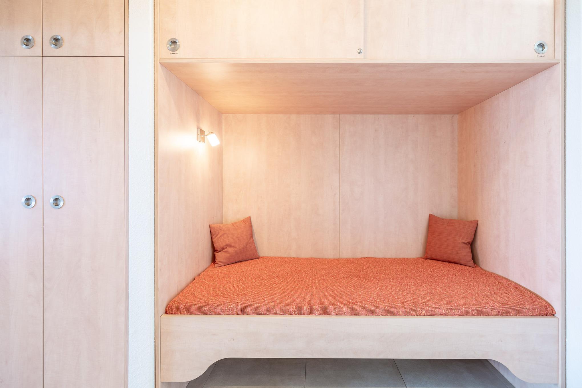 Die hochwertigen Schrankbetten (2x90x200) im Wohnbereich lassen sich getrennt nutzen. Außerdem bietet ein separates Einzelbett (90x200) im Vorraum eine vom Wohnbereich abgetrennte Schlafmöglichkeit. Die Ferienwohnung ist mit elektrischen Außenjalousien ausgestattet, sodass Sie nicht von der Morgensonne geweckt werden. Auch vom möblierten Balkon genießen Sie den faszinierenden Meerblick. Das modern sanierte Bad mit Dusche und WC verfügt über ein Fenster zum Belüften.