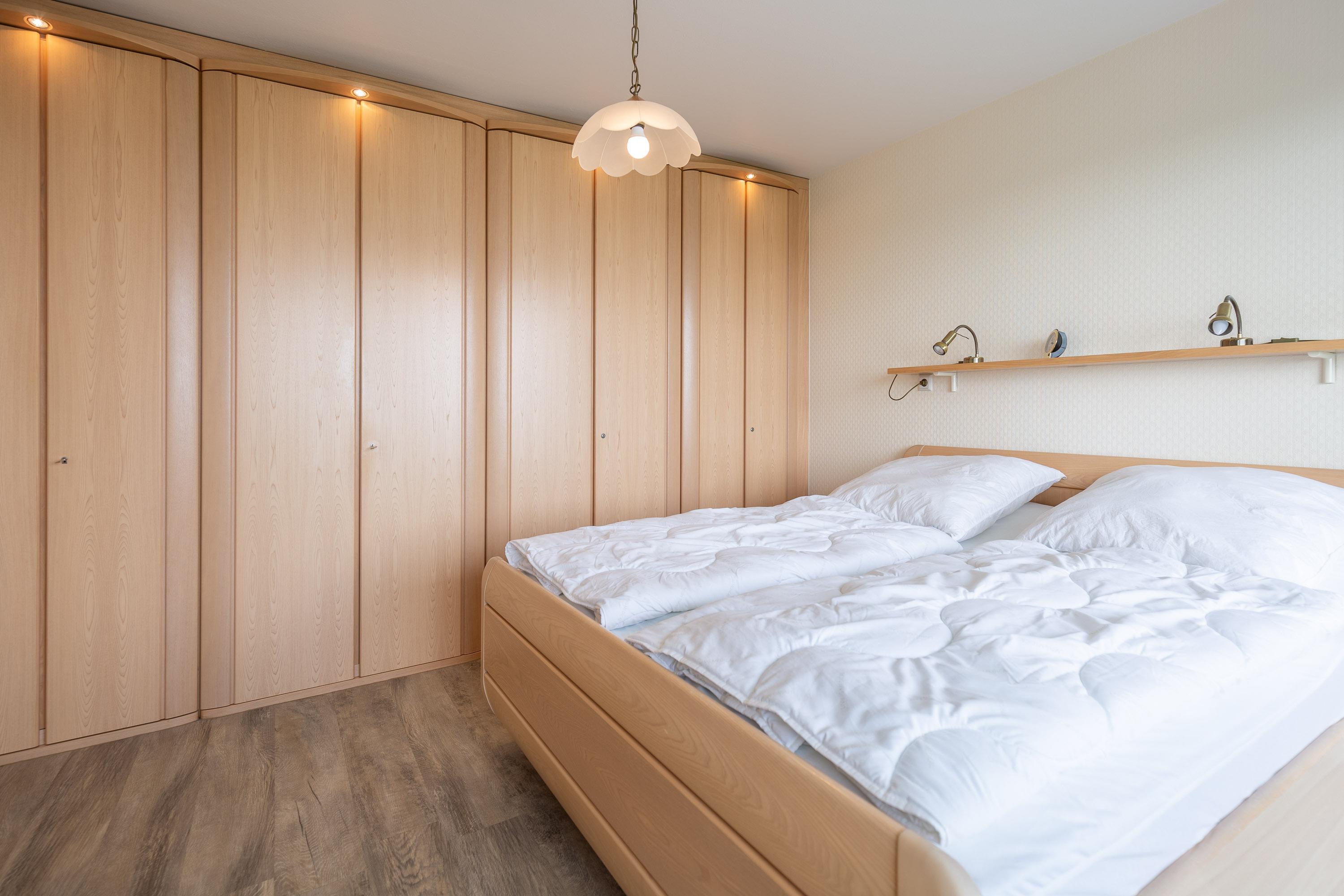 Die 2-Zimmer Ferienwohnung bietet 2 Personen auf 55 m² genügend Raum für behagliches und erholsames Wohnen. Auch das separate Schlafzimmer bietet Meerblick und einen direkten Zugang zum Balkon. Das komfortable Doppelbett und Außenjalousien gewährleistet, dass Sie sich auch im Schlaf erholen.