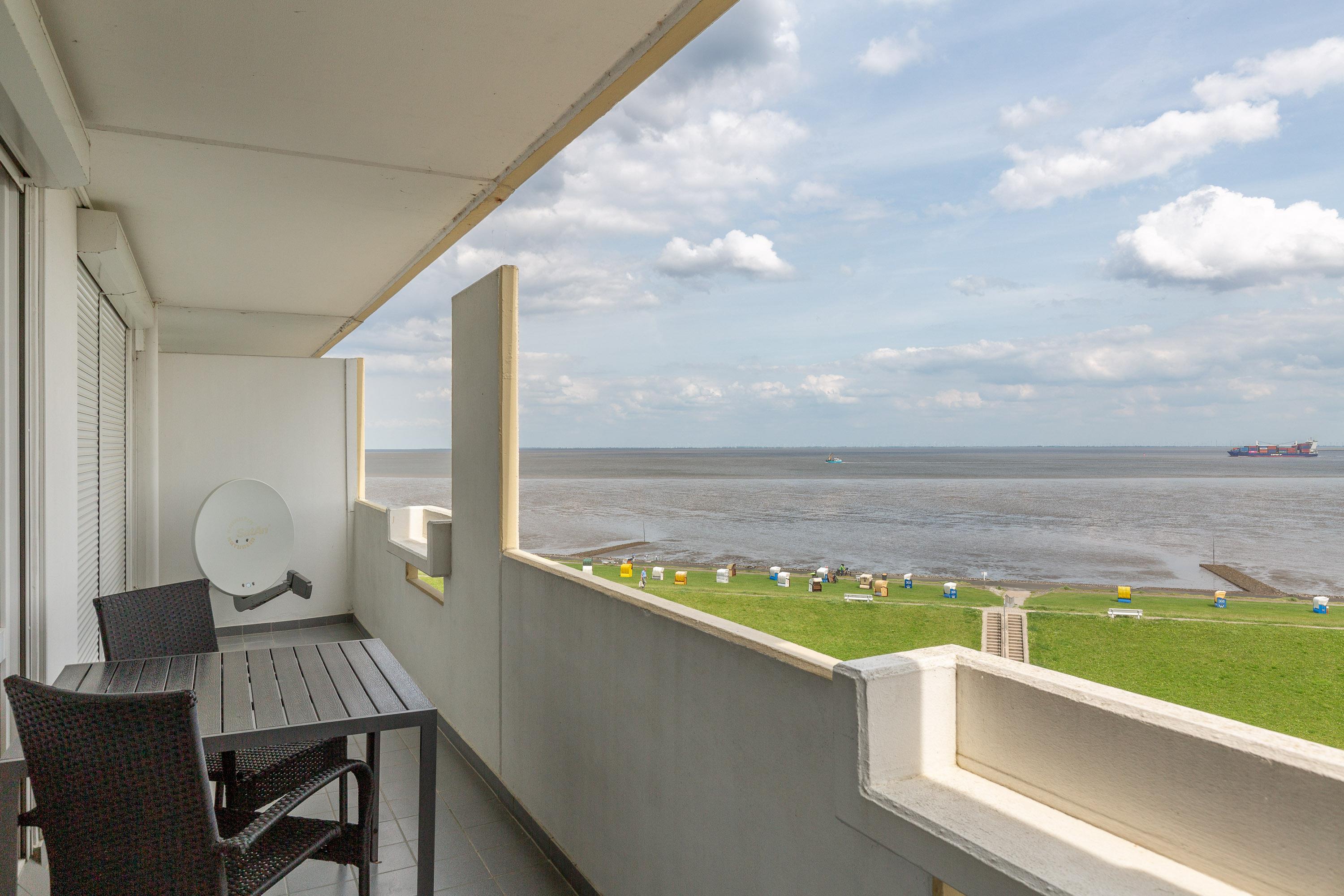 Ankommen und sich wohlfühlen. Ferienwohnung Nautic 609 bietet einen atemberaubenden Meerblick auf den Weltschifffahrtsweg. Vom Esstisch am Fenster genießen Sie schon beim Frühstück den atemberaubenden Ausblick auf die vorbeifahrenden Krabbenkutter, Segelschiffe und Luxus Liner, die zum Greifen nah scheinen.