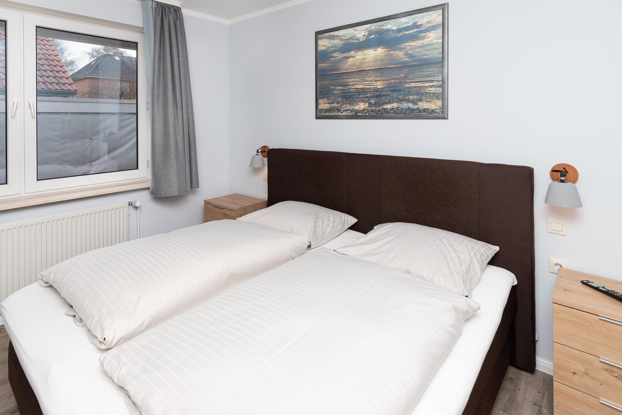 Zwei Schlafbereiche mit komfortablen Doppelbetten bieten erholsame Nächte. Das Badezimmer/WC ist mit Dusche und Fön ausgestattet.