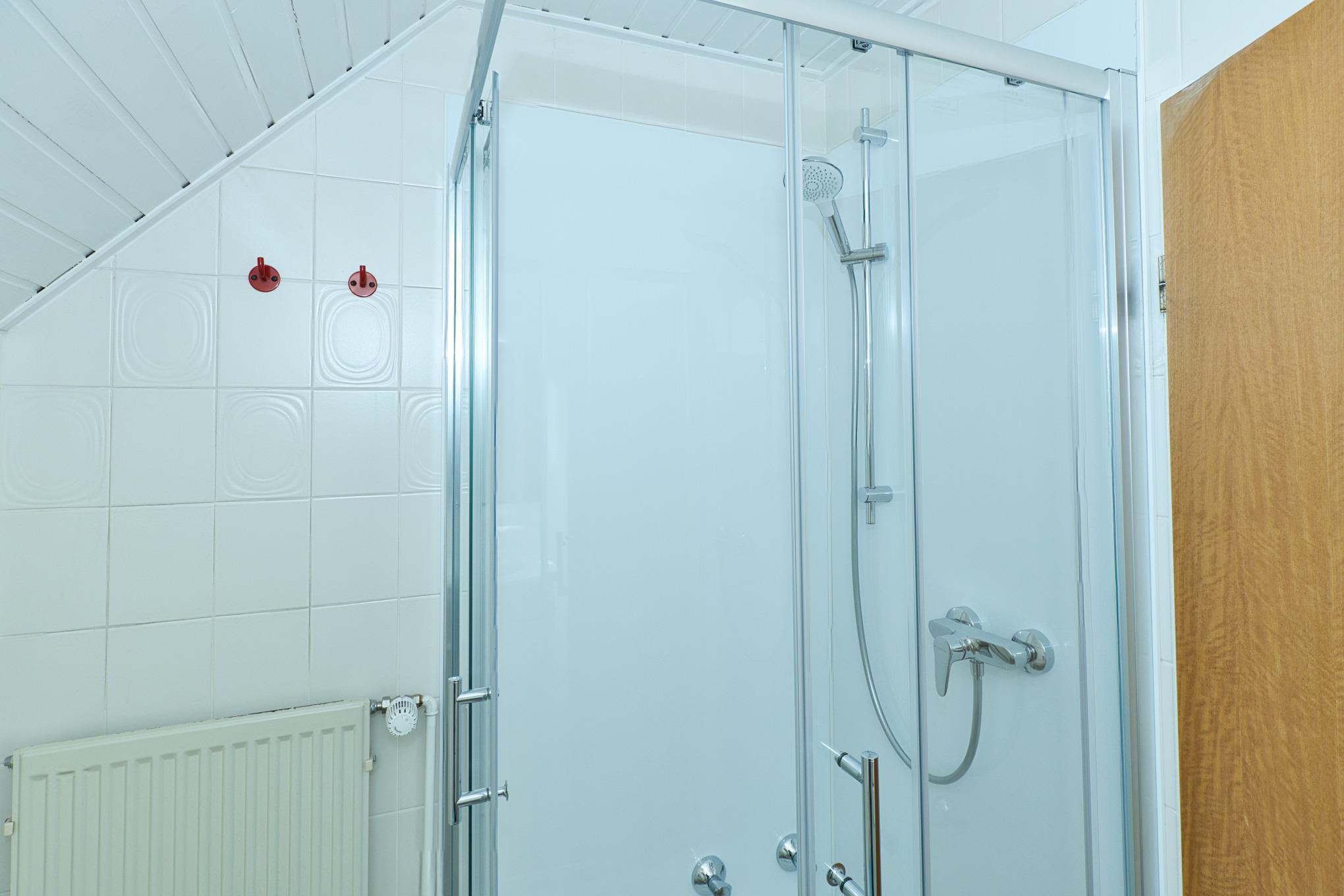 Das Schlafzimmer bietet ein Doppelbett (180×200?cm) und einen Kleiderschrank. Das Duschbad/WC mit Tageslicht ist innerhalb der Wohnung vorhanden.