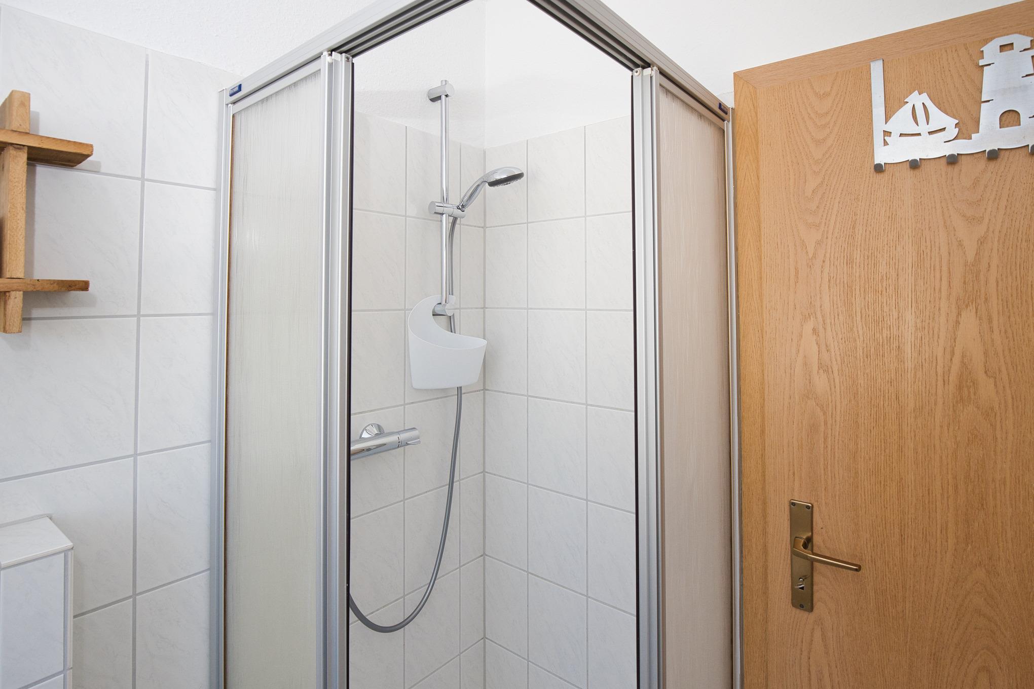 Das Badezimmer ist mit einer Dusche ausgestattet und funktional gestaltet. Eine Waschmaschine und ein Trockner stehen Ihnen im Gemeinschaftsbereich des Hauses gegen Gebühr zur Verfügung. Zusätzlich gibt es eine gemeinschaftliche Sauna im Haus, die ebenfalls gegen Gebühr genutzt werden kann.