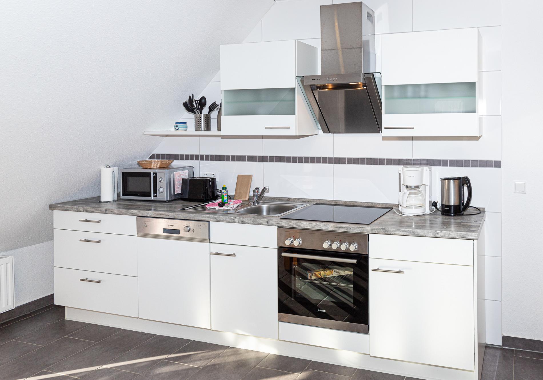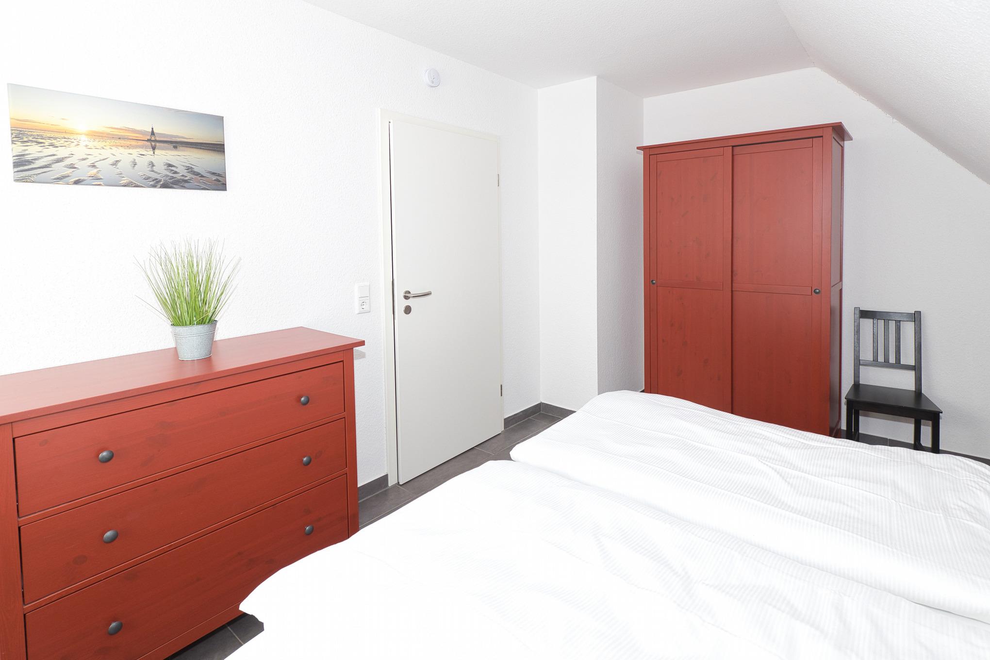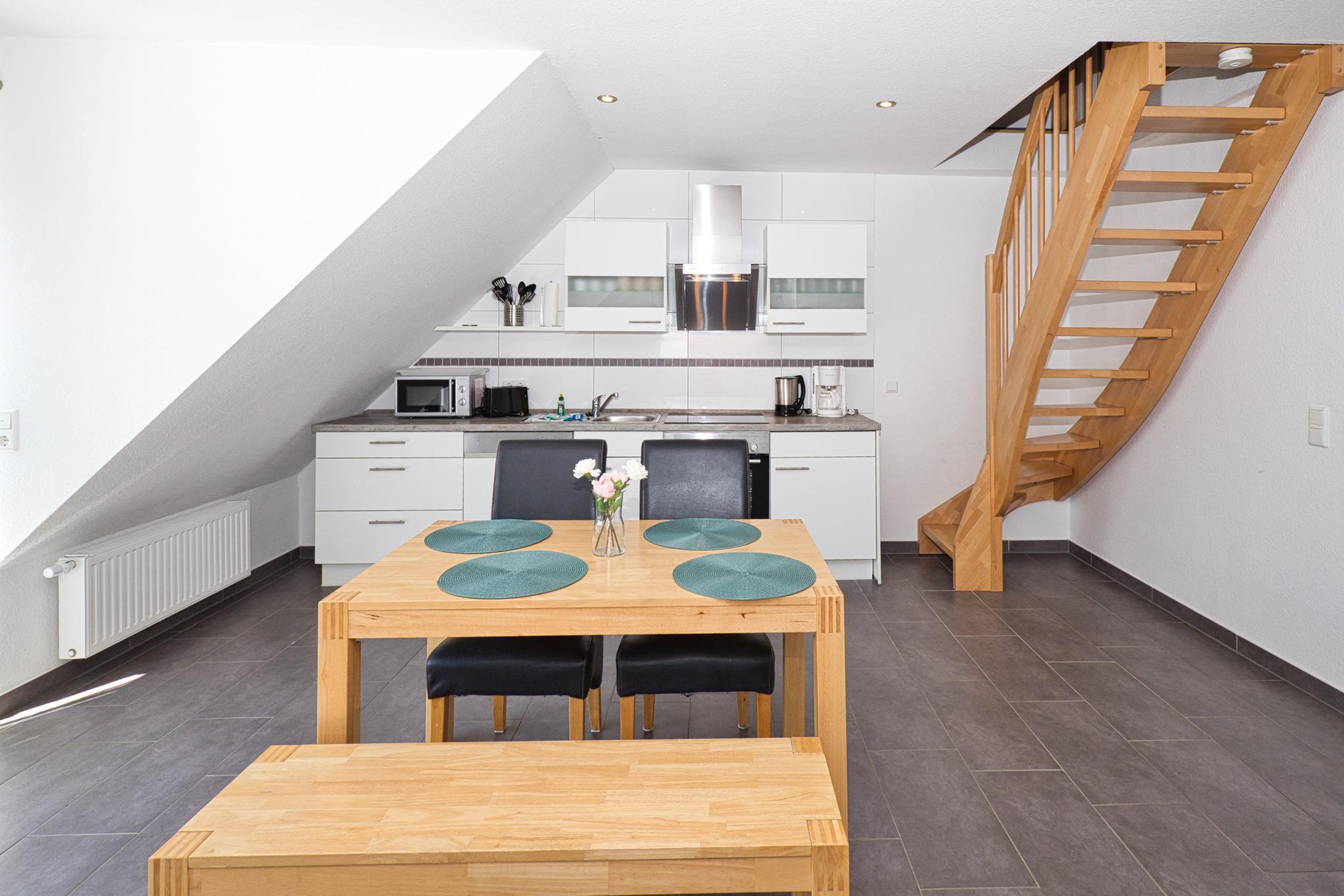 Die Elbwelle ist eine Maisonette-Wohnung mit drei Zimmern. In beiden Etagen gibt es jeweils ein Schlafzimmer mit zwei Betten. Die Wohnung ist lichtdurchflutet und verfügt über ein modernes Bad mit Fußbodenheizung, einen großzügigen und komfortablen Wohn- und Essbereich, sowie eine gut ausgestattete, hochwertige Einbauküche. Einladend ist auch der Südbalkon, der zum entspannten Verweilen einlädt. Zur Wohnung gehört außerdem ein ebenerdiger, abschließbarer Abstellraum für Fahrräder und ähnliches, sowie ein Parkplatz für Ihren PKW vor dem Haus.
