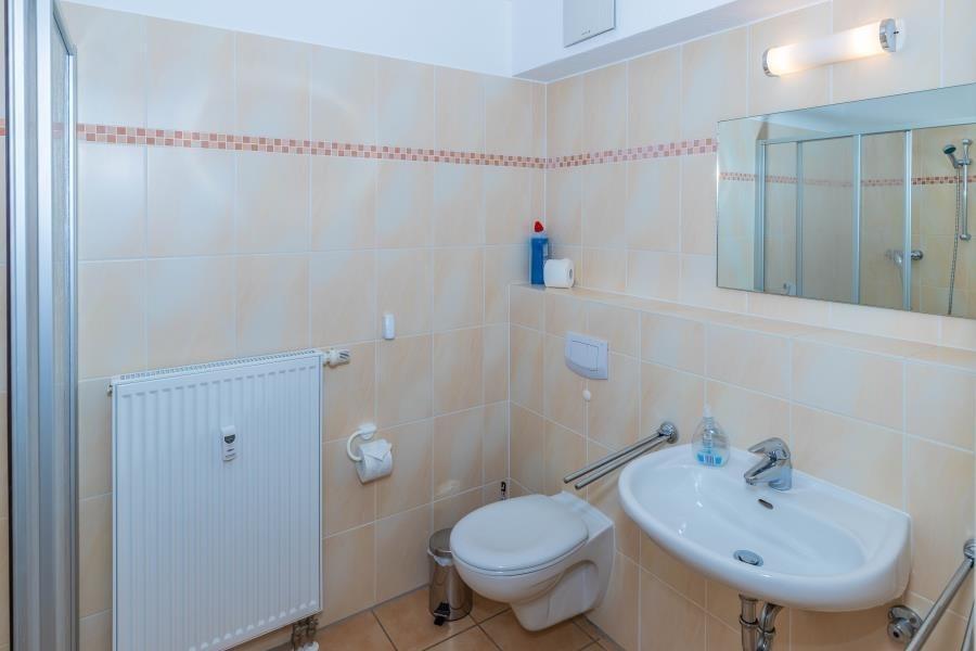 Steinmarner Stadtvilla, Whg. 9, 2-Raum, EG Mitte, 46m², bis zu 3 Personen, Wohlfühlen mit eigenem kleinen Garten. Die freundlich und komfortable aufgeteilte Ferienwohnung mit einem Schlafzimmer mit Doppelbett, Zugang zur Terrasse und dem dem geräumigen Wohn- und Essbereich mit einer gut ausgestatteten Einbauküche bietet Ihnen Entspannung und Erholung. Vom Eingangsbereich gelangen Sie ins Duschbad (Dusche/WC) und in den Wohn- und Essbereich. Vom Wohnbereich geht es auf die große Terrasse mit Zugang zum Garten (mit Terrassenmöbeln).