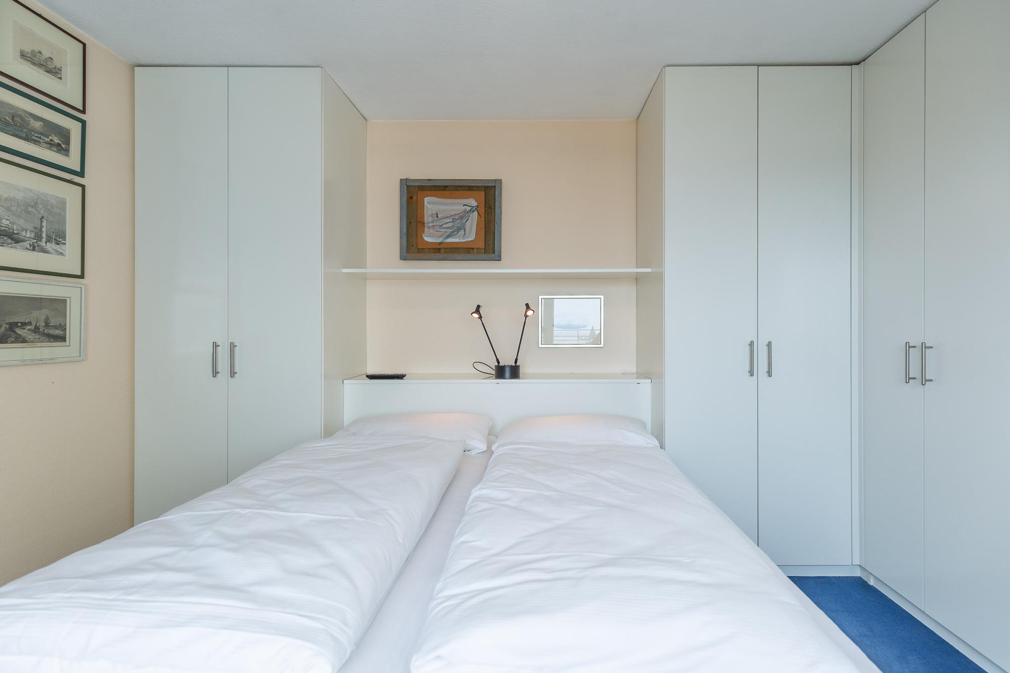 Schiffchen anstatt Schäfchen zählen. Morgens wachen Sie auf und sehen die Elbe. Dafür müssen Sie noch nicht einmal aus Ihrem Bett aufstehen. Das separate Schlafzimmer mit Doppelbett in Komfortliegehöhe und Premium-Matratzen sorgt für einen erholsamen Schlaf. Elektrische Außenjalousien gewährleisten, dass Sie nicht von der Morgensonne geweckt werden. Auch vom Schlafzimmer haben Sie einen direkten Zugang zur Dachterrasse.