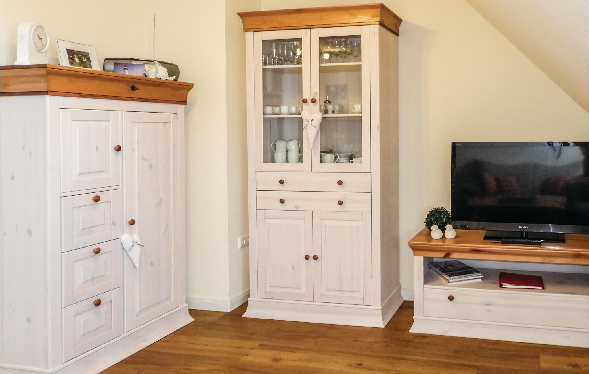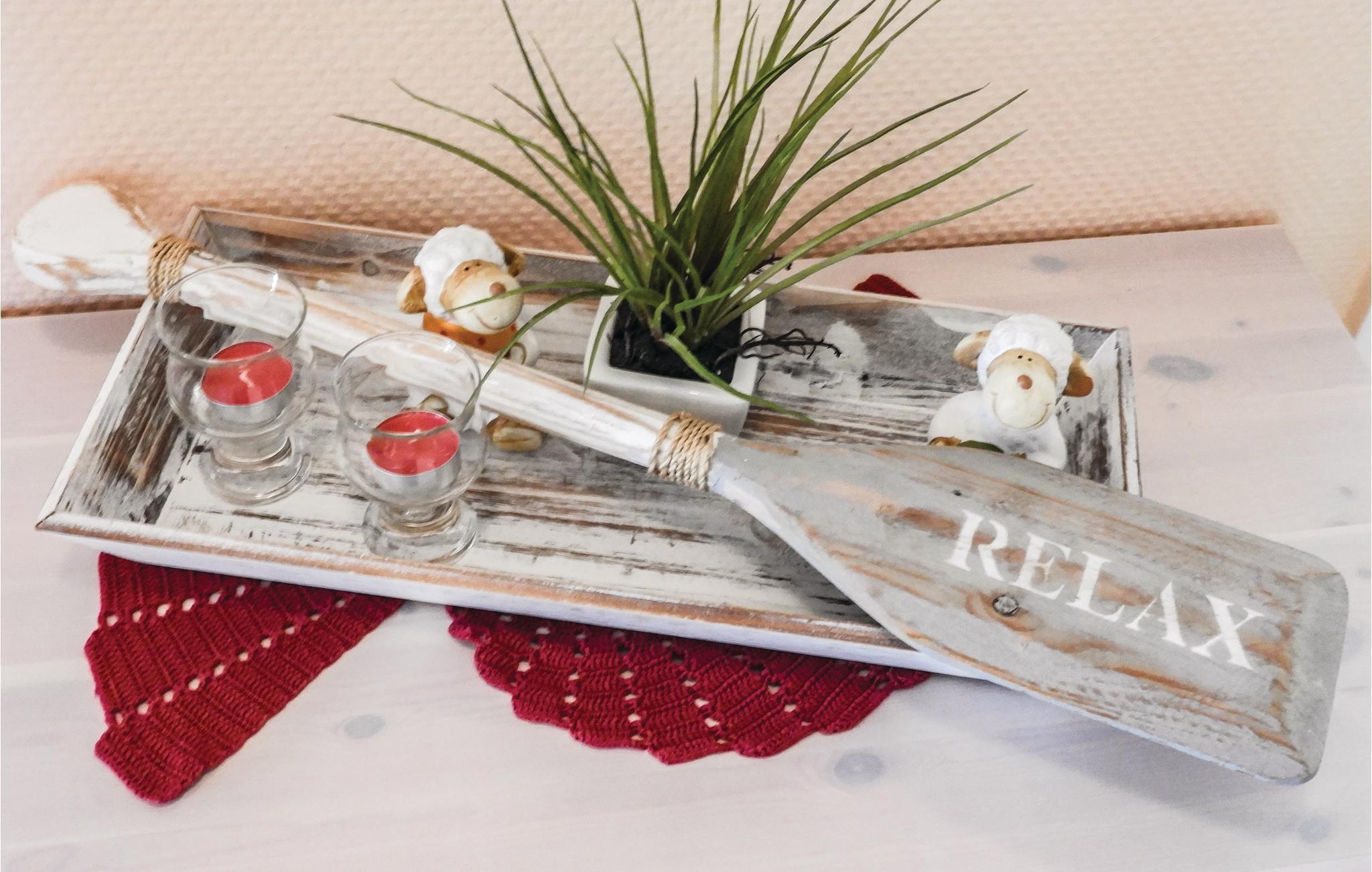 Die Wohnung liegt im 1. Obergeschoss und ist modern und hochwertig eingerichtet. Maritime Dekoelemente runden das Urlaubsgefühl ab.