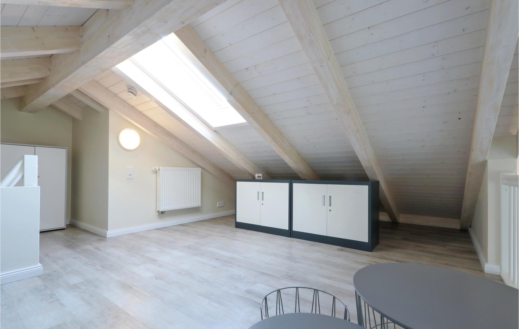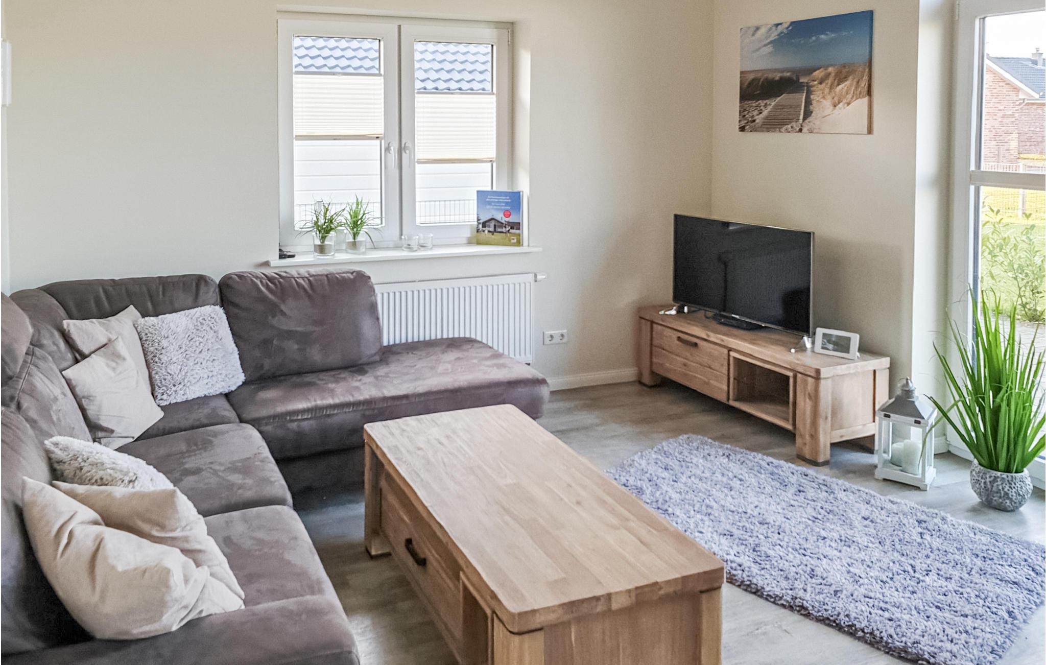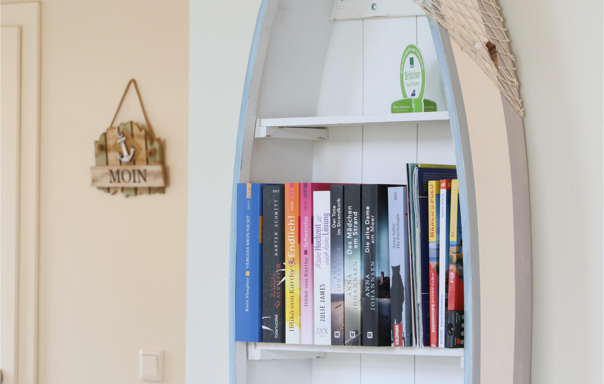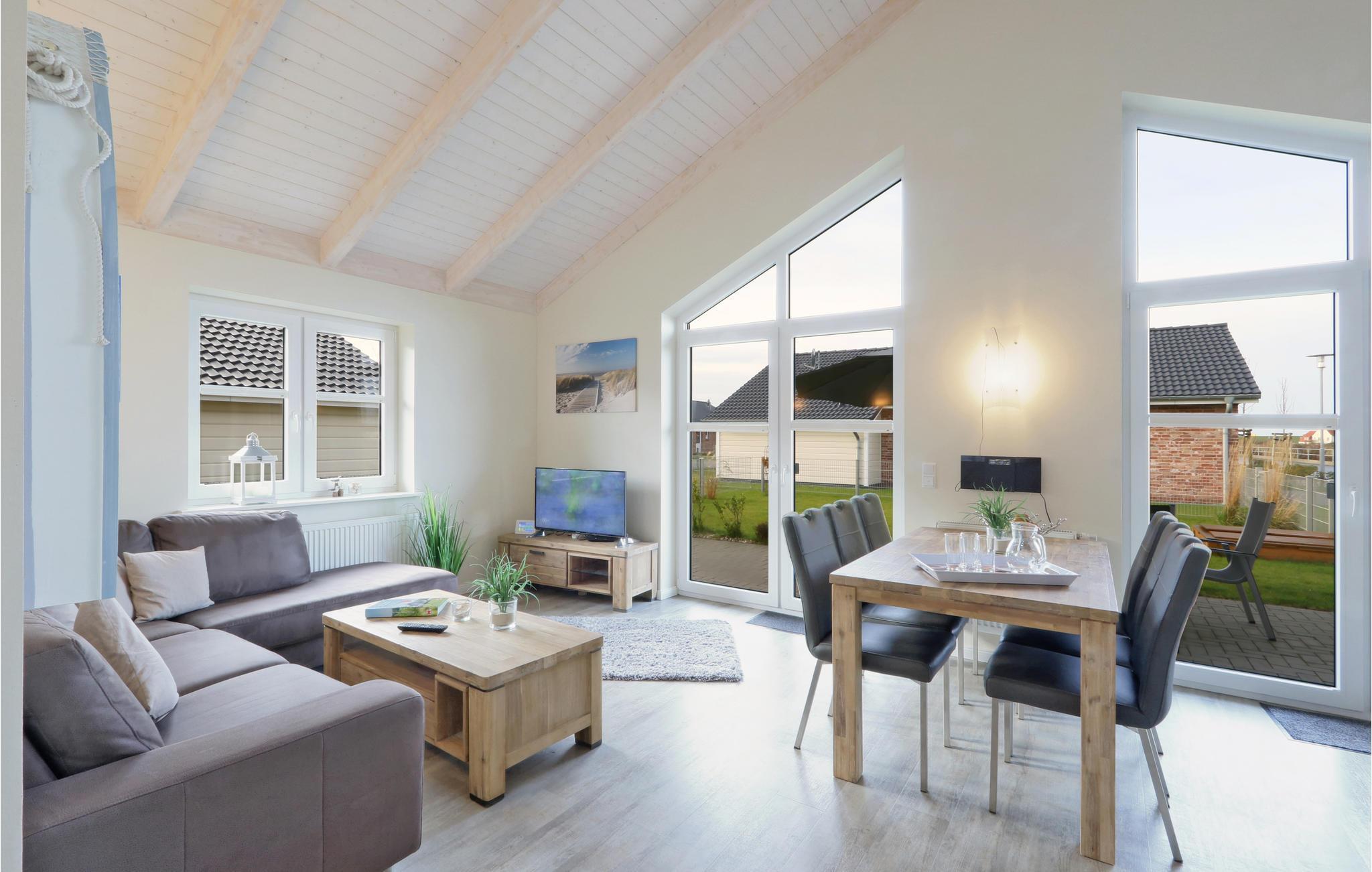 Das Haus ist mit hochwertigen Möbeln ausgestattet und alle Räume sind großzügig gestaltet. Dank der hauseigenen Sauna und des gemütlichen Kaminofens ist das Haus auch in der kalten Jahreszeit ein wahres Highlight. Nach einem langen Spaziergang am Deich entlang, können Sie es sich hier gemütlich machen und sich wieder aufwärmen. Ein DVD-Player sowie ein Bücherregal mit vielen Büchern steht für Sie bereit, sodass Ihnen hier garantiert nicht langweilig wird. Auf der Galerie befindet sich ein gemütliches Sofa, das einen entspannten Rückzugsort bietet.