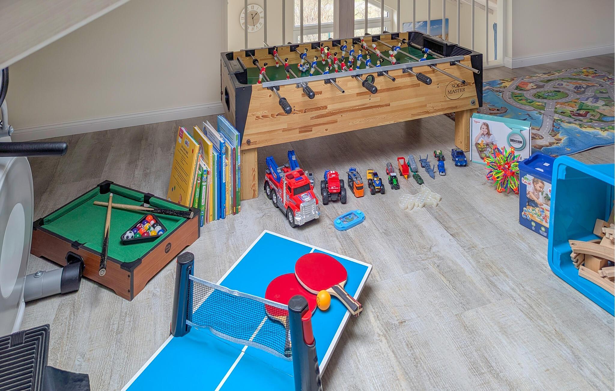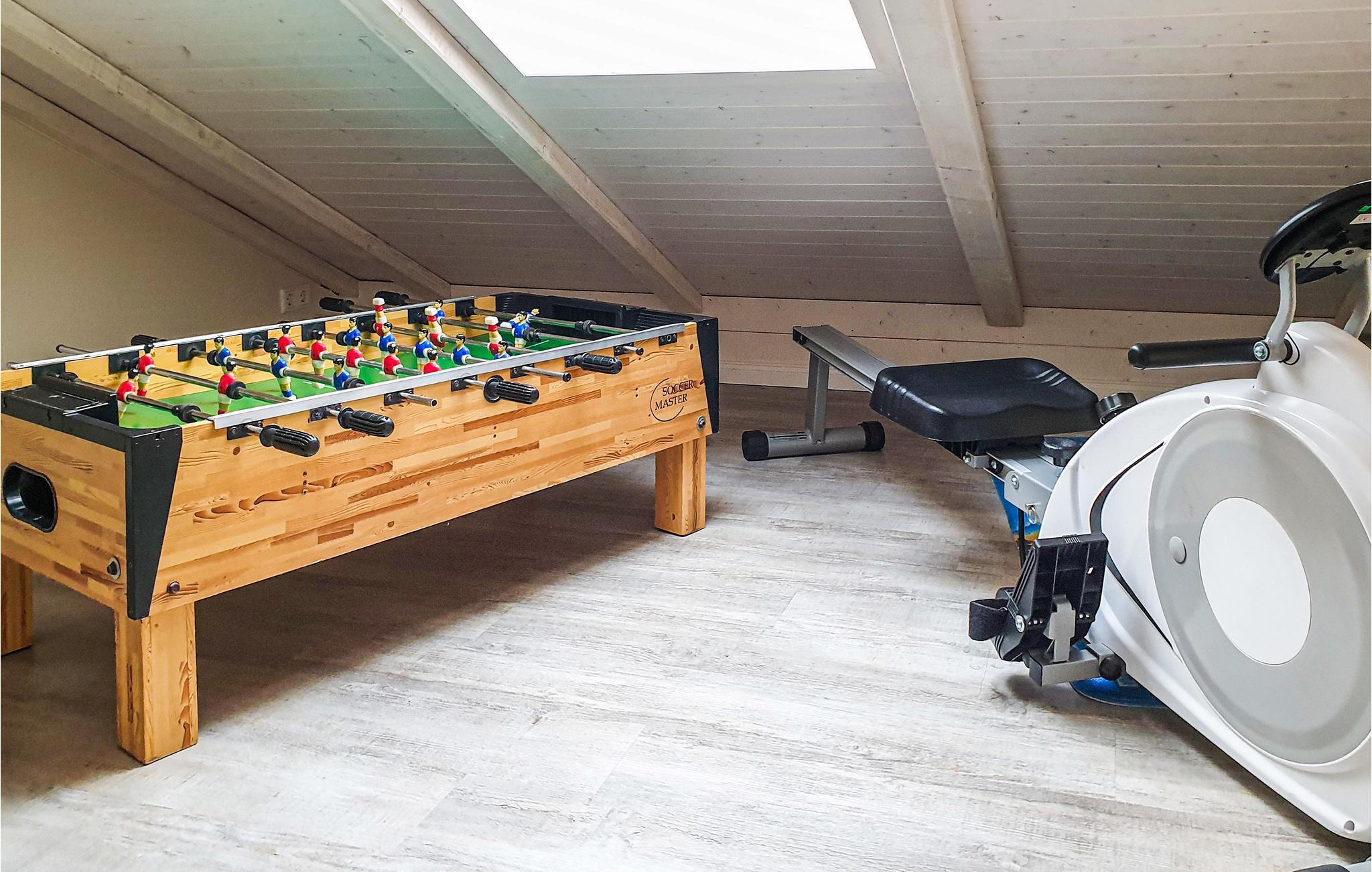 Im Haus befindet sich außerdem ein Rudergerät, auf dem sich sportlich Aktive auspowern können sowie ein Tischkicker für die Kinder.