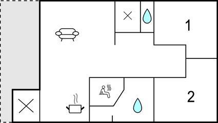 Badezimmer (nr. 1) - WC. Warmes und kaltes Wasser. Dusche und Badewanne