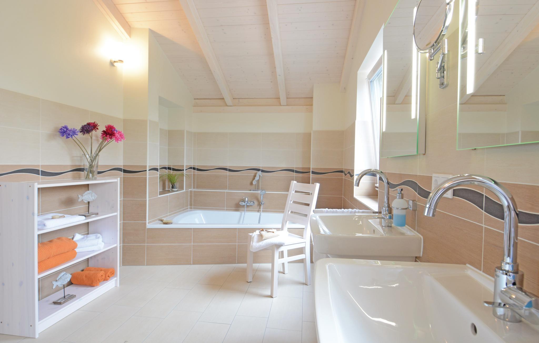 Nur einen Steinwurf von der Nordsee entfernt liegt diese luxuriösen Ferienhäuser in Dagebüll. Auf über 100m2 finden Sie direkt im kleinen Örtchen Dagebüll die perfekten Voraussetzungen für einen erholsamen Urlaub: bei schönem Wetter können Sie auf der eigenen Terrasse oder auf dem Balkon im Kreise Ihrer Lieben sonnenbaden, grillen oder einfach nur die frische Nordseeluft genießen. Die moderne Wohnküche und die gemütliche Sofalandschaft lassen keine Wünsche offen. Ein besonderes Highlight ist das Badezimmer der Extraklasse mit XXL-Badewanne für zwei Personen und großer Sauna (1.Stock).