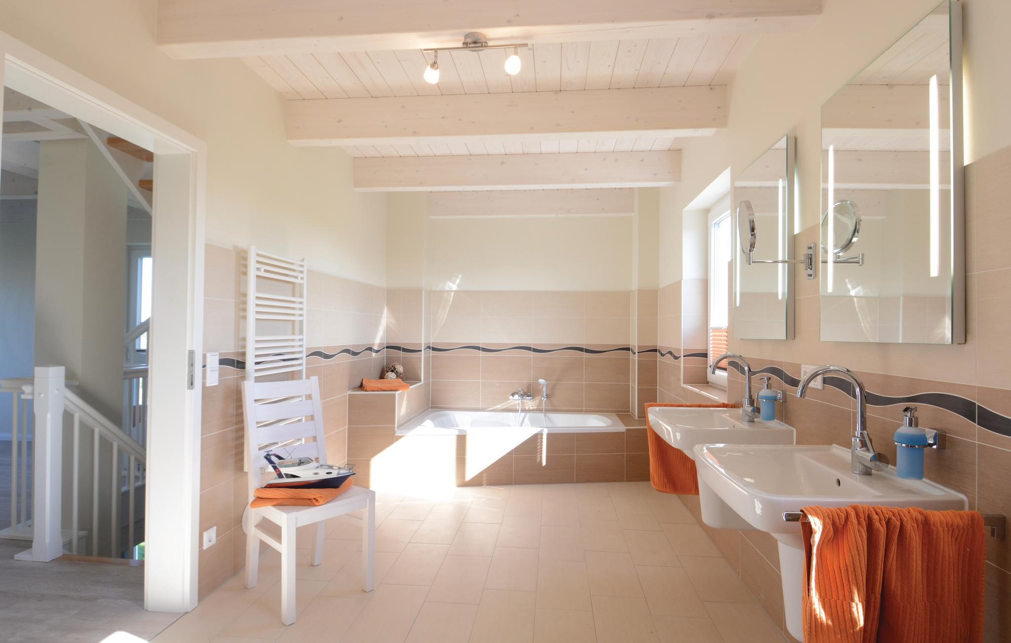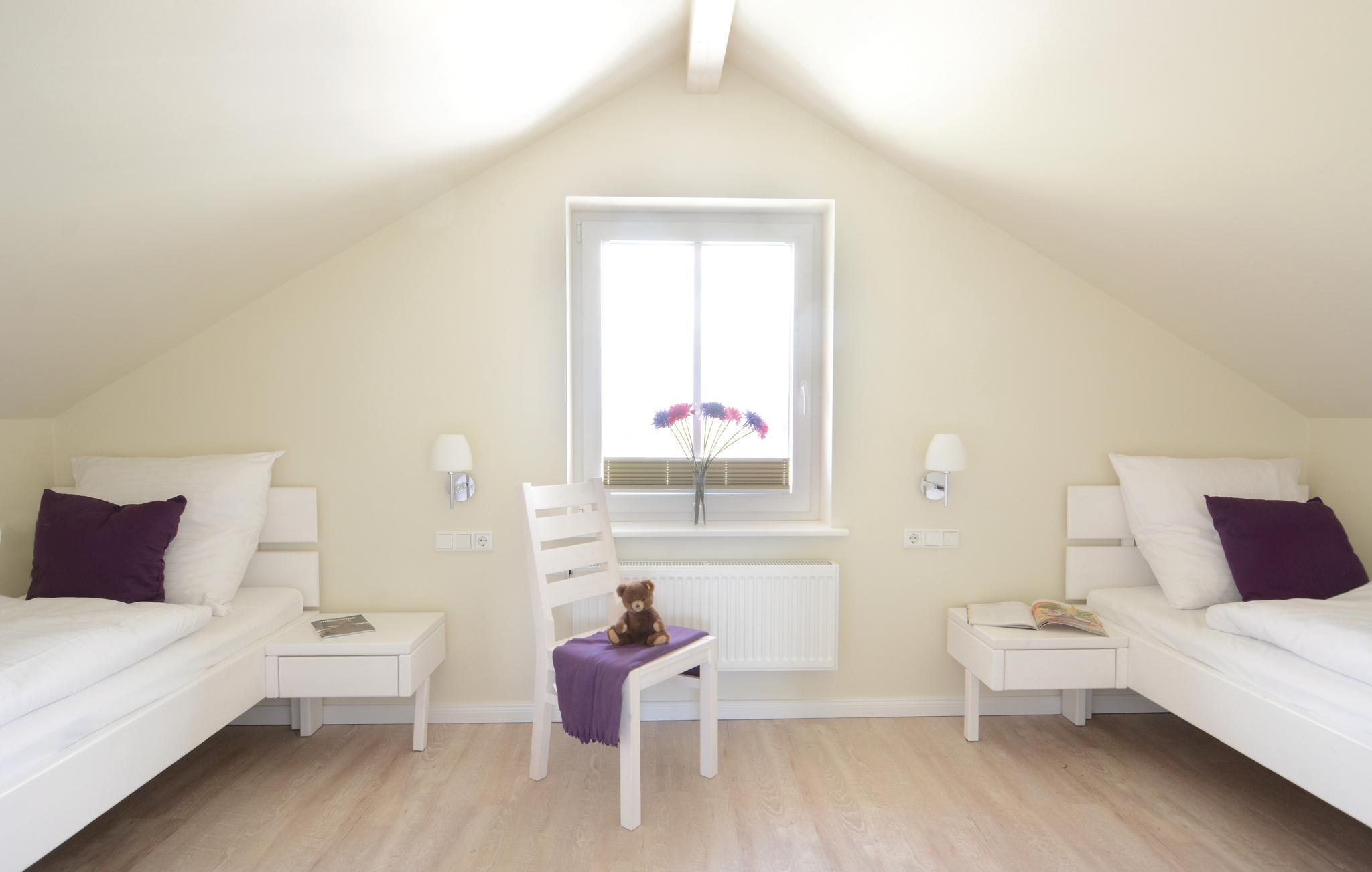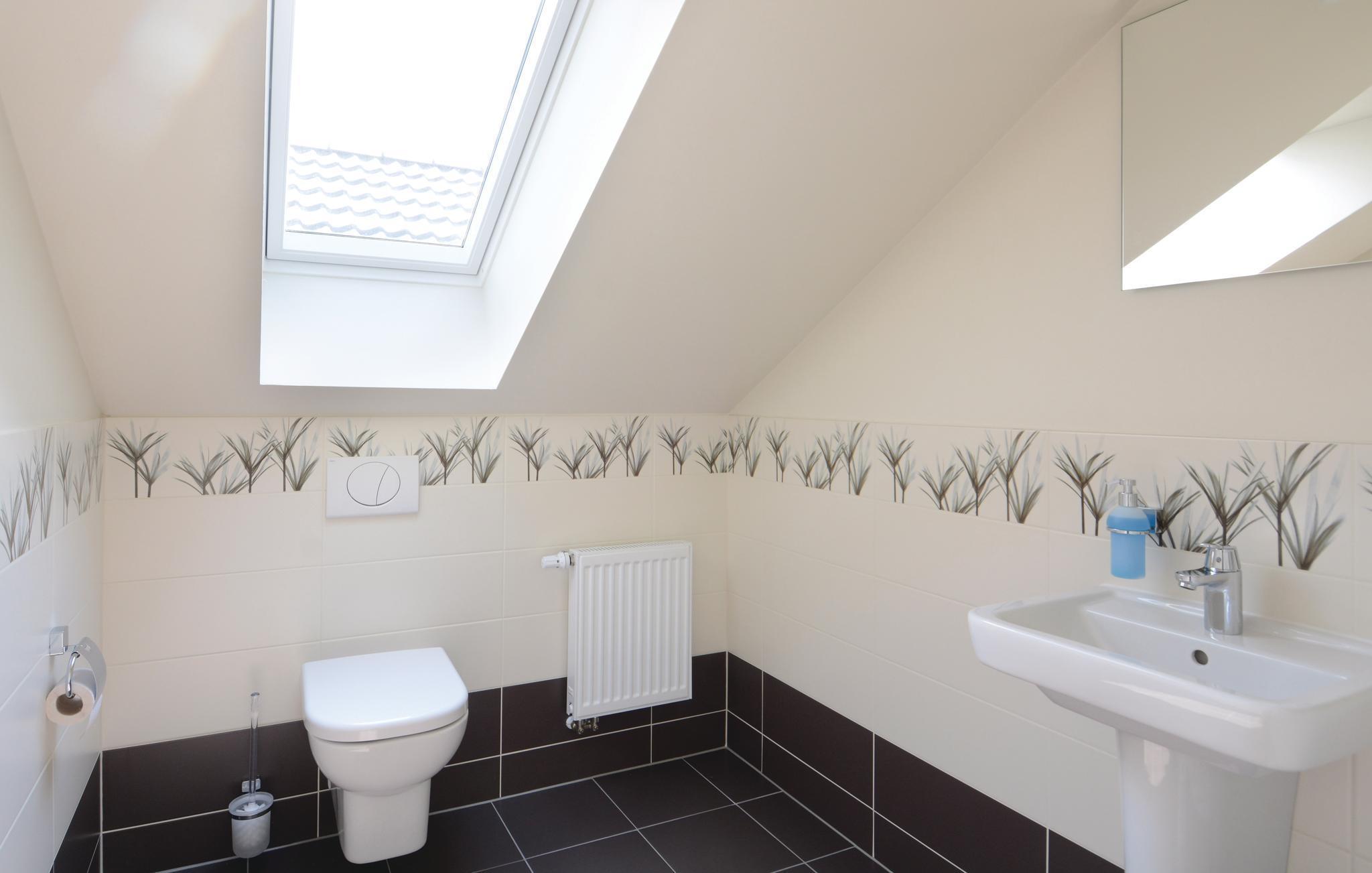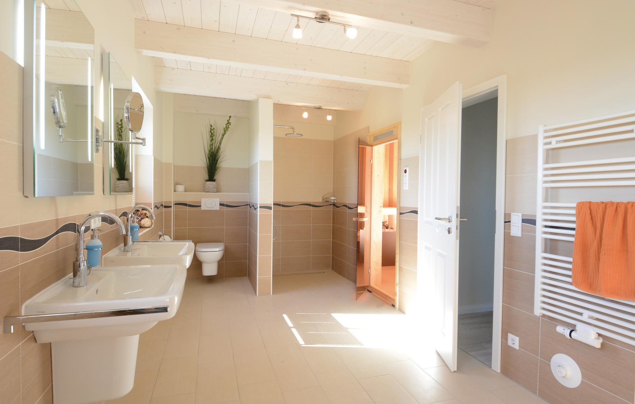 Die Schlafzimmer verteilen sich auf alle drei Etagen. Sowohl eines der Schlafzimmer als auch ein Bad (Dusche ohne Einstiegsschwellen) befindet sich im Erdgeschoss, so dass es auch für Gäste geeignet ist, die die Treppen in die oberen Stockwerke nicht so gut bewältigen können. Dank des 1,20m breiten Bettes ist dieses Schlafzimmer im EG besonders komfortabel. Das große Bad im 1. Stock macht das Haus dank der herrlichen XXL-Badewanne und der großzügigen Sauna besonders in der kalten Jahreszeit zu einer absoluten Wohlfühloase.