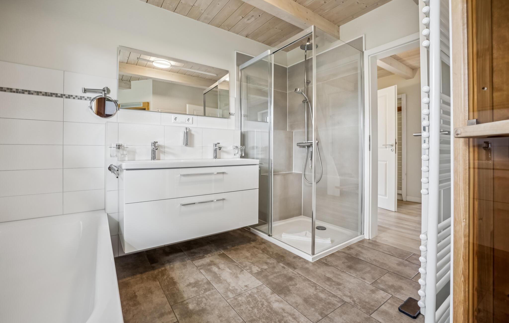 Badezimmer (nr. 1) - WC. Warmes und kaltes Wasser. Dusche und Badewanne