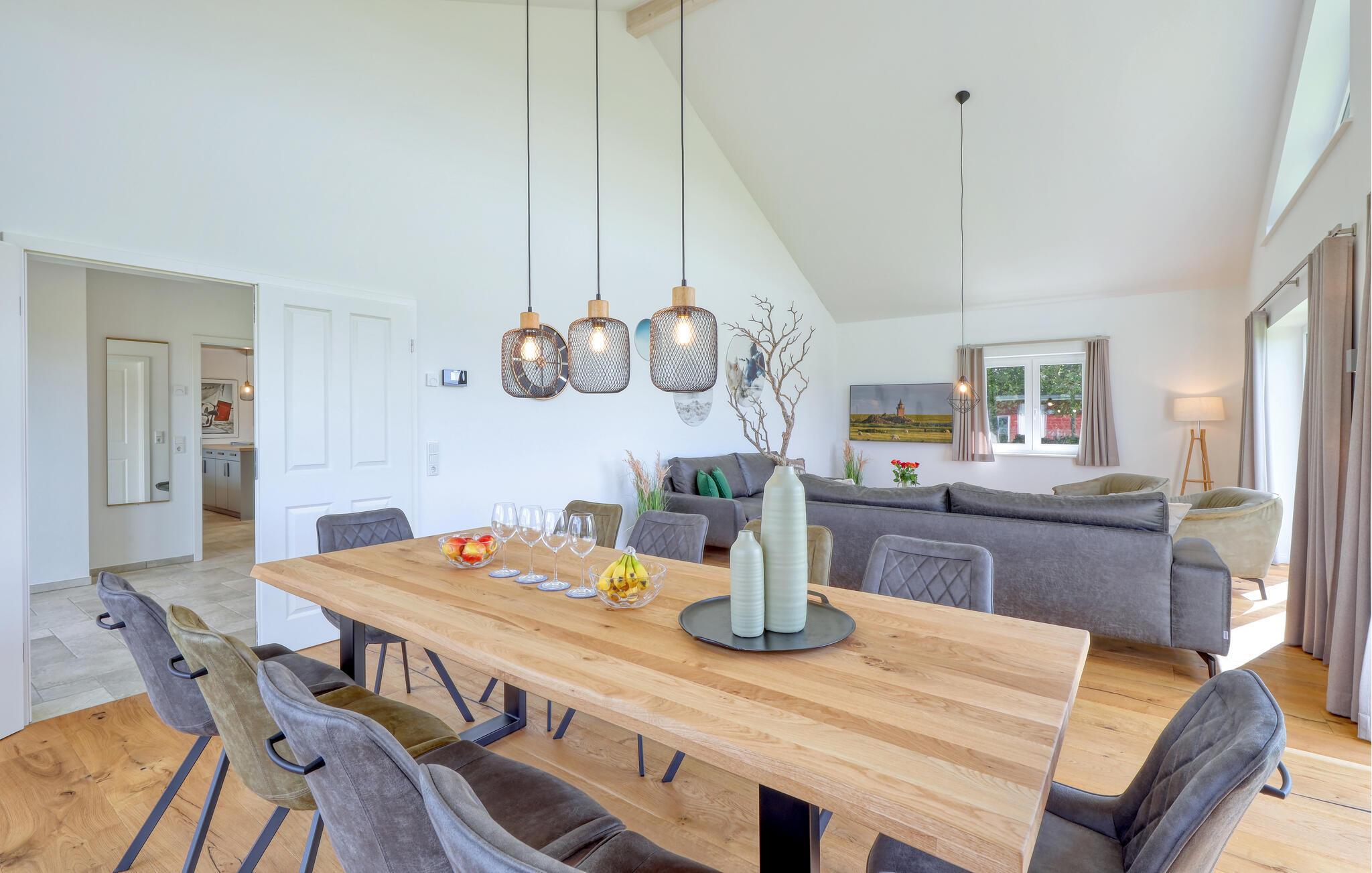 Herzlich Willkommen in diesem Familienferienhaus, das Sie kurz hinter dem Deich in Dagebüll erwartet. Nur einen kurzen Spaziergang vom Badedeich und Fährhafen entfernt, lockt Ihr großzügig gestaltetes Holzhaus mit einer familienfreundlichen Einrichtung und Ausstattung. Zwei Familien finden hier Platz und können gemeinsam an dem eleganten Esstisch speisen. In der im gleichen Stil gehaltenen Küche ist gemeinsames Kochen möglich.