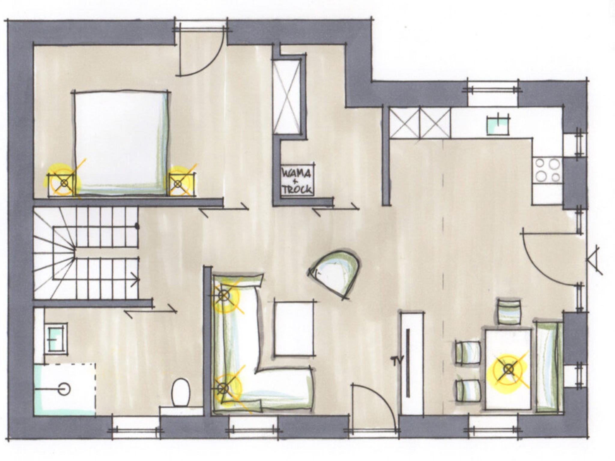 "Steuerbord", 3-Zimmer-Doppelhaushälfte 115 m2 auf 2 Stockwerken. Modern und geschmackvoll eingerichtet: Wohn-/Esszimmer mit Esstisch und Sat-TV (Flachbildschirm). 1 Doppelzimmer mit 1 Doppelbett (180 cm, Länge 200 cm), Sat-TV (Flachbildschirm). Ausgang zum Garten, zur Terrasse. Grosse, offene Küche (Backofen, Geschirrspüler, 4 Glaskeramikplatten, Toaster, Wasserkocher, elektrische Kaffeemaschine). Bad/Dusche. G-Heizung. Obergeschoss: 1 Doppelzimmer mit 1 Doppelbett (180 cm, Länge 200 cm). Bad/Dusche/WC, Whirlbadewanne. Grosser Garten 400 m2. Terrassenmöbel, Liegestühle, Abstellkammer. Schöne Sicht auf die Landschaft. Zur Verfügung: Waschmaschine, Wäschetrockner, Kinderhochstuhl, Babybett. Internet (Wireless LAN, gratis). Bitte beachten: Nichtraucher-Unterkunft. Maximal 2 Haustiere/Hunde erlaubt.