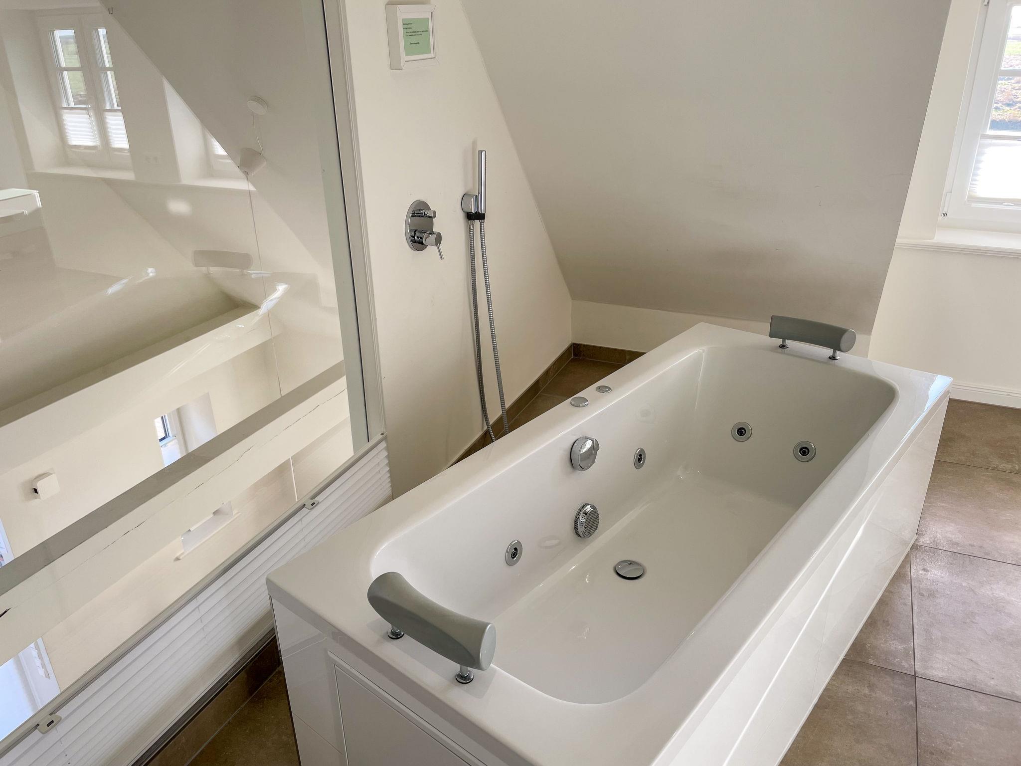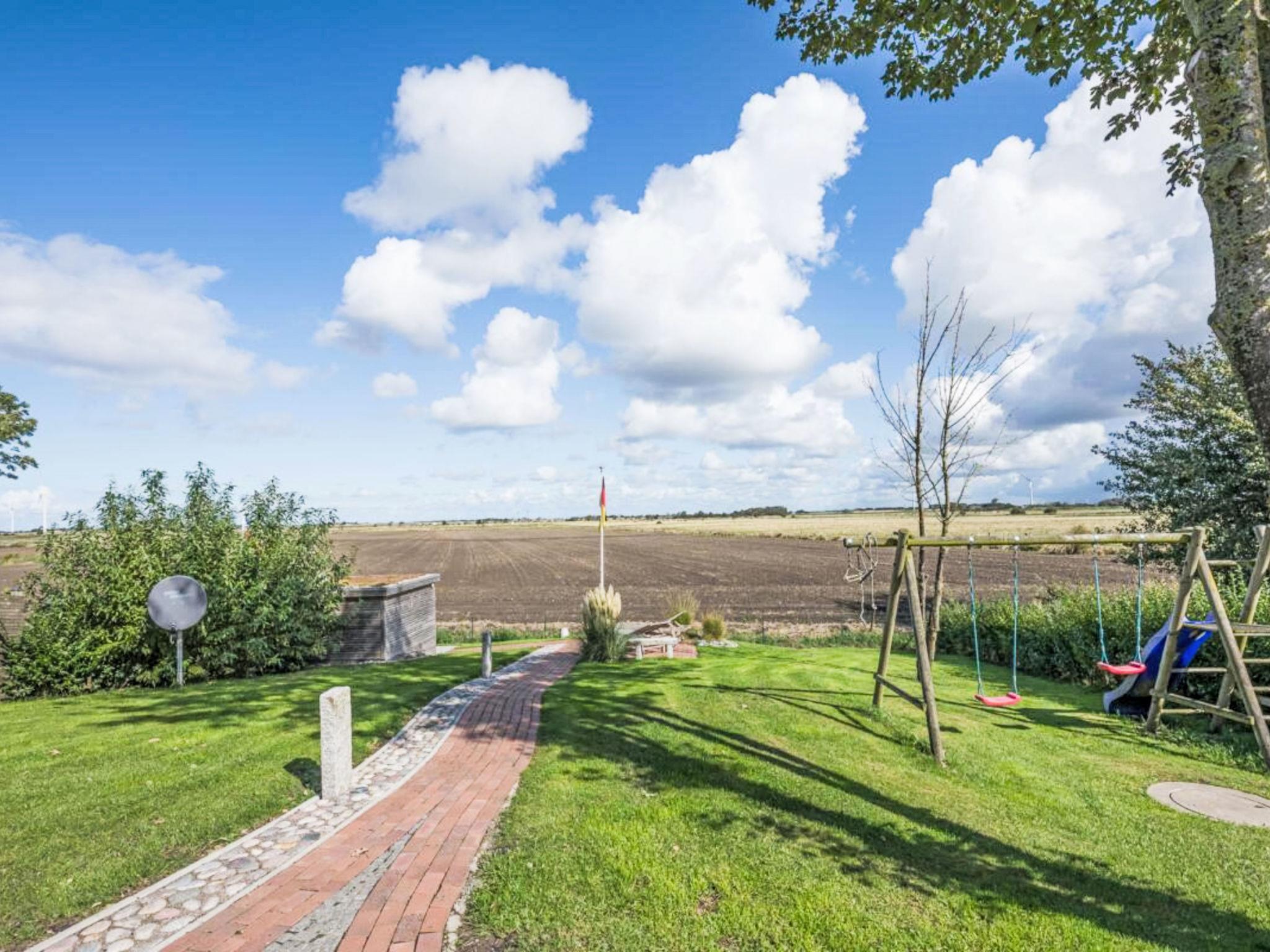 Modern eingerichtete Doppelhaushälfte mit großem Garten und Whirlpool nahe Dagebüll, ideal für entspannte Ferien am Meer.