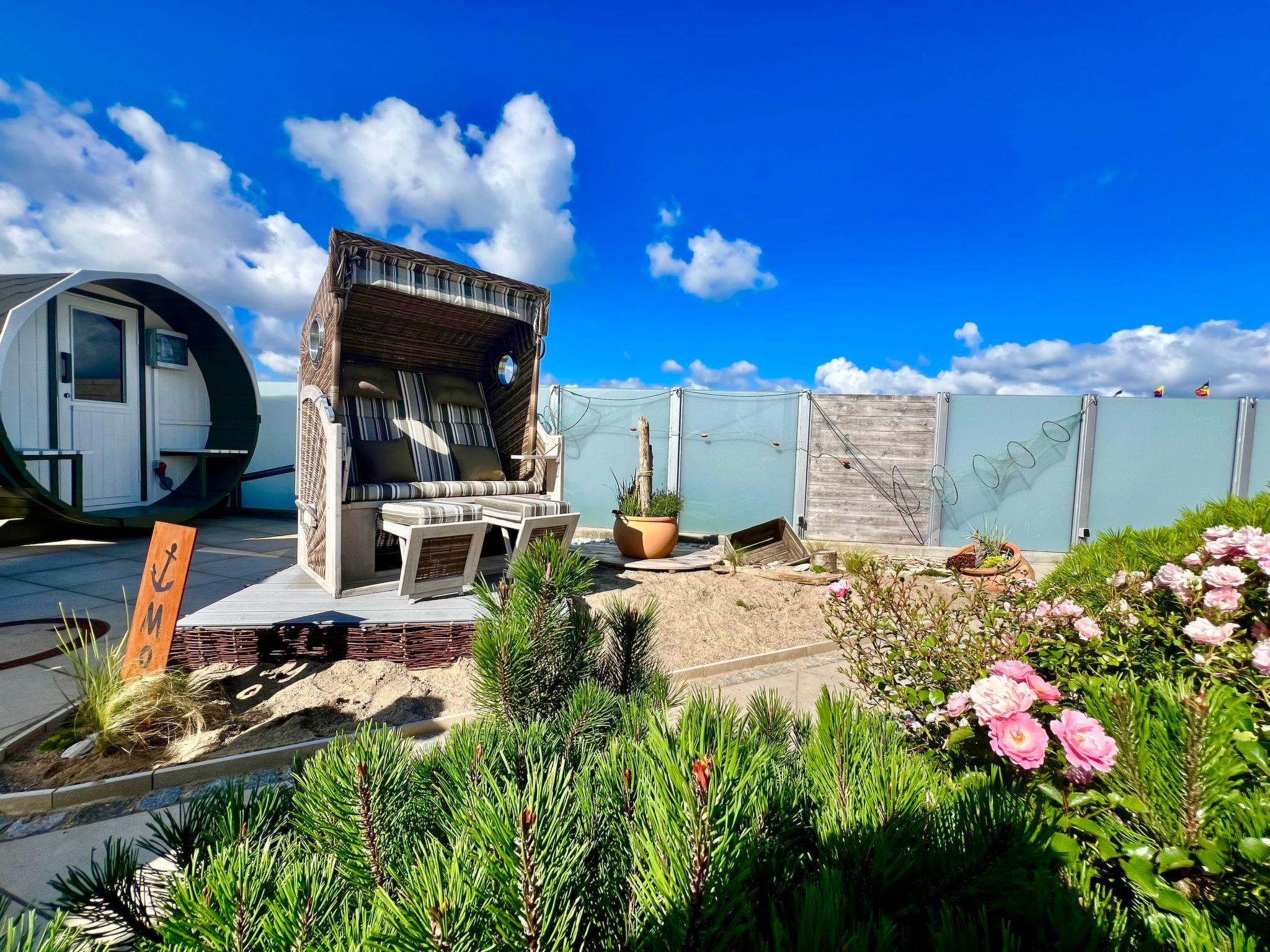 Der gemütliche Balkon mit den Lounge-Möbeln lädt zum Relaxen ein. Genießen Sie zur eigennutzung auch den neu angelegten Saunagarten mit Strandkorb. PKW Stellplatz steht Ihnen kostenfrei zur Verfügung.
