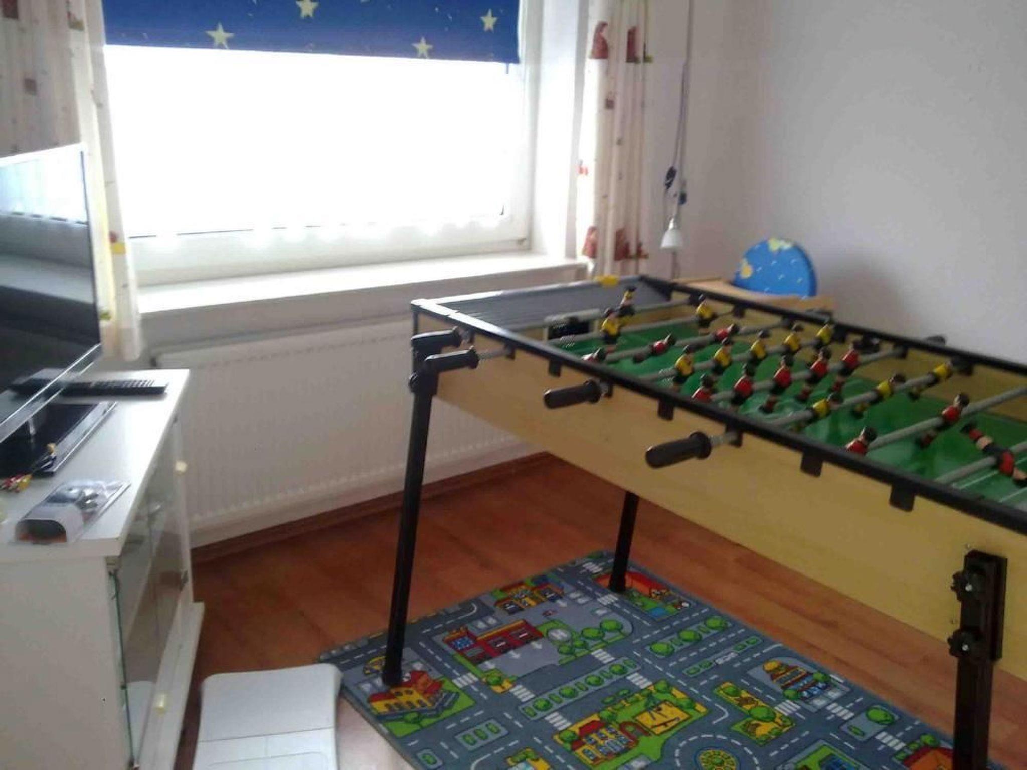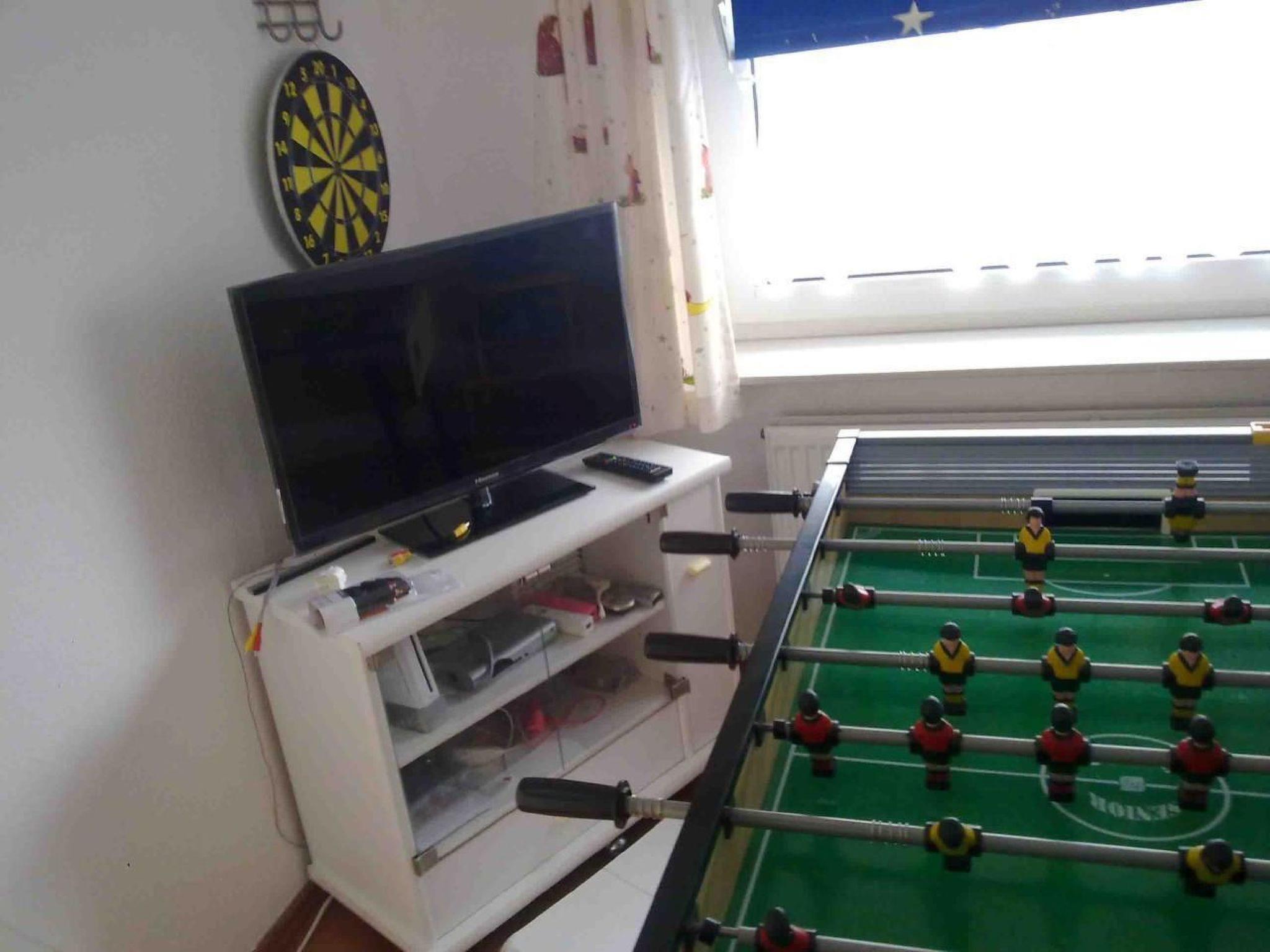 Wir bieten an:- ein großes Wohnzimmer mit bequemen Sitzmöbeln, geräumigem Essbereich, modernem großen Flachbild-HD-TV, Blue-Ray-Player, CD-Player, Radio, Ausgang auf eine gemütliche überdachte Terrasse - eine komfortabel eingerichtete Küche (Mikrowelle, Kühlschrank mit Gefrierteil, Geschirrspüler, Ceranfeld etc.) mit Essplatz für 2 Personen.- einen Vorratsraum- ein komplett eingerichtetes Bad/WC mit Fußbodenheizung und praktischer Bodendusche. Eine Waschmaschine ist ebenfalls vorhanden- ein weiteres geräumiges Bad mit Eckbadewanne, Bodendusche, WC und 2 Waschbecken- zwei Schlafzimmer mit Doppelbetten, ein Schlafzimmer mit 140er Boxspringbett, geräumigen Kleiderschränken, 2 Schlafzimmer (eines mit Flachbild-TV u. Blue-Ray-Player)- ein Spielzimmer, großem Kicker, Dartspiel, einem 3. TV, an das eine Wii-Console mit vielen Spielen angeschlossen ist- 4 gute Fahrräder(davon 2 Kinderräder) - Gartenliegen, Gartenmöbel, Sitzgarnitur für 6 Personen auf zwei überdachten Terrassen, eine klappbare Tischtennisplatte, Schläger und Bälle sind vorhanden- ein kostenloses Telefon (Flatrate ins deutsche Festnetz) und einen schnellen WLAN-Anschluss über Breitband.