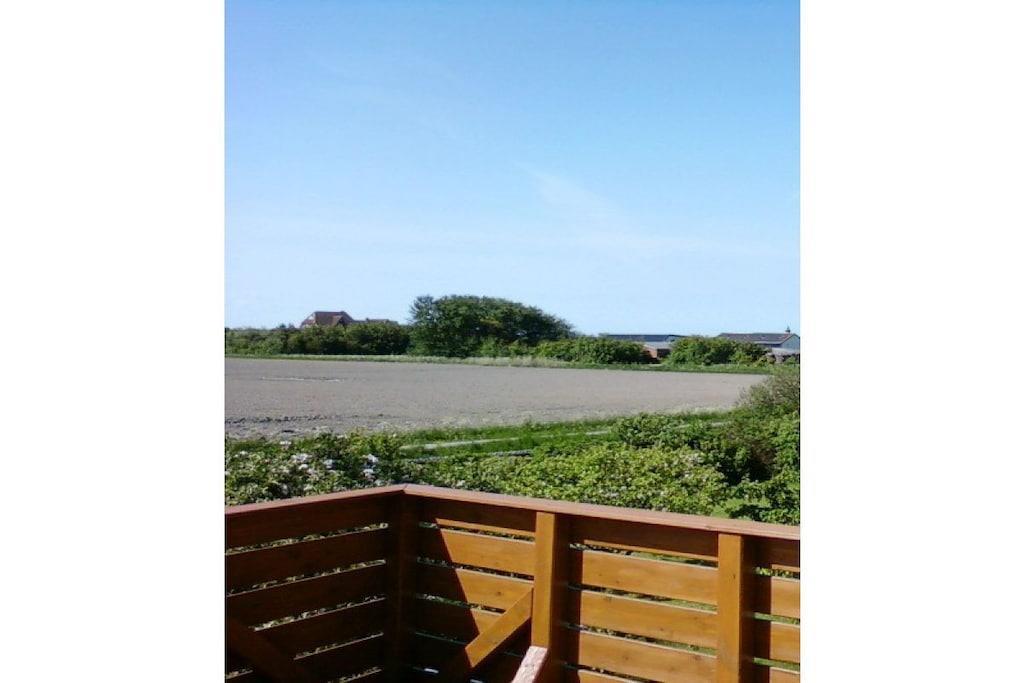 Freundliche Ferienwohnung mit Balkon und Blick auf Wiesen, Deich und Halligleuchtturm in Langeneß.