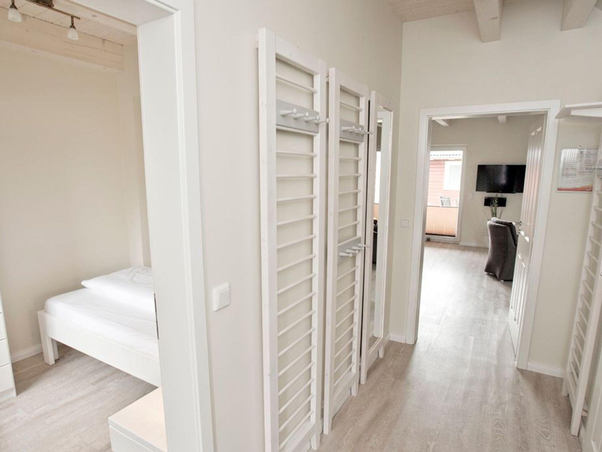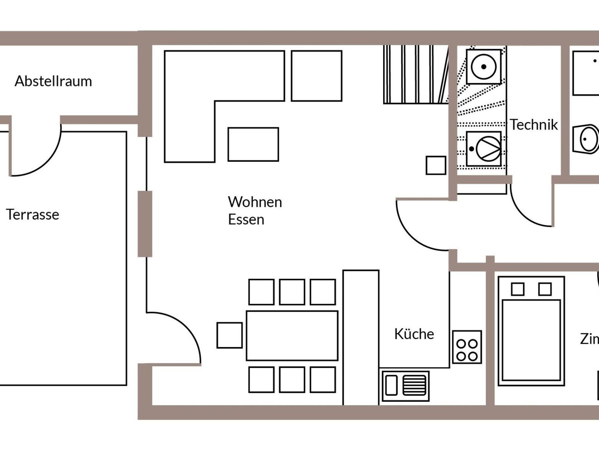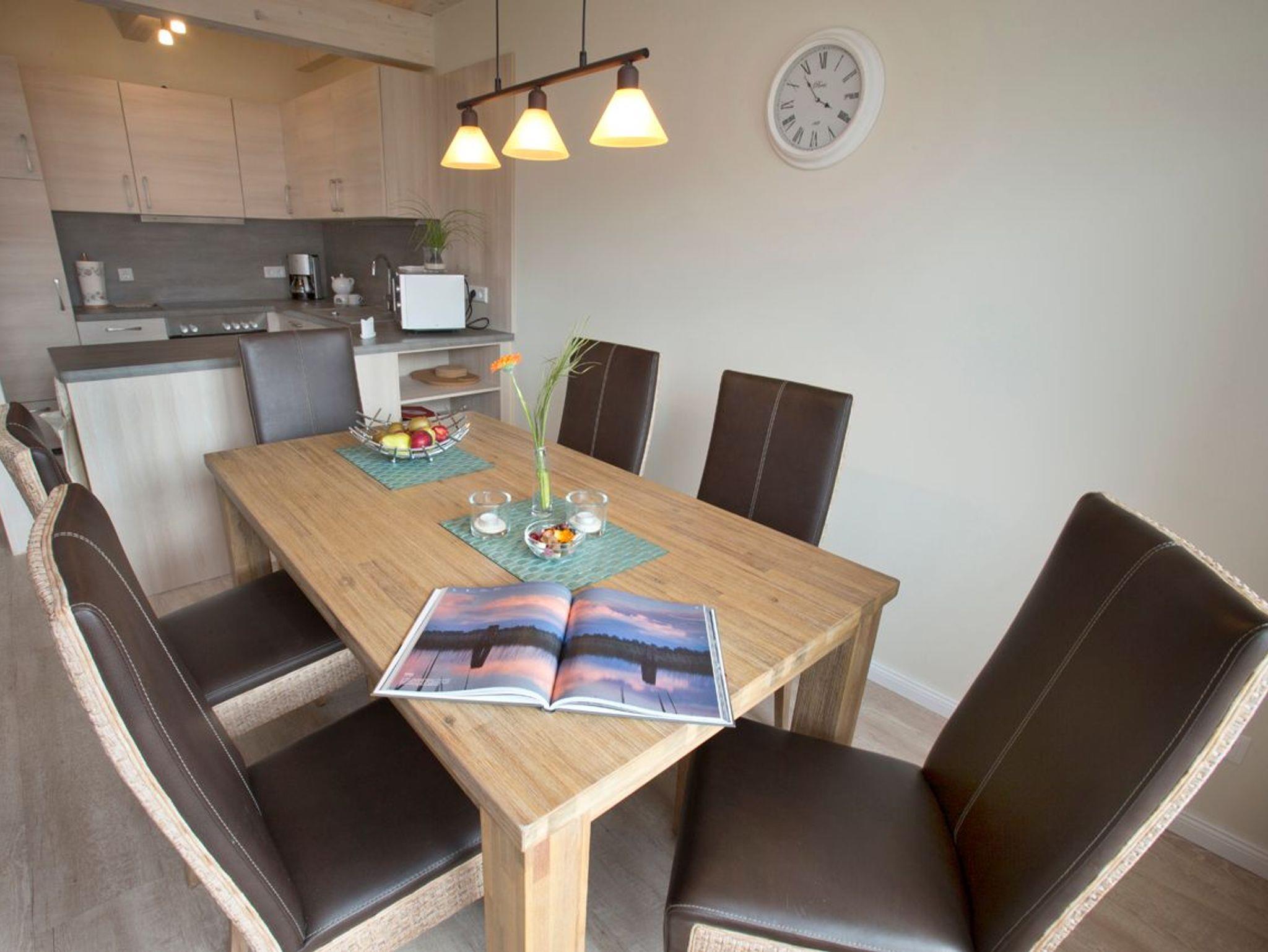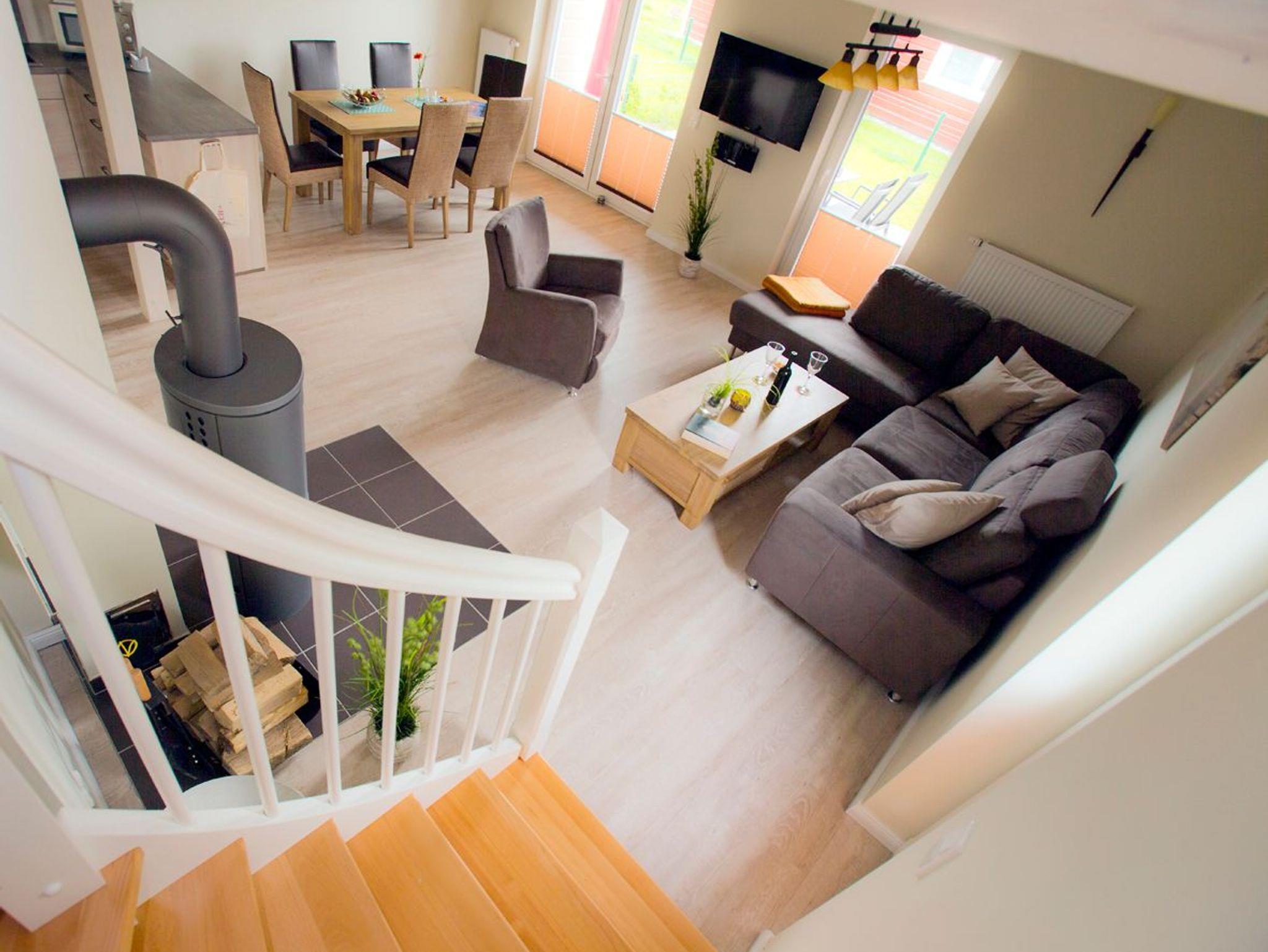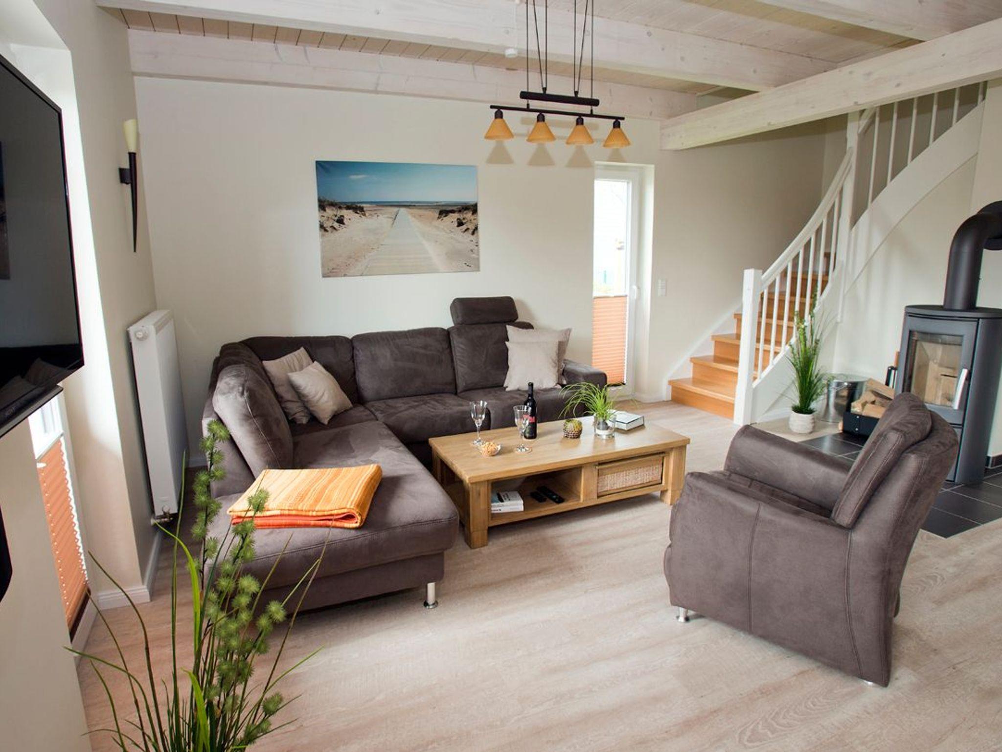 Das 2014 erbaute Haus verbindet nordisches Design mit modernem Komfort. Glasfaseranschluss und kostenfreies WLAN gewährleisten beste digitale Anbindung. Im Erdgeschoss befinden sich eine voll ausgestattete Küche, ein großzügiger Essbereich und eine gemütliche Sofalandschaft mit dänischem Kaminofen. Durch breite Türen lässt sich der Wohnraum zur überdachten Terrasse öffnen ? perfekt für gesellige Stunden im Freien. Das barrierearme Bad verfügt über eine ebenerdige Dusche, das angrenzende Schlafzimmer über ein komfortables 1,20 m breites Einzelbett.