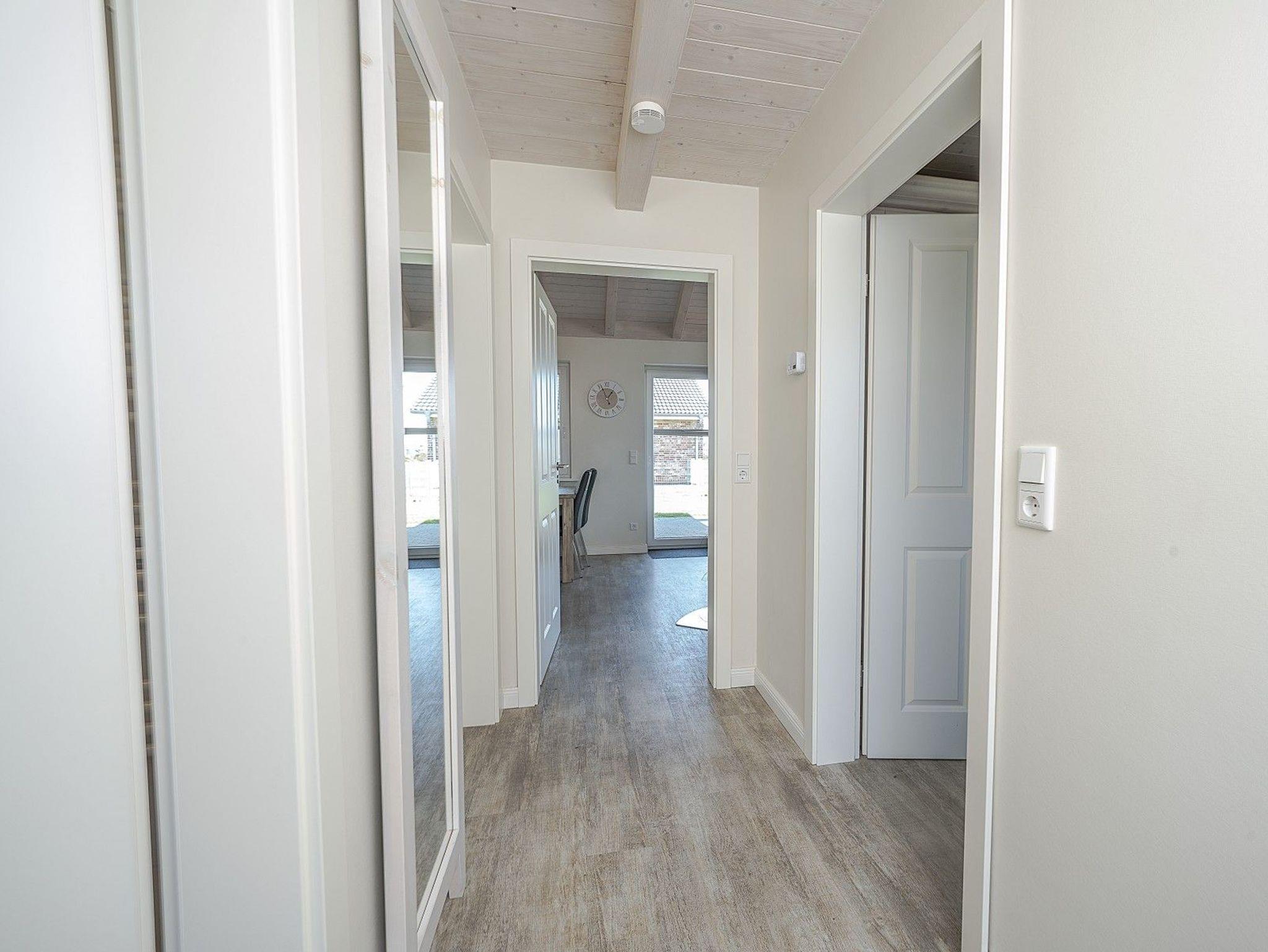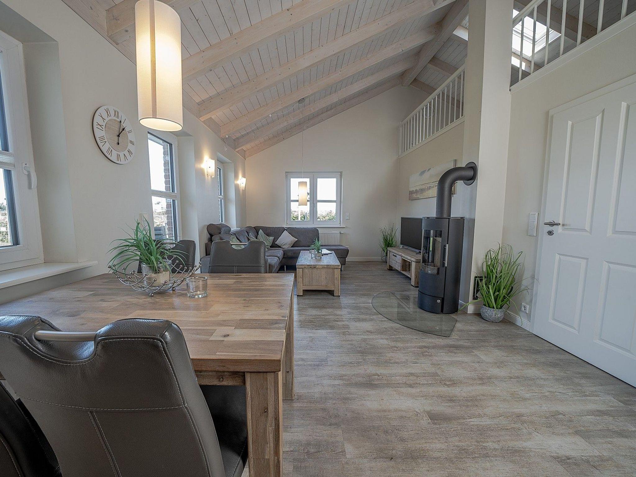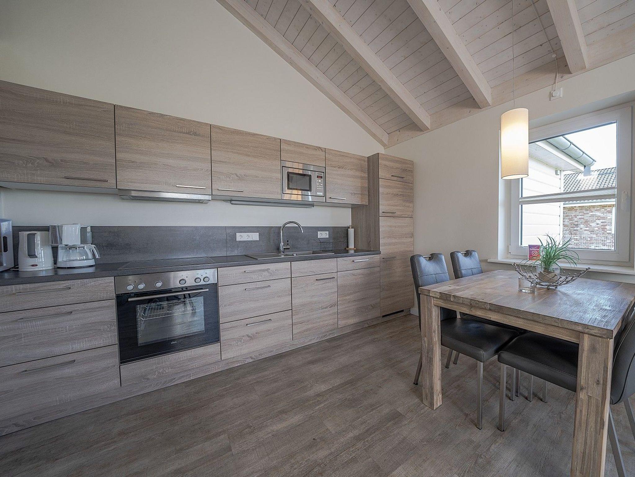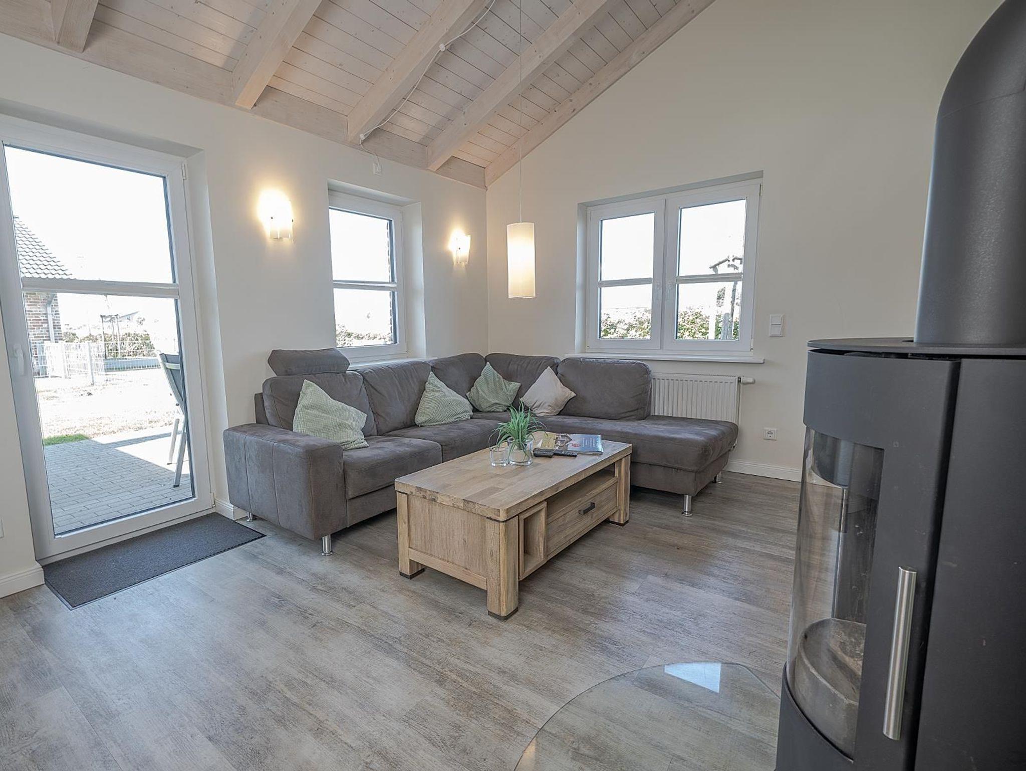 In modernem skandinavischen Stil eingerichtet ist das verklinkerte Haus offen gestaltet mit einem großzügigen Wohn/Essbereich/Galerie und einer Küchenzeile, die vollwertig ausgestattet ist. Ein gemütlicher Sofabereich mit Kaminofen und ein