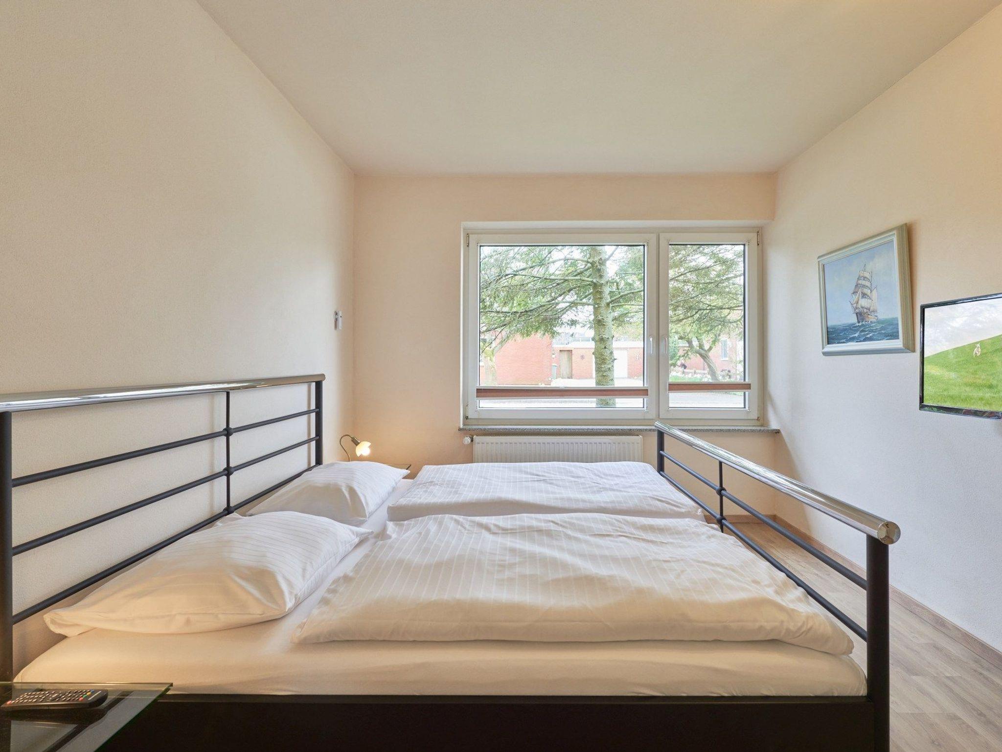 Das Schlafzimmer ist mit einem Doppelbett (180x200 cm), einem Kleiderschrank und einem 32 SAT-TV ausgestattet.