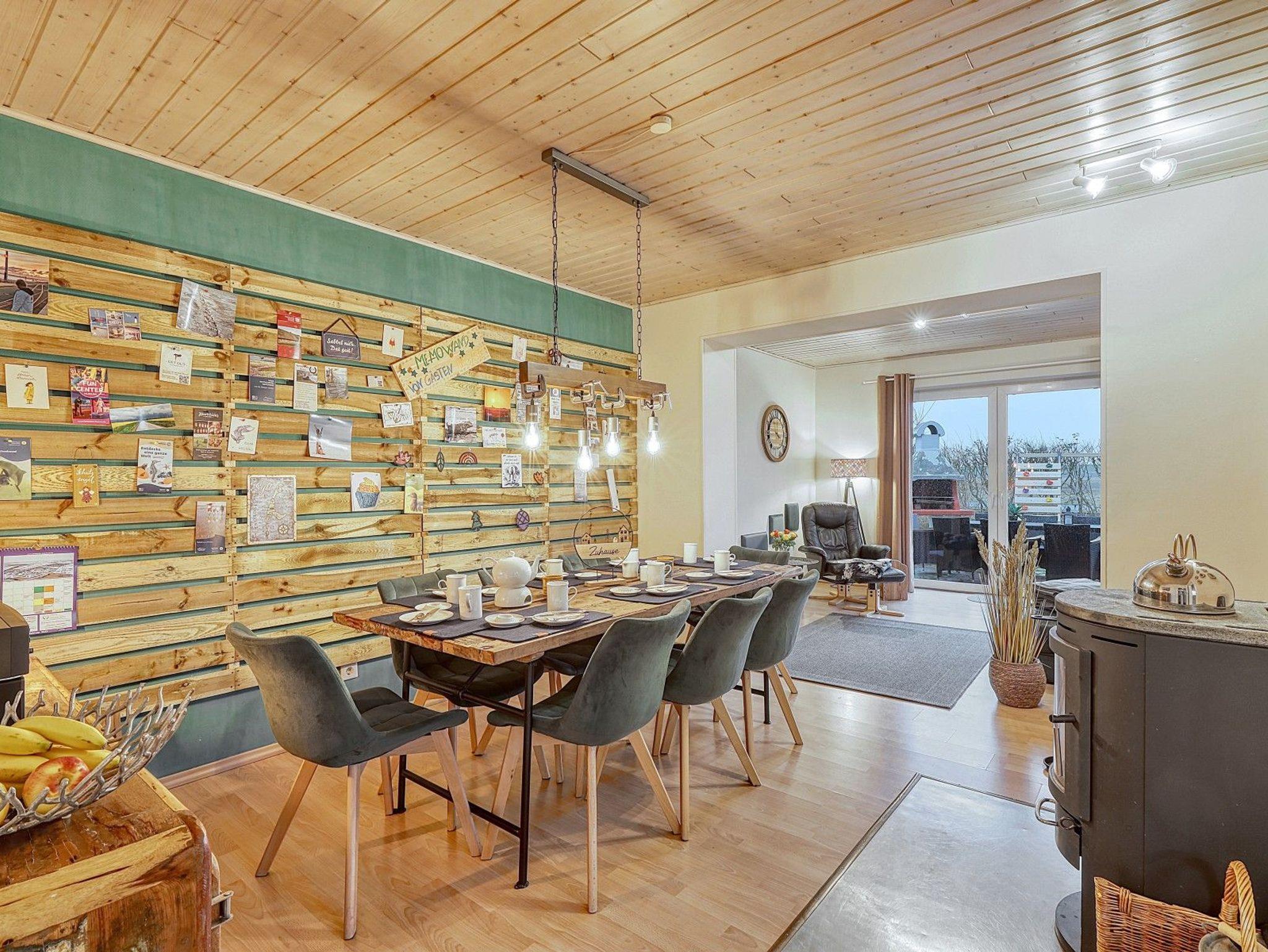Dieses charmante Ferienhaus in Dagebüll bietet Platz für bis zu sieben Gäste und besticht durch seine ruhige Lage mit unverbaubarem Blick über grüne Felder bis hin zum Nordseedeich. Auf dem überdachten Balkon können Sie diesen Ausblick bei jedem Wetter genießen ? morgens mit einer Tasse Kaffee, abends bei Sonnenuntergang. Das Haus verteilt sich auf zwei Etagen und ist mit vier Schlafzimmern, zwei Bädern und zwei PKW-Stellplätzen ideal für Familien oder befreundete Paare geeignet. Zwei behagliche Kaminöfen sorgen in den kühleren Monaten für eine wohlige Atmosphäre, perfekt nach einem langen Spaziergang am Meer.