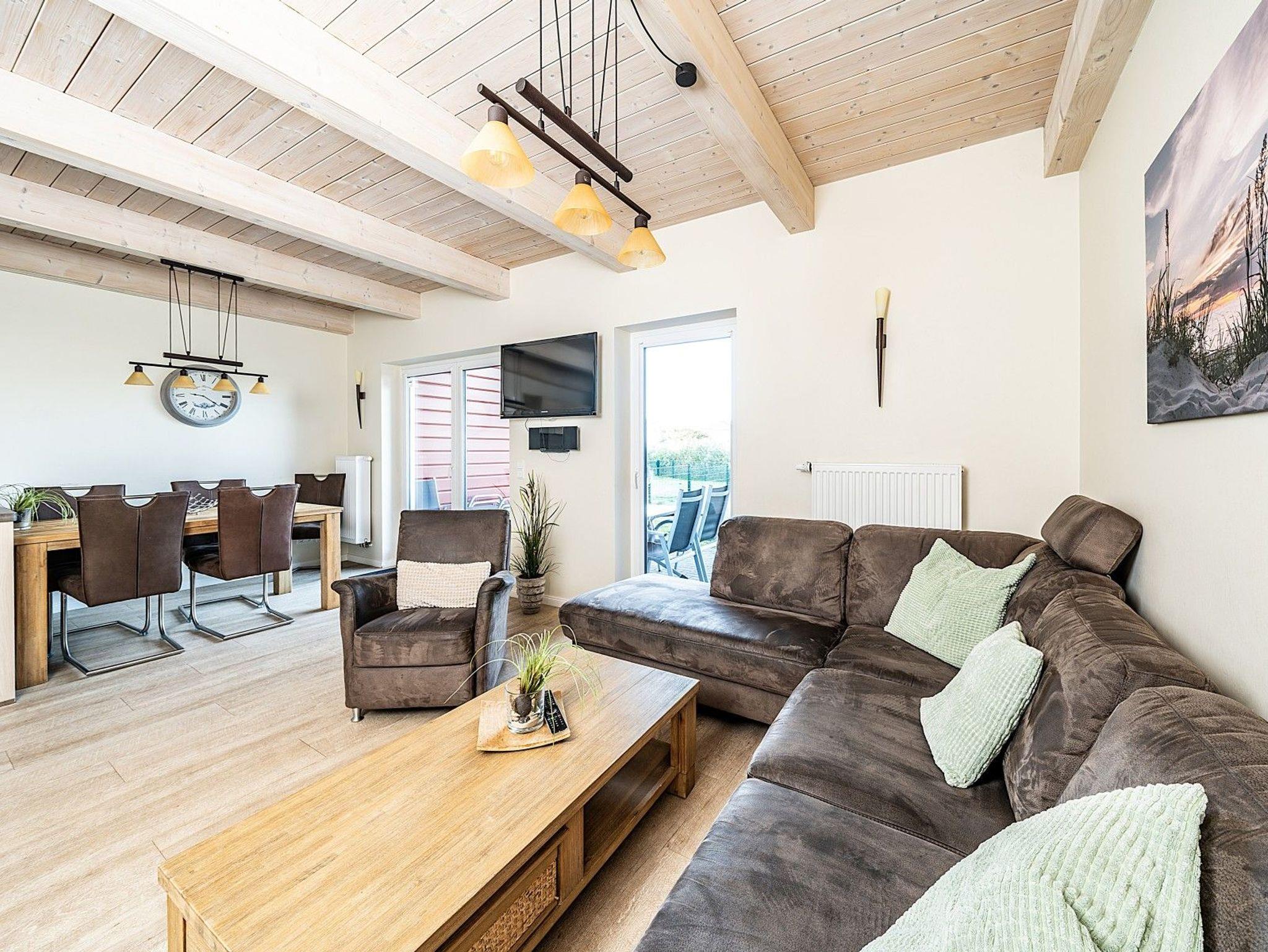 Dieses moderne Reihenhaus in Dagebüll bietet auf über 100 m² Wohnfläche beste Voraussetzungen für einen entspannten Nordseeurlaub. Die großzügige Raumaufteilung eignet sich ideal für bis zu fünf Gäste, auch Haustiere sind willkommen. Mittelpunkt des Hauses ist der helle Wohnbereich mit offener Küche und gemütlicher Sofalandschaft.