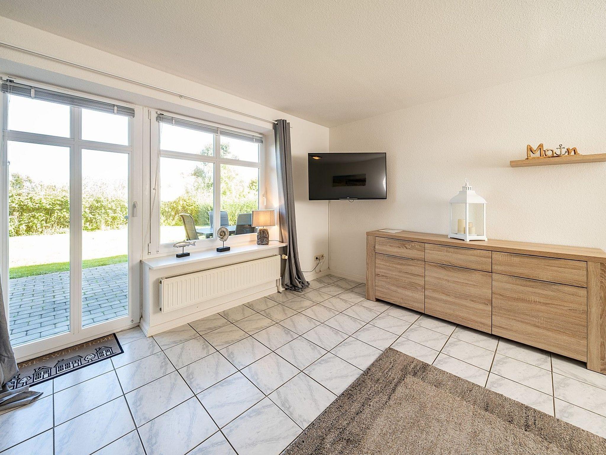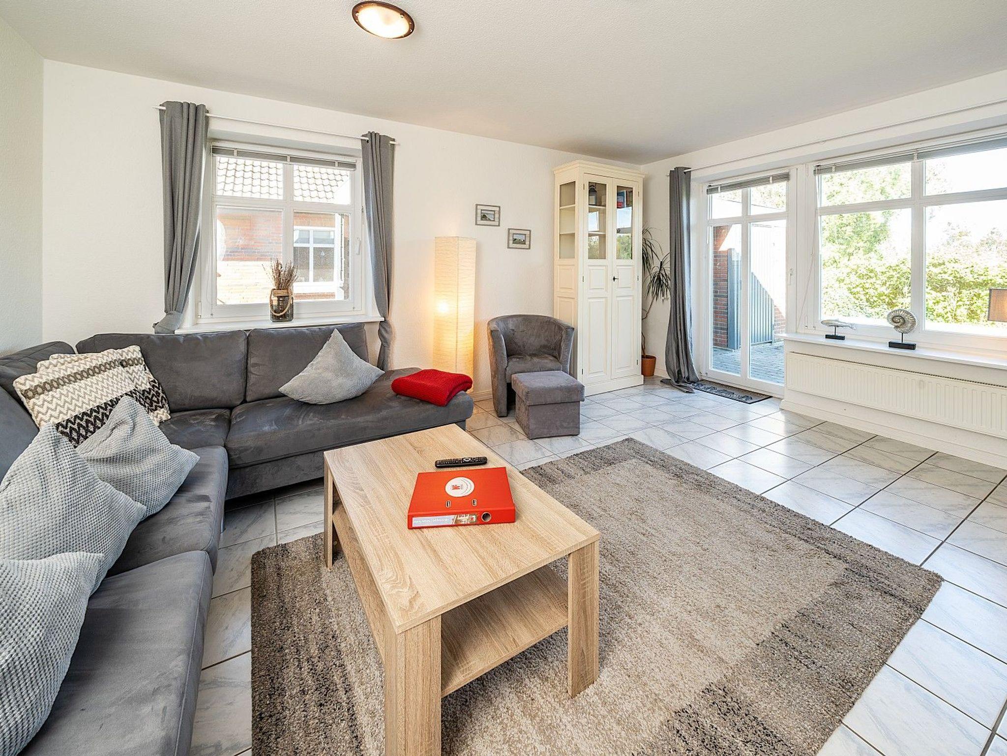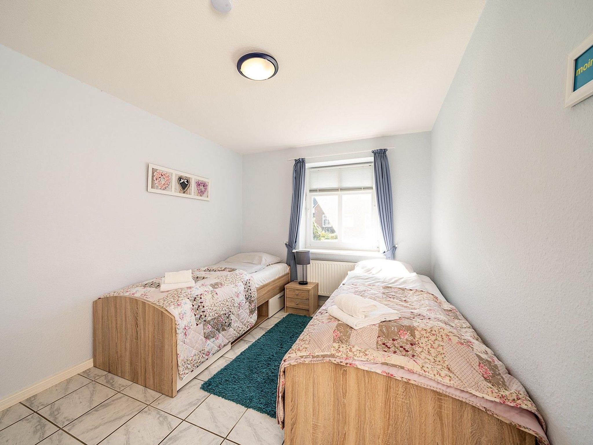 Der offene Wohn- und Essbereich lädt zu geselligen Stunden ein, während die voll ausgestattete Küche ideale Voraussetzungen für gemeinsames Kochen bietet. Zwei Schlafzimmer ? eines mit Doppelbett, eines mit zwei Einzelbetten ? sorgen für erholsamen Schlaf. Das Badezimmer verfügt über Dusche und Badewanne und bietet somit den perfekten Ort zum Entspannen nach einem Tag an der frischen Nordseeluft.