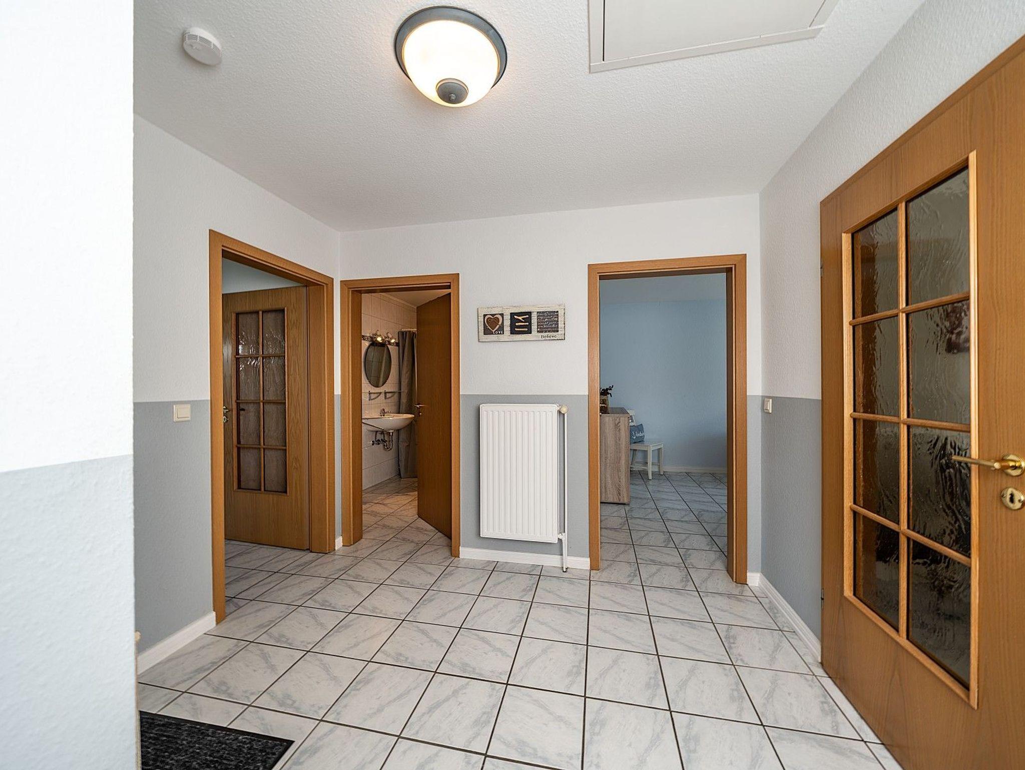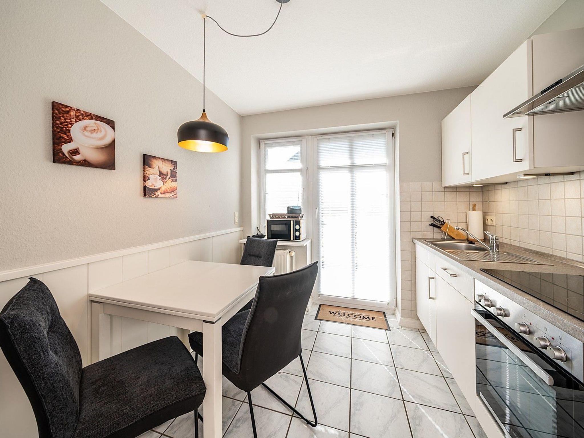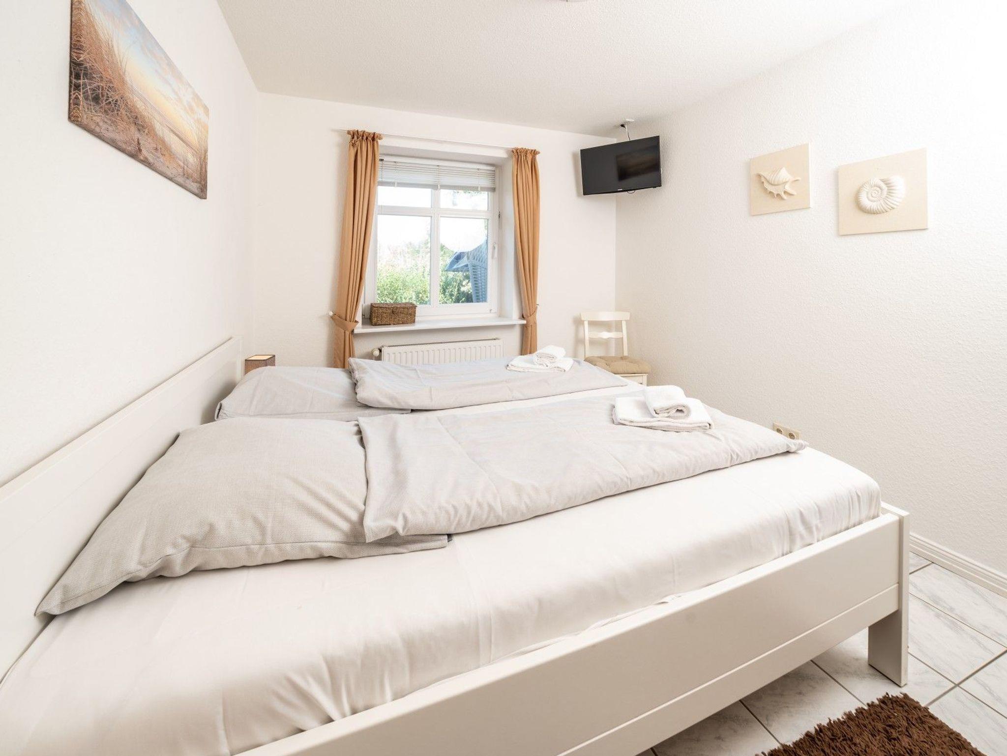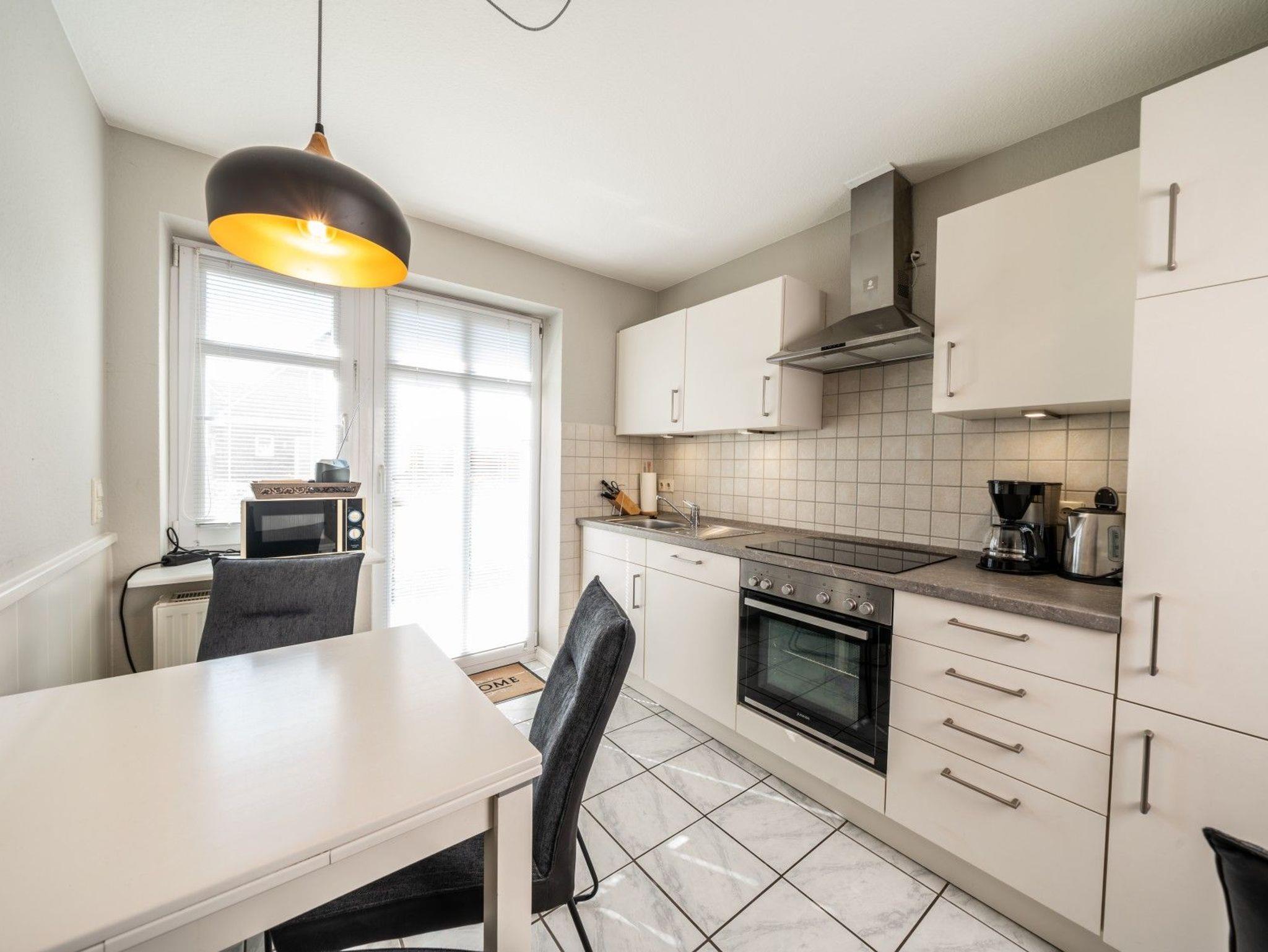 Der offene Wohn- und Essbereich lädt zu geselligen Stunden ein, während die voll ausgestattete Küche ideale Voraussetzungen für gemeinsames Kochen bietet. Zwei Schlafzimmer ? eines mit Doppelbett, eines mit zwei Einzelbetten ? sorgen für erholsamen Schlaf. Das Badezimmer verfügt über Dusche und Badewanne und bietet somit den perfekten Ort zum Entspannen nach einem Tag an der frischen Nordseeluft.