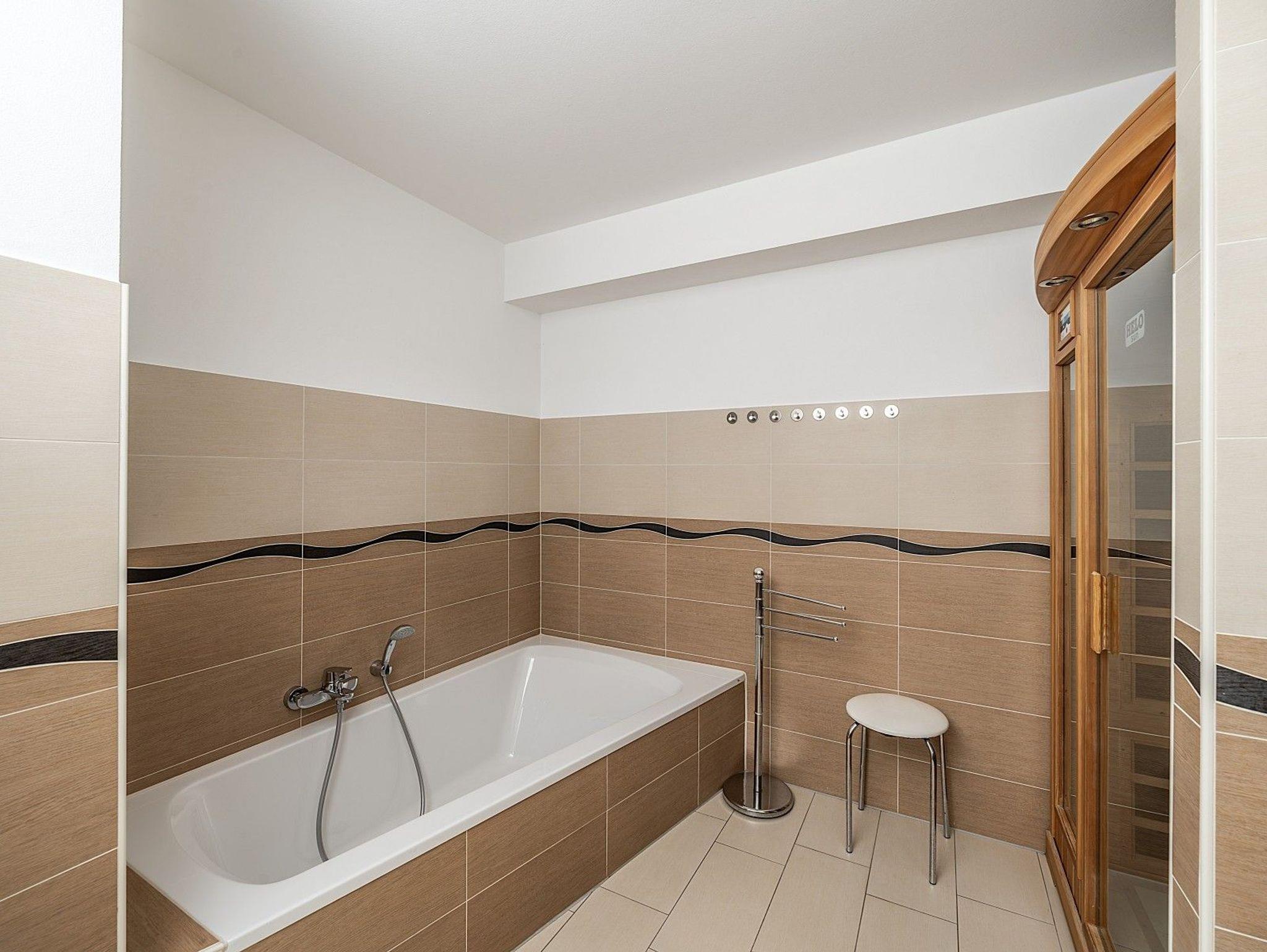• Infrarot-Sauna und große Badewanne