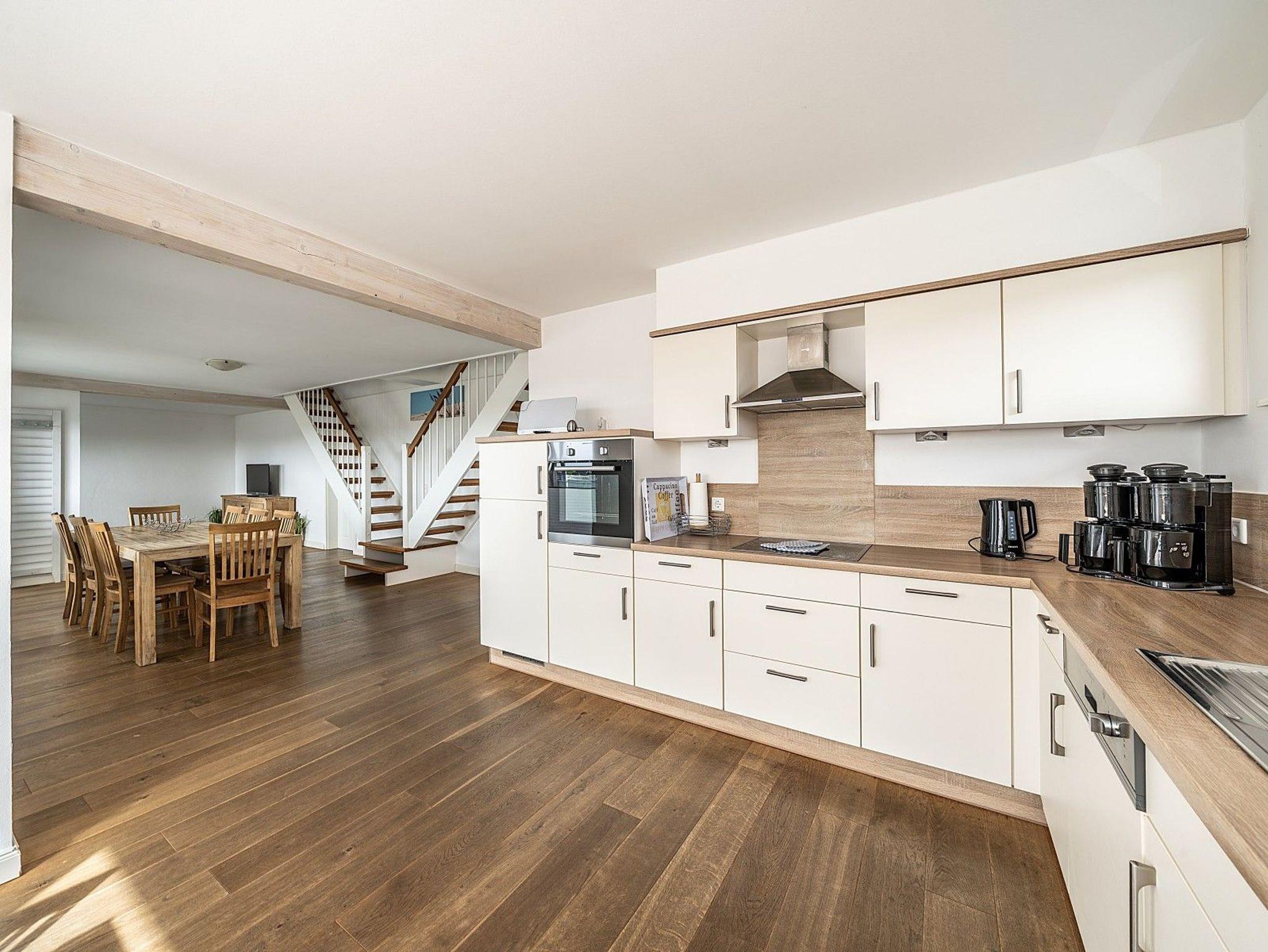 Der Wohnbereich punktet mit einer komfortablen Sofaecke und einem großen Esstisch für gemeinsame Mahlzeiten. Die moderne Küche ist komplett ausgestattet, sodass auch Selbstversorgung kein Problem ist.