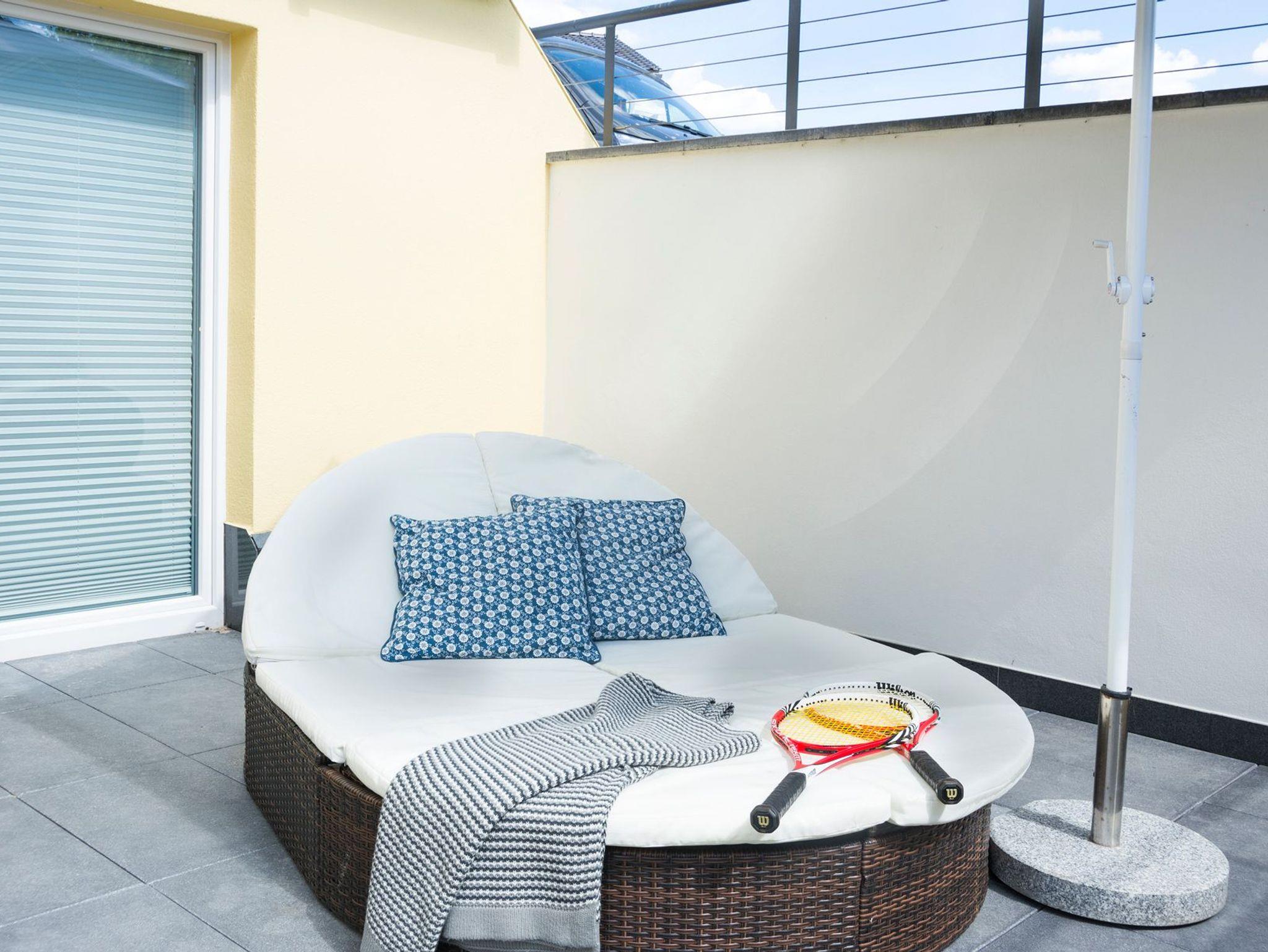 Jede Wohnung hat ihren eigenen Balkon/Terrasse auf dem relaxt oder auch gegessen werden kann.