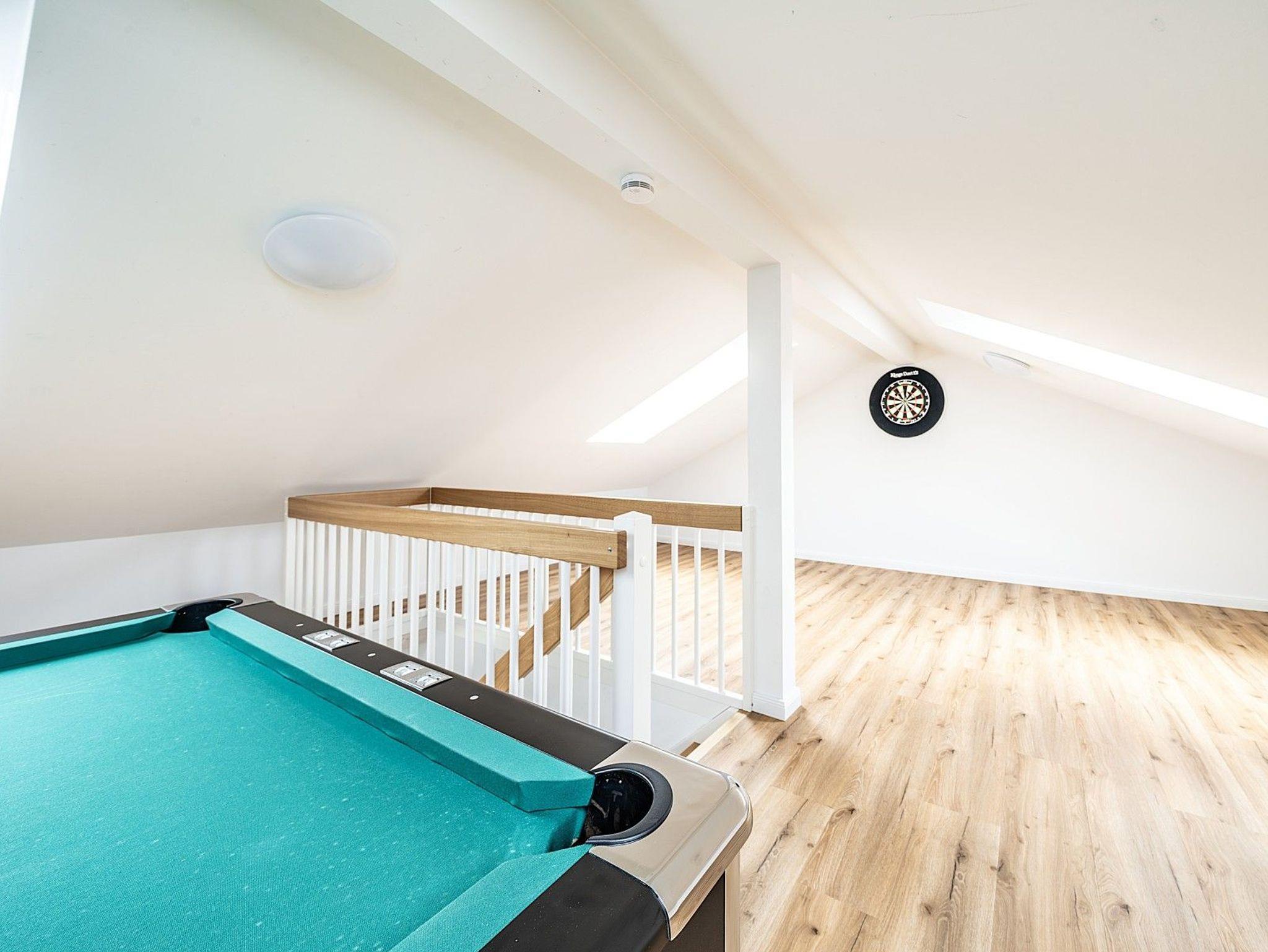 • Galerie mit Tischkicker, Billard, Dart und weiterem TV