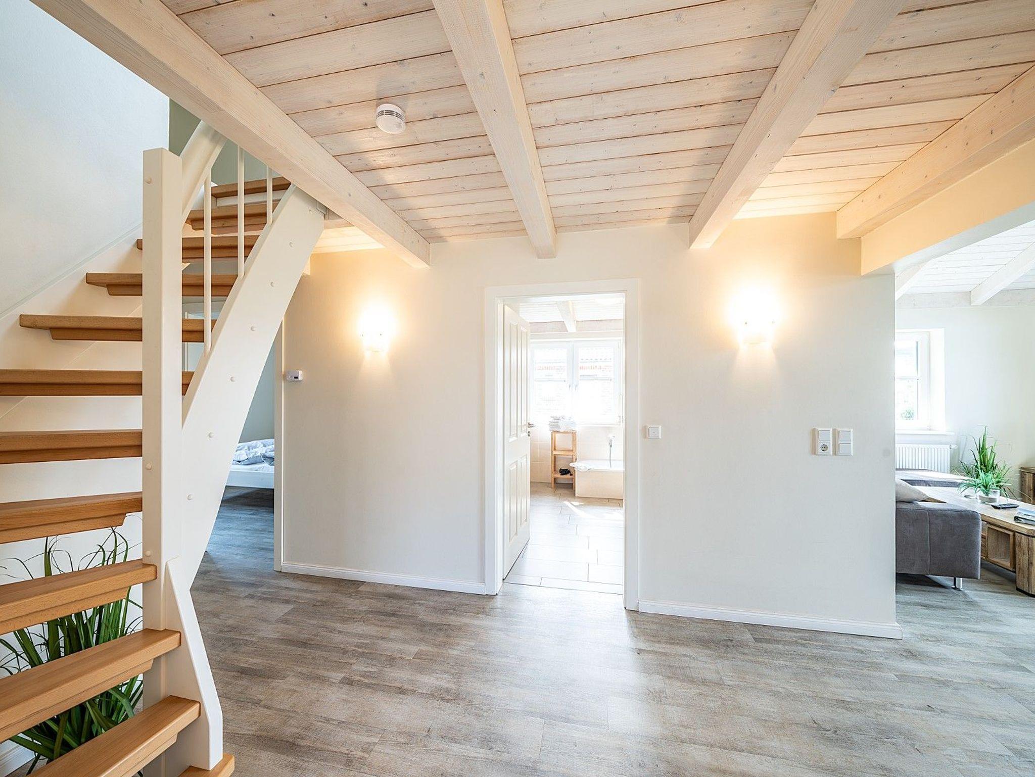 Dieses stilvoll eingerichtete Ferienhaus bietet auf 80 m² viel Platz für bis zu vier Personen und zwei Haustiere. Zwei Schlafzimmer, ein modernes Bad mit Dusche und Badewanne sowie ein großzügiger Wohnbereich mit Kaminofen schaffen eine behagliche Atmosphäre und machen das Haus zu jeder Jahreszeit zum idealen Rückzugsort.