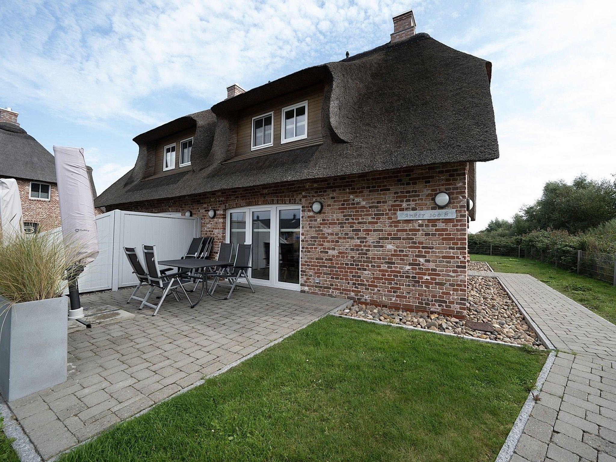 Charmante Reetdach-Doppelhaushälfte in Dagebüll mit Sauna, Kamin und eingezäuntem Garten für erholsame Nordseeferien.