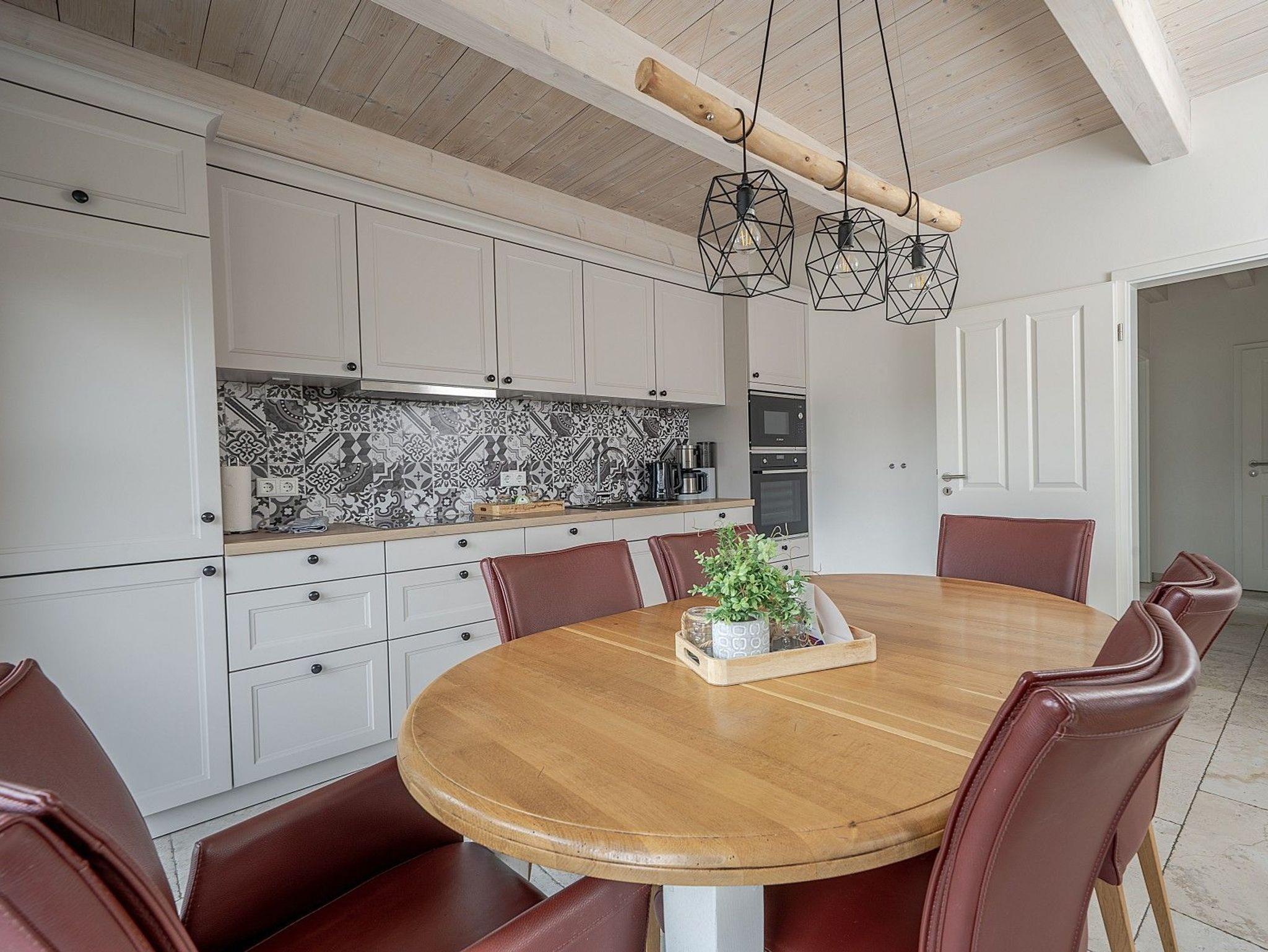 Drei gemütliche Schlafzimmer, zwei hochwertig ausgestattete Badezimmer sowie ein offener Wohn- und Essbereich mit moderner Küche bieten reichlich Platz für erholsame Tage. In der kühleren Jahreszeit sorgen Kaminofen und private Sauna für wohlige Wärme und Entspannung.