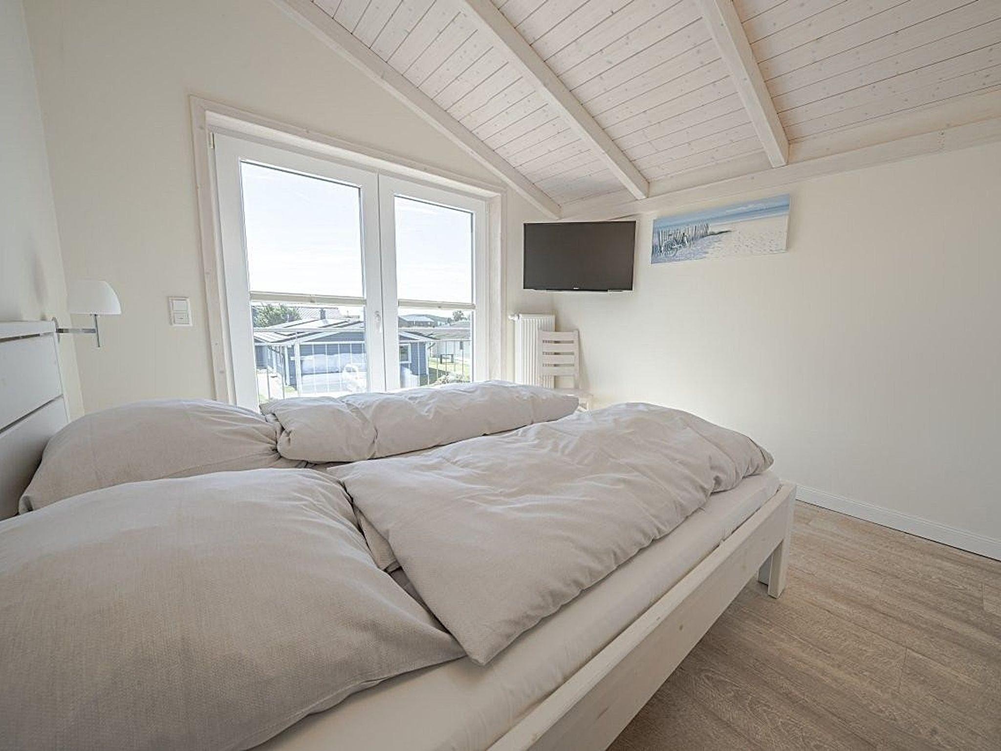Im Erdgeschoss befinden sich ein Schlafzimmer mit komfortablem Einzelbett sowie ein Bad mit schwellenloser Dusche ? ideal für Gäste, die Treppen vermeiden möchten. Im Obergeschoss erwarten Sie zwei weitere Schlafzimmer sowie ein großzügiges Wellnessbad mit XXL-Badewanne für zwei Personen und einer geräumigen Sauna.