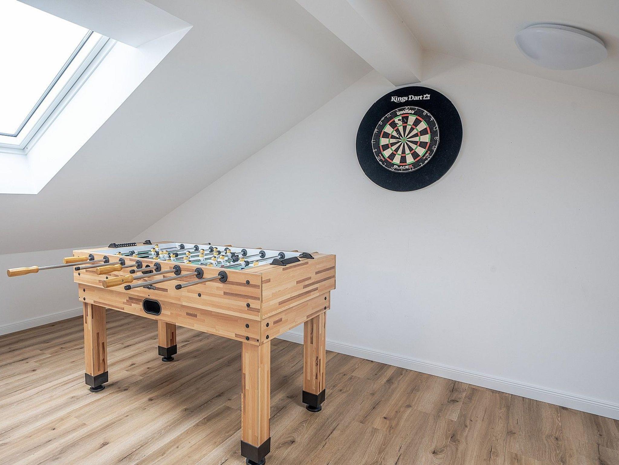 • Galerie mit Tischkicker, Billard, Dart und weiterem TV