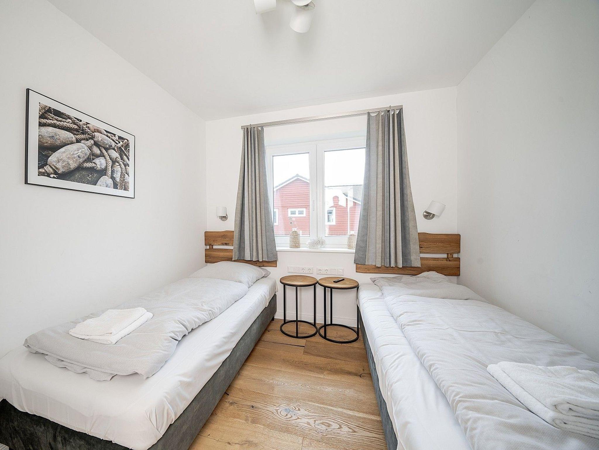 Der helle Wohnbereich mit großen Fensterfronten schafft eine einladende Atmosphäre und bietet Raum für gemeinsame Stunden beim Kochen, Essen und Entspannen. Sechs Schlafzimmer und vier Bäder sorgen für ausreichend Rückzugsmöglichkeiten, während die hauseigene Sauna nach einem Tag an der frischen Nordseeluft wohltuende Entspannung verspricht.