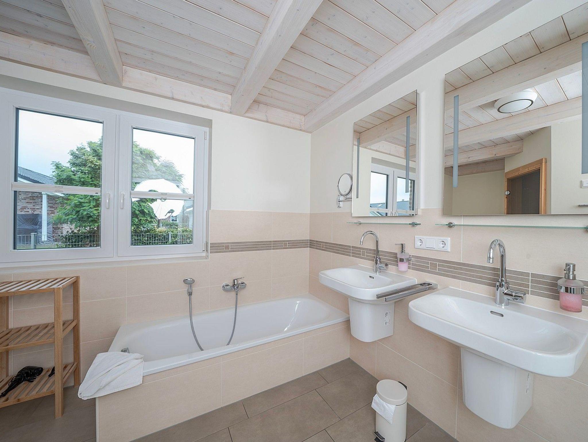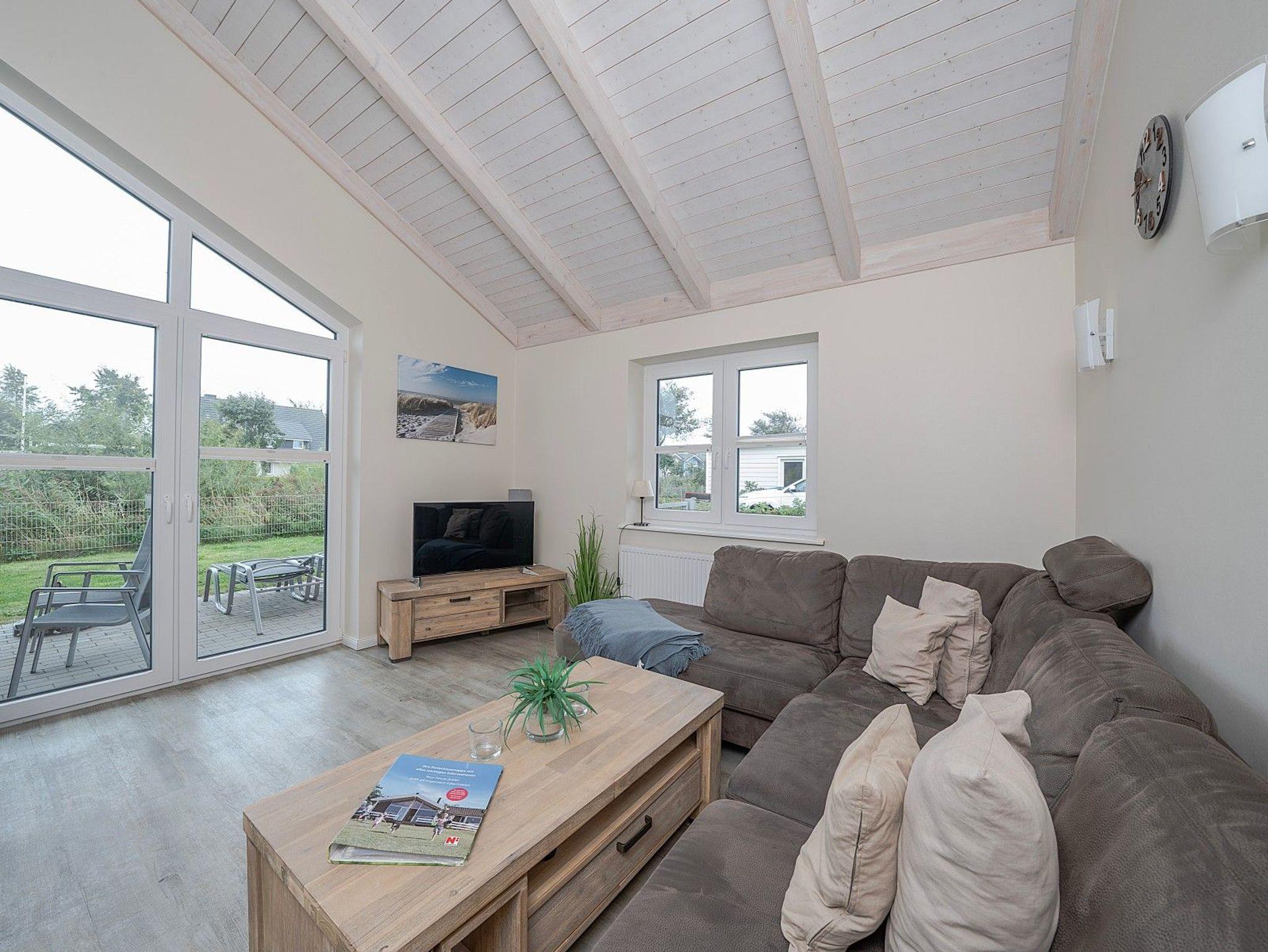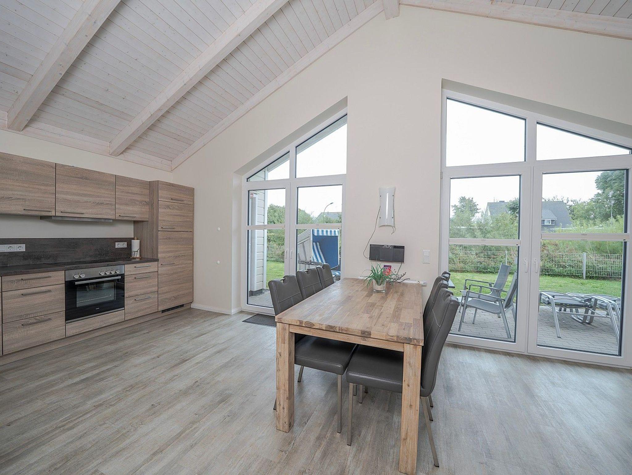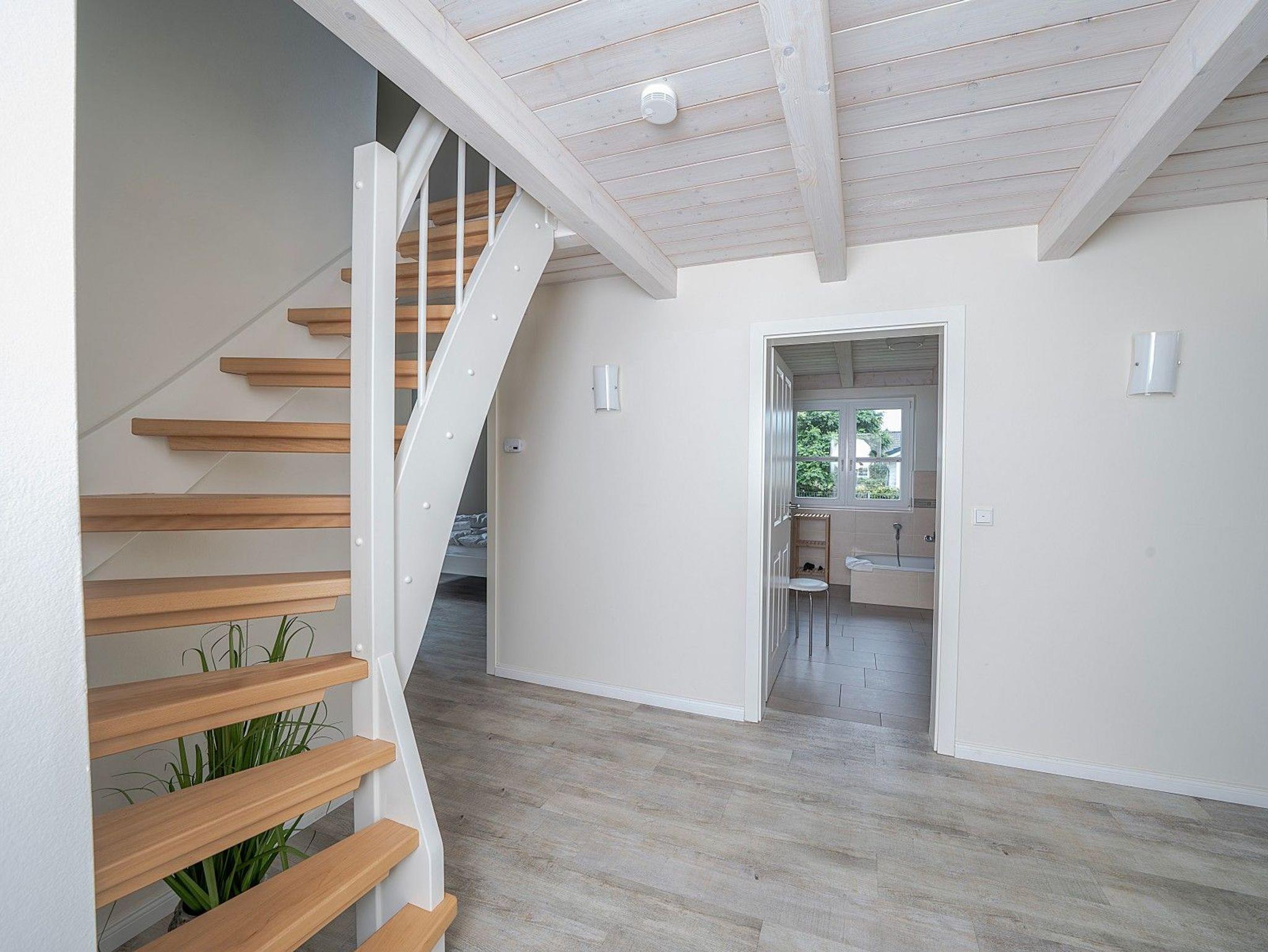 Zwei Doppelzimmer, ein stilvolles Bad mit Dusche und Badewanne sowie ein heller Wohn- und Essbereich mit Kaminofen schaffen eine behagliche Atmosphäre. Für Wellnessmomente steht Ihnen die hauseigene Sauna zur Verfügung. Von April bis September können Sie zusätzlich im eigenen Strandkorb auf der Terrasse entspannen.