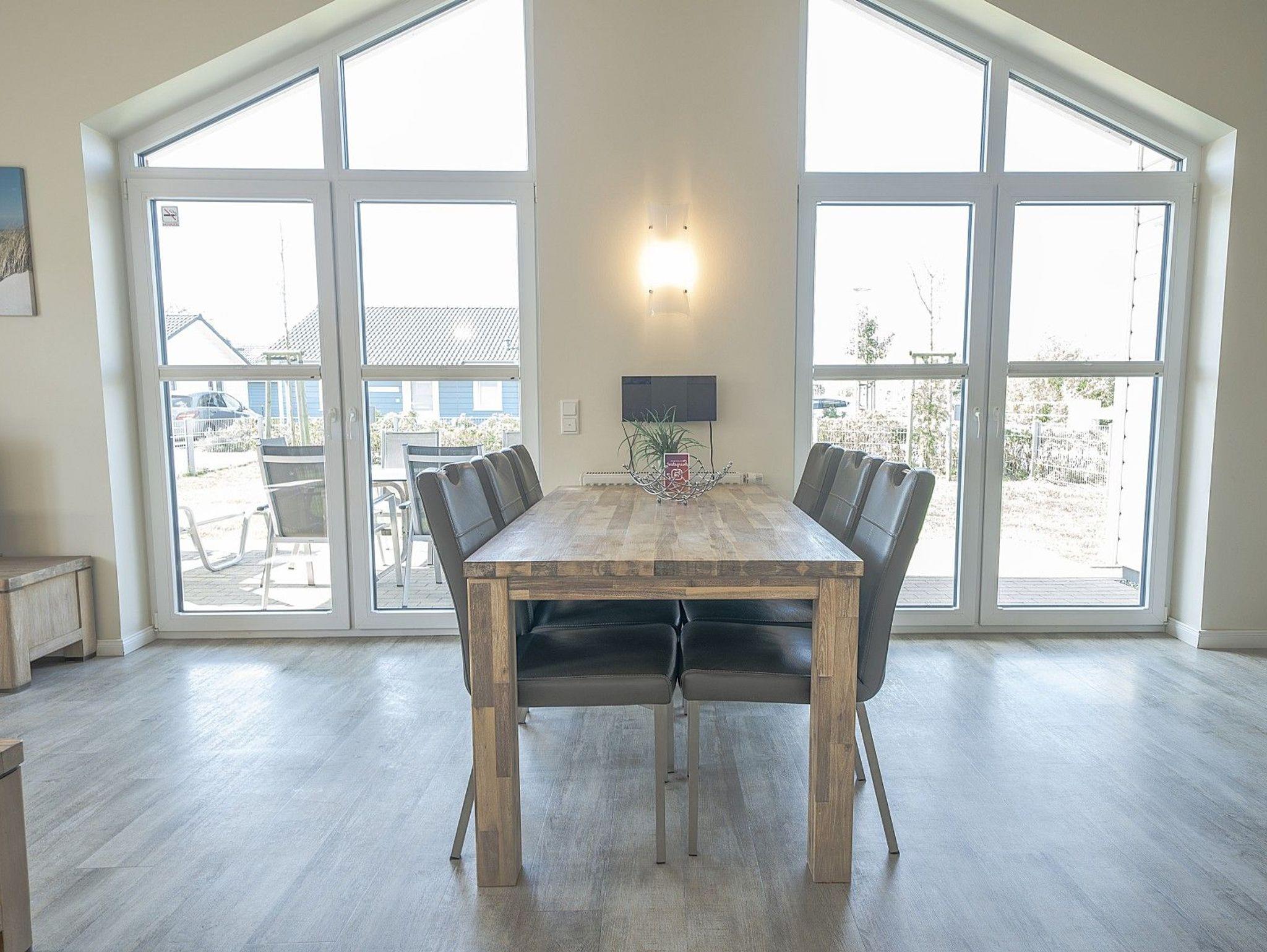 Das eingezäunte Grundstück bietet Privatsphäre und eignet sich ideal für Gäste mit Haustieren. Auf der Terrasse mit Gartenmöbeln und Grill lässt sich die frische Meeresluft in vollen Zügen genießen. Eine abschaltbare Außensteckdose steht zum Laden von E-Bikes bereit.