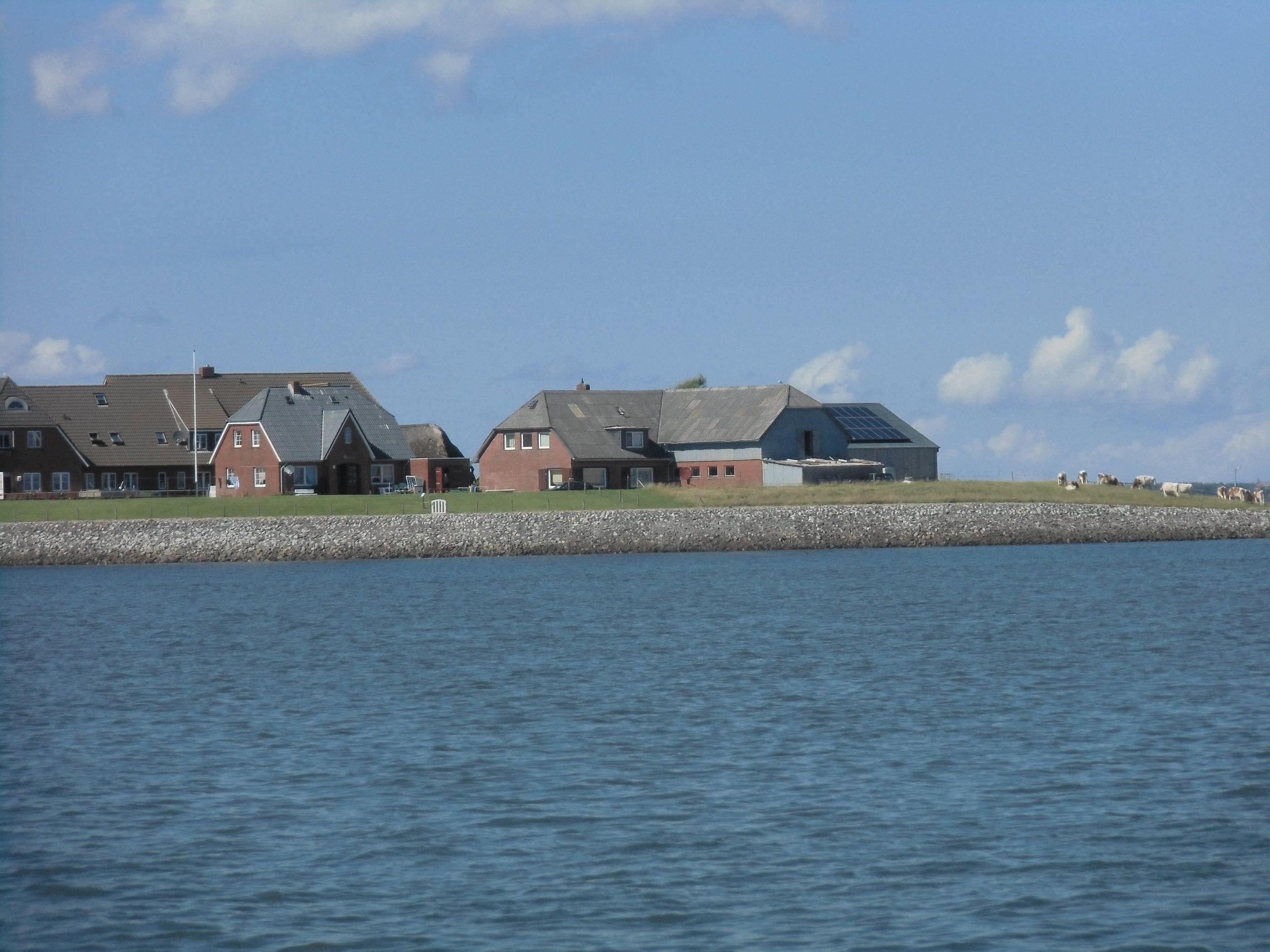 Die Ferienwohnung Hamburger Hallig im Haus Halligblick liegt etwa 300 Meter vom Meer entfernt. Über einen kleinen Weg gelangt man in wenigen Minuten an den Badestrand.
