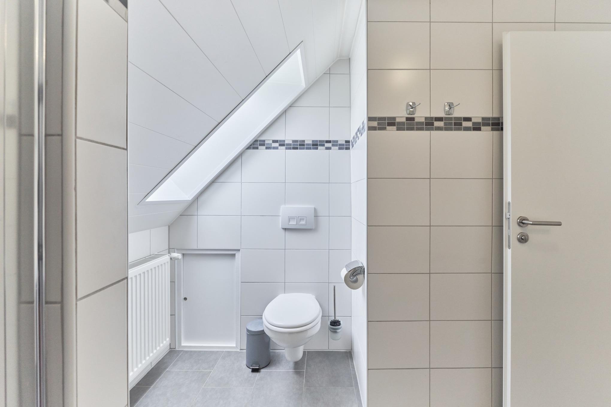 Das Badezimmer ist modern ausgestattet mit Dusche, WC und Föhn – für einen frischen Start in den Tag.